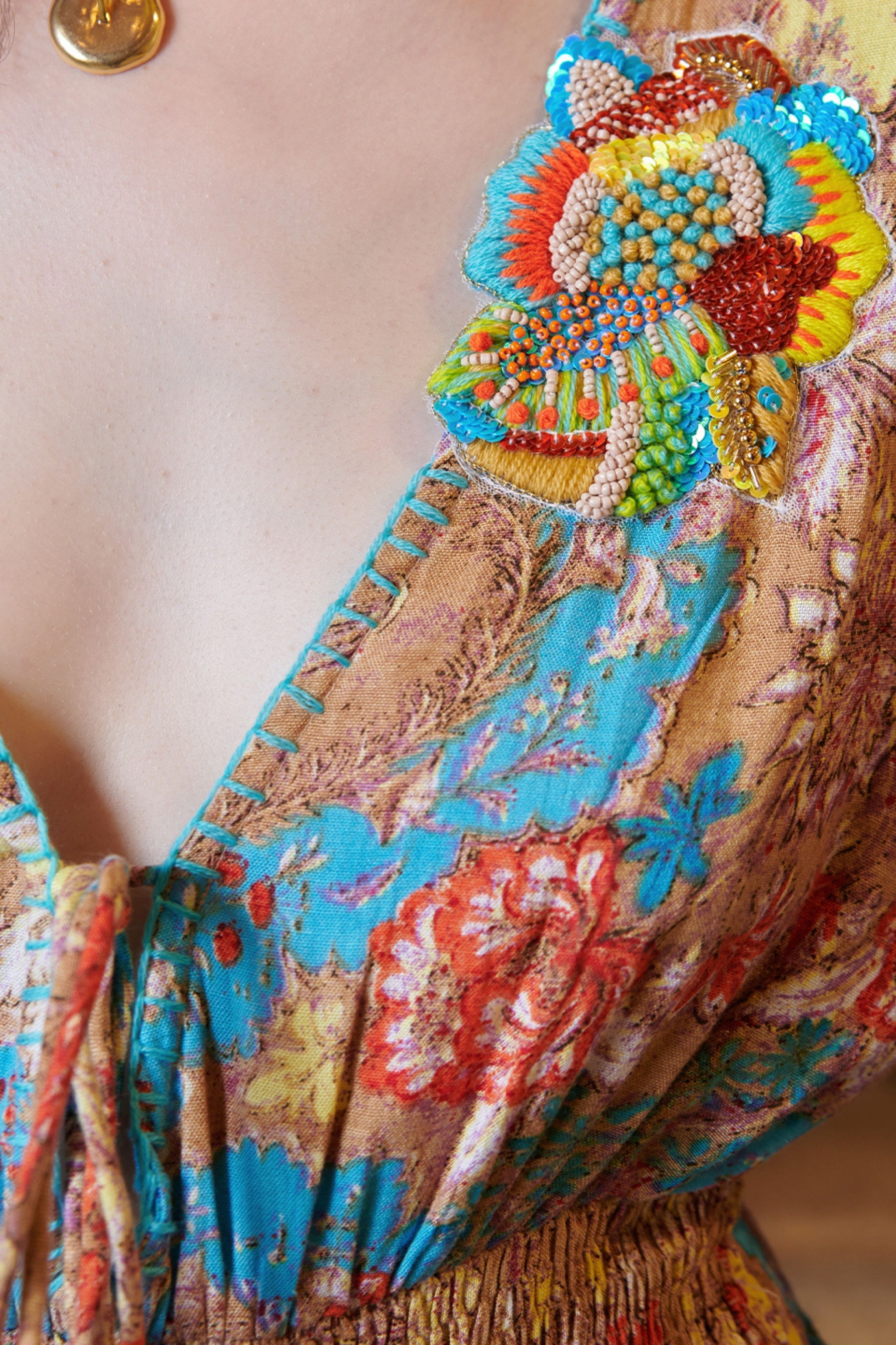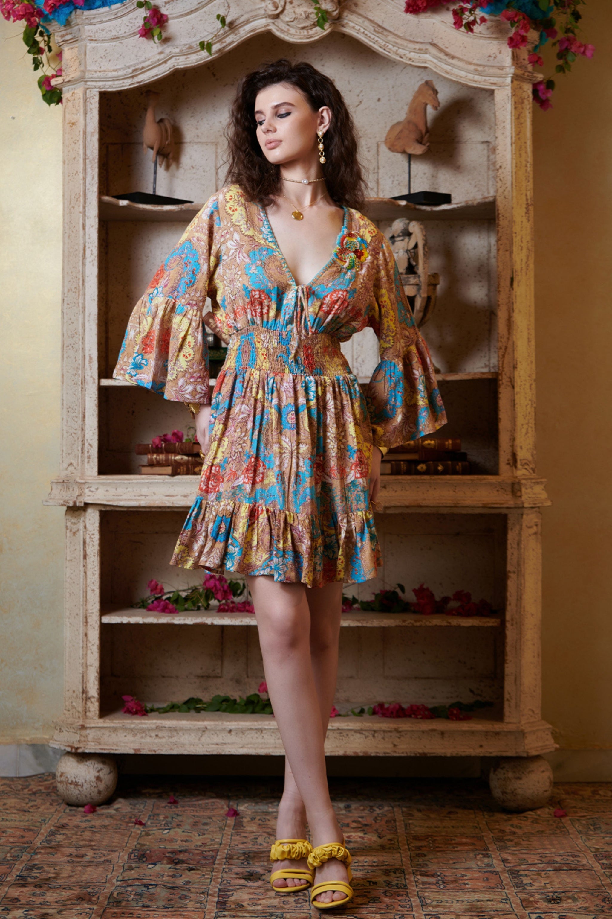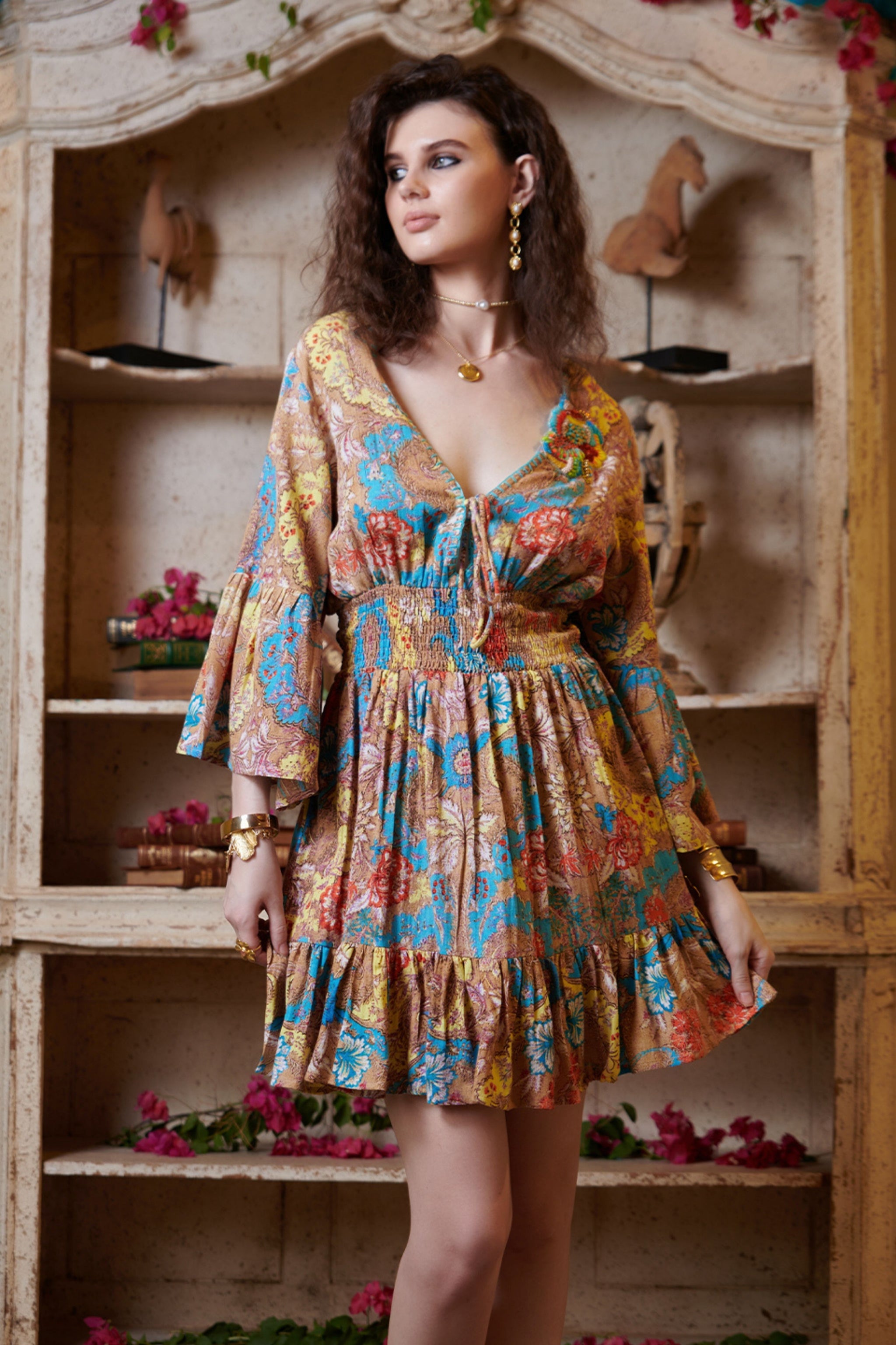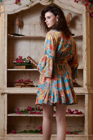 Multicolor V Neck Mini Dress