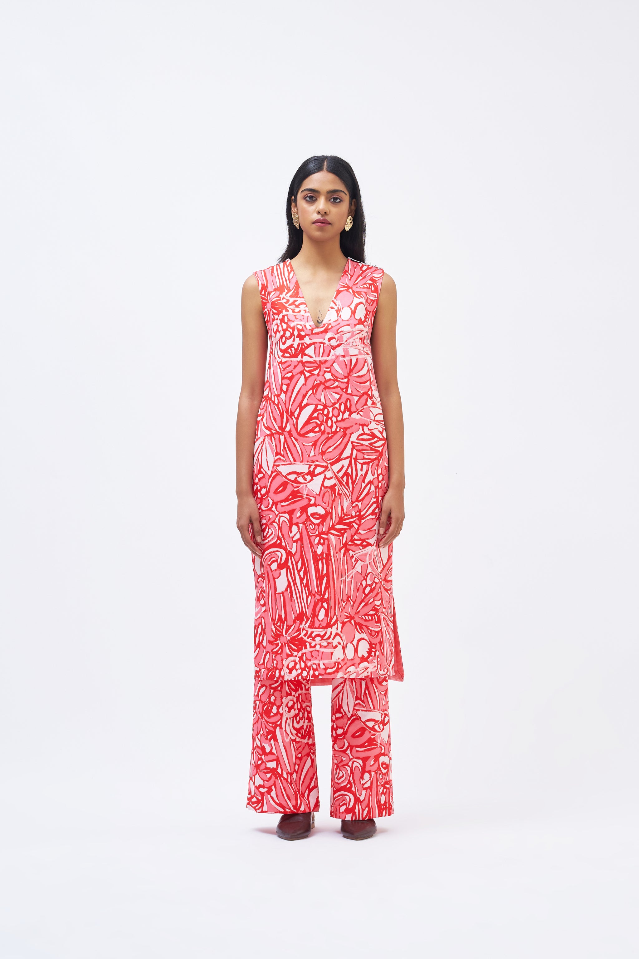 • Coral Pink Kurta Pant Set