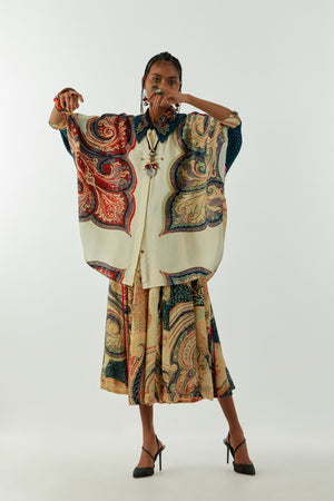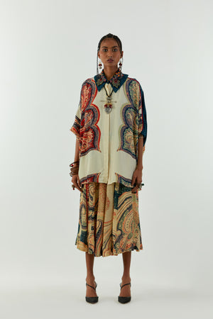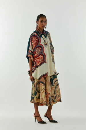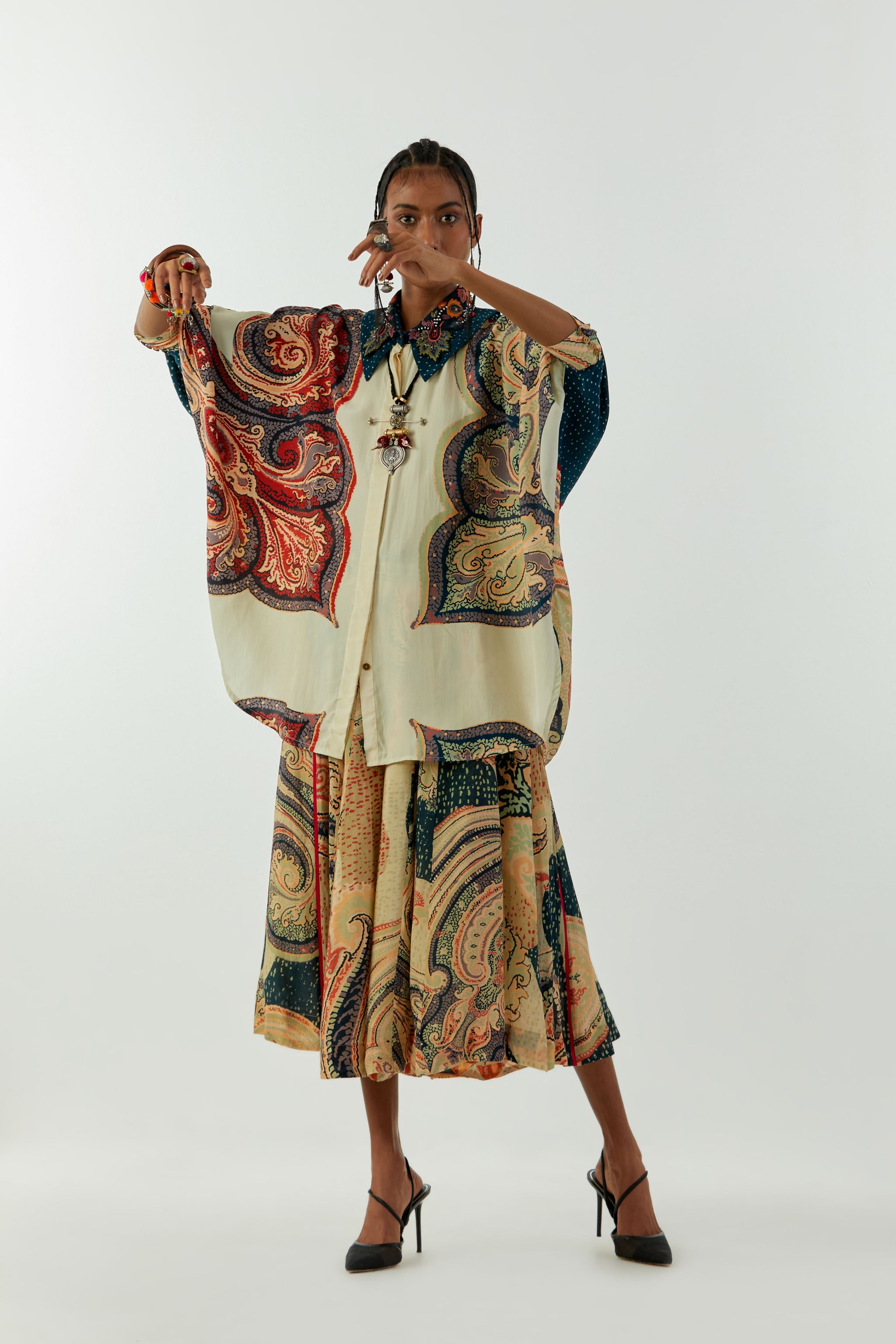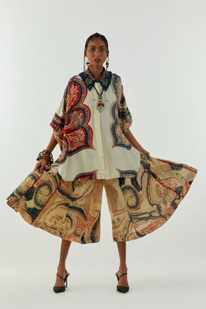 • Ambi print mandala shirt with embroidered collar paired with printed culottes trouser.