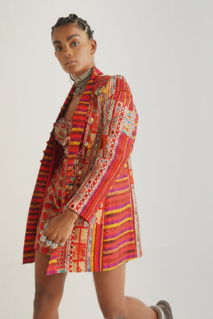 • Collage print classic open jacket with tribal detail on collar with ak brand button