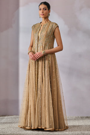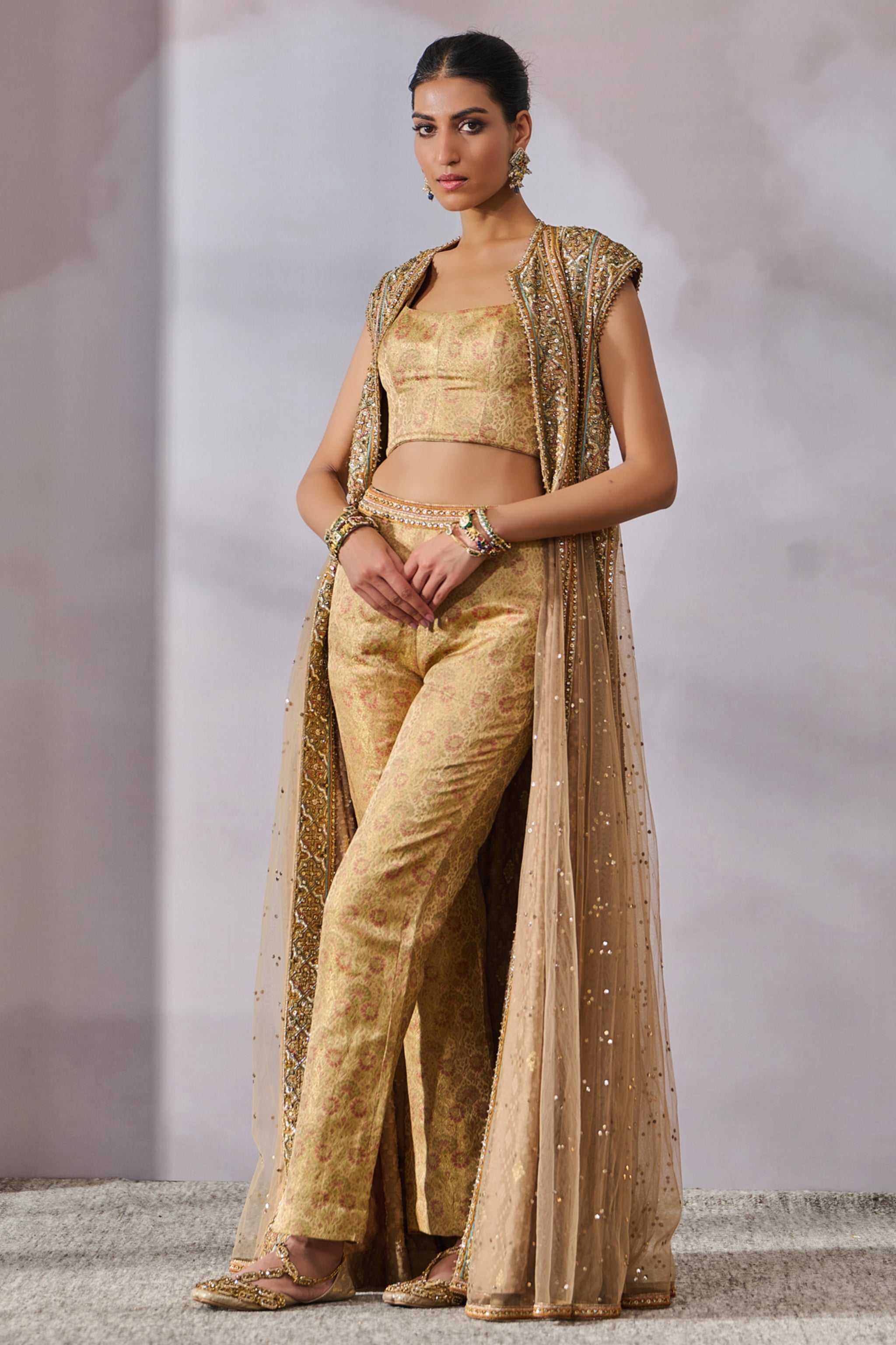 • Fabric: Jacket : Soft Net Mukaish, Trousers : Brocade, Bustier : Brocade