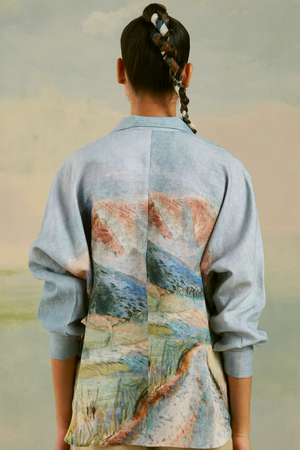 Care: Dry Clean Only. As garments are handmade and handwoven, natural variations in colours and weaves are a characteristic of the textile, and may be found in the finished garments as well.