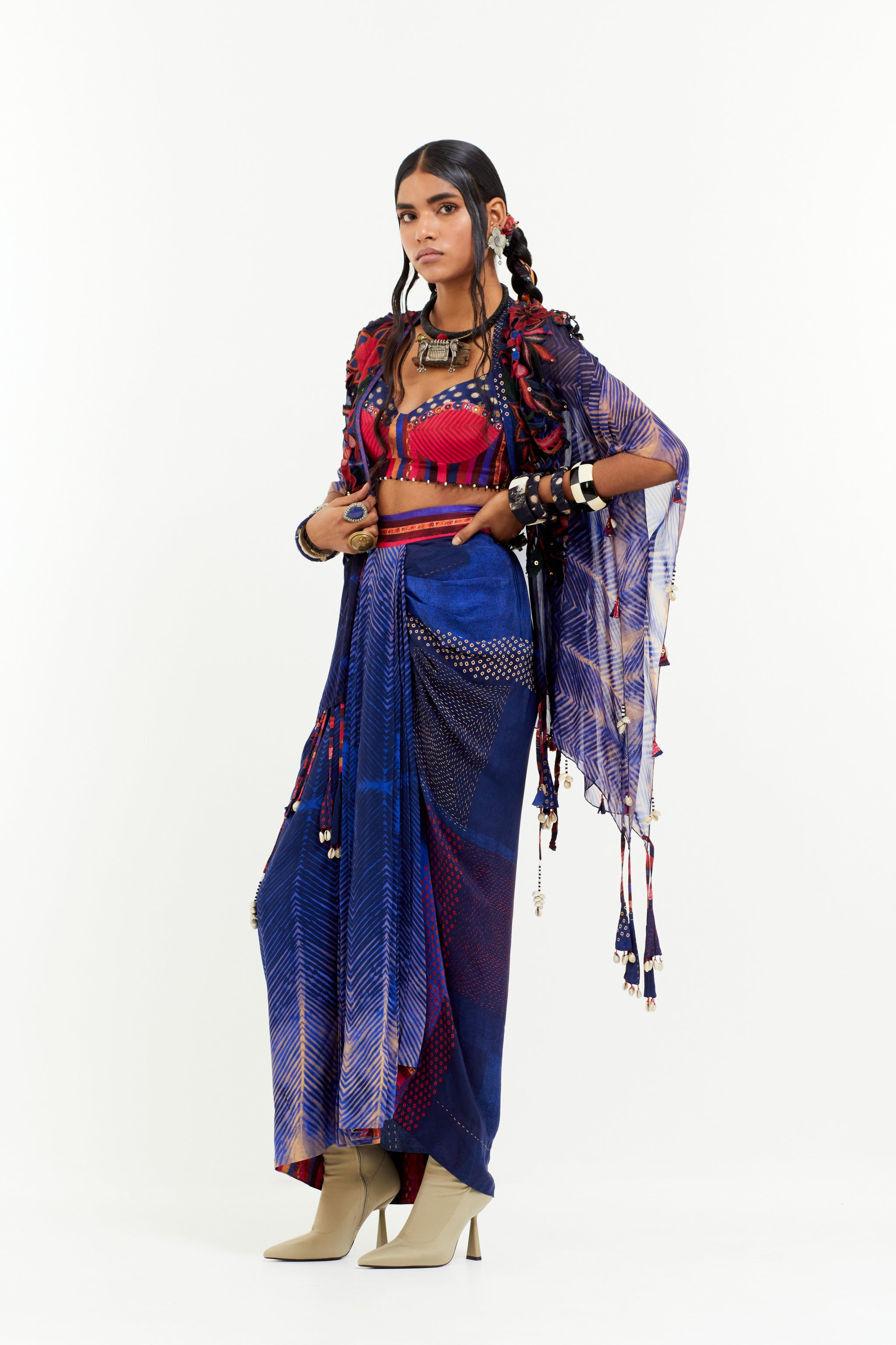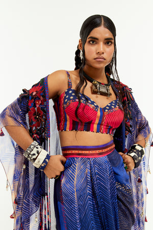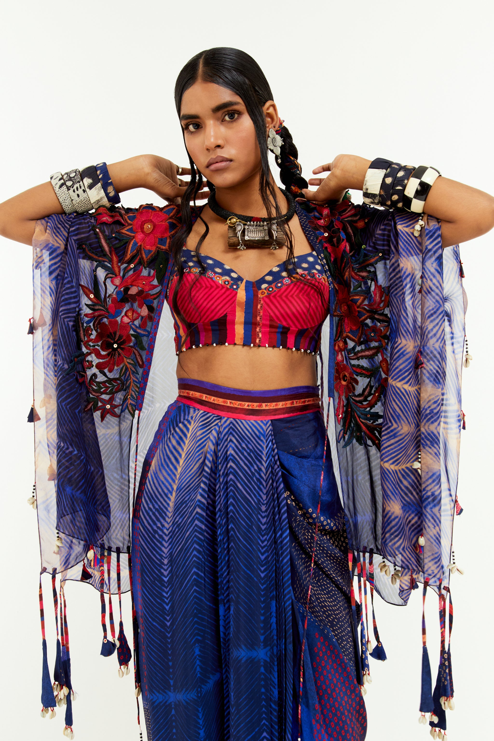 • Anti Fit Blouse With Smocked Back Detailed With Embroided Straps embroidery Type - Resham Work With Sequins And Moti Work blouse Length - 15.5 " note - Slight Variation In Print