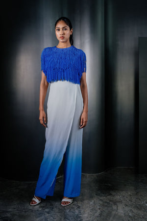 • This flapper pant is carefully crafted in crepe with a unique three colour ombre, elevated with a flap and pearl cluster detailing at the closure.