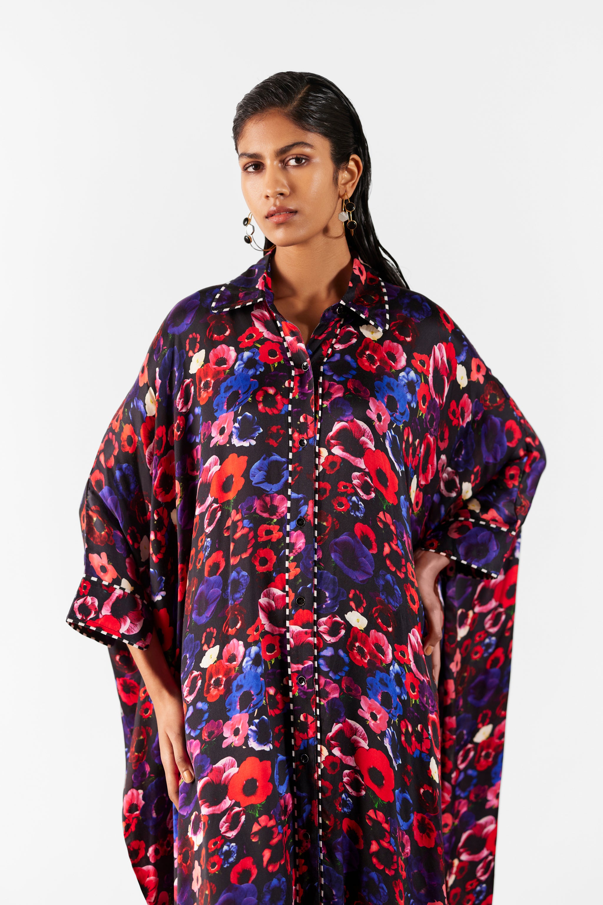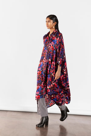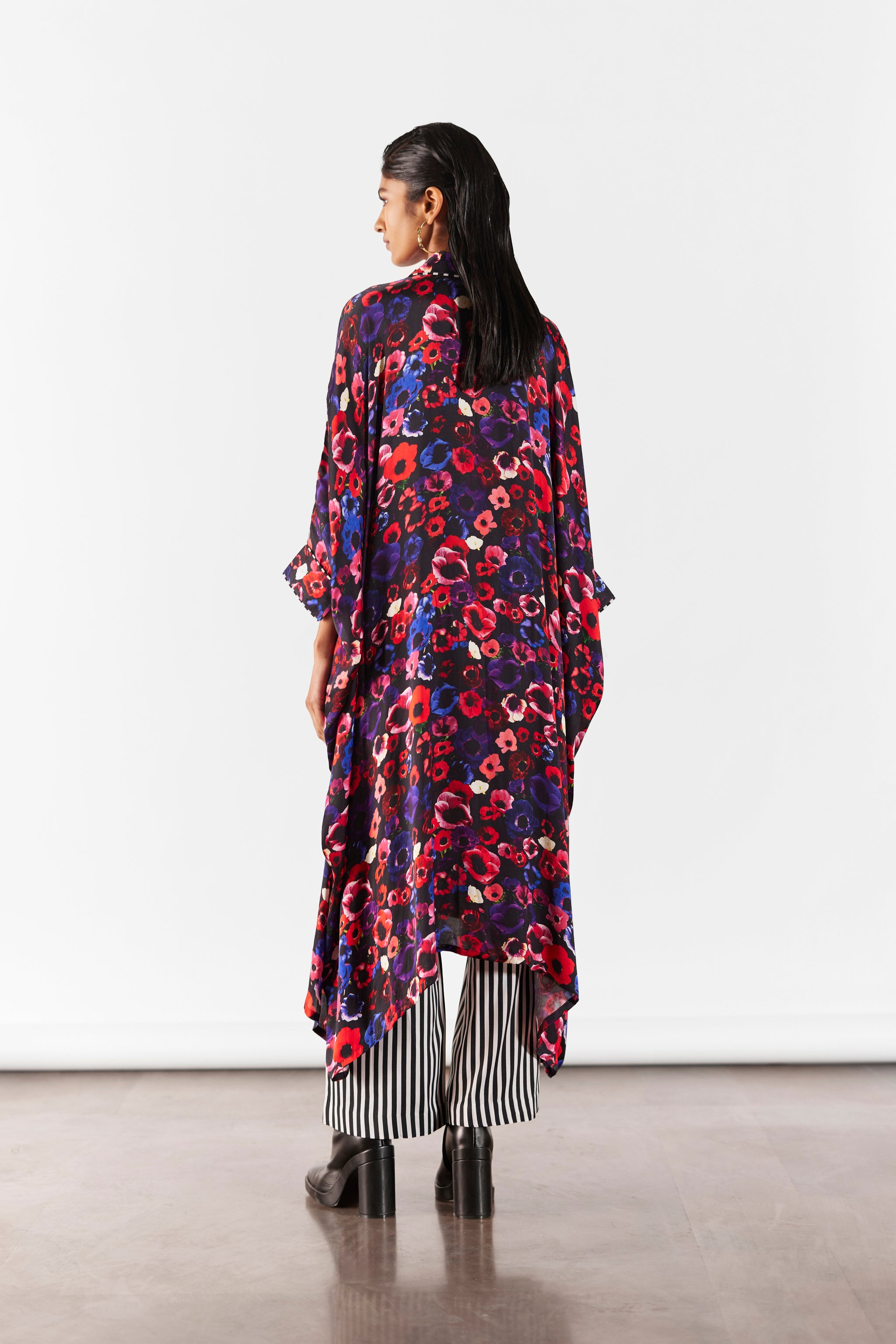 • The Peony Kimono with Striped Straight Pants Co-ord crafted from our stunning Vegan silk fabrication, trans-seasonal, is a statement piece. Made in our hand drawn Peony print inspired by the bloom of peonies, it is free size. With a front button opening and contrast piping, it is chic. Featuring a collar, this piece is a classic and can be styled in different ways. Paired with our striped Straight trousers. Wear it with heels for an elegant look.