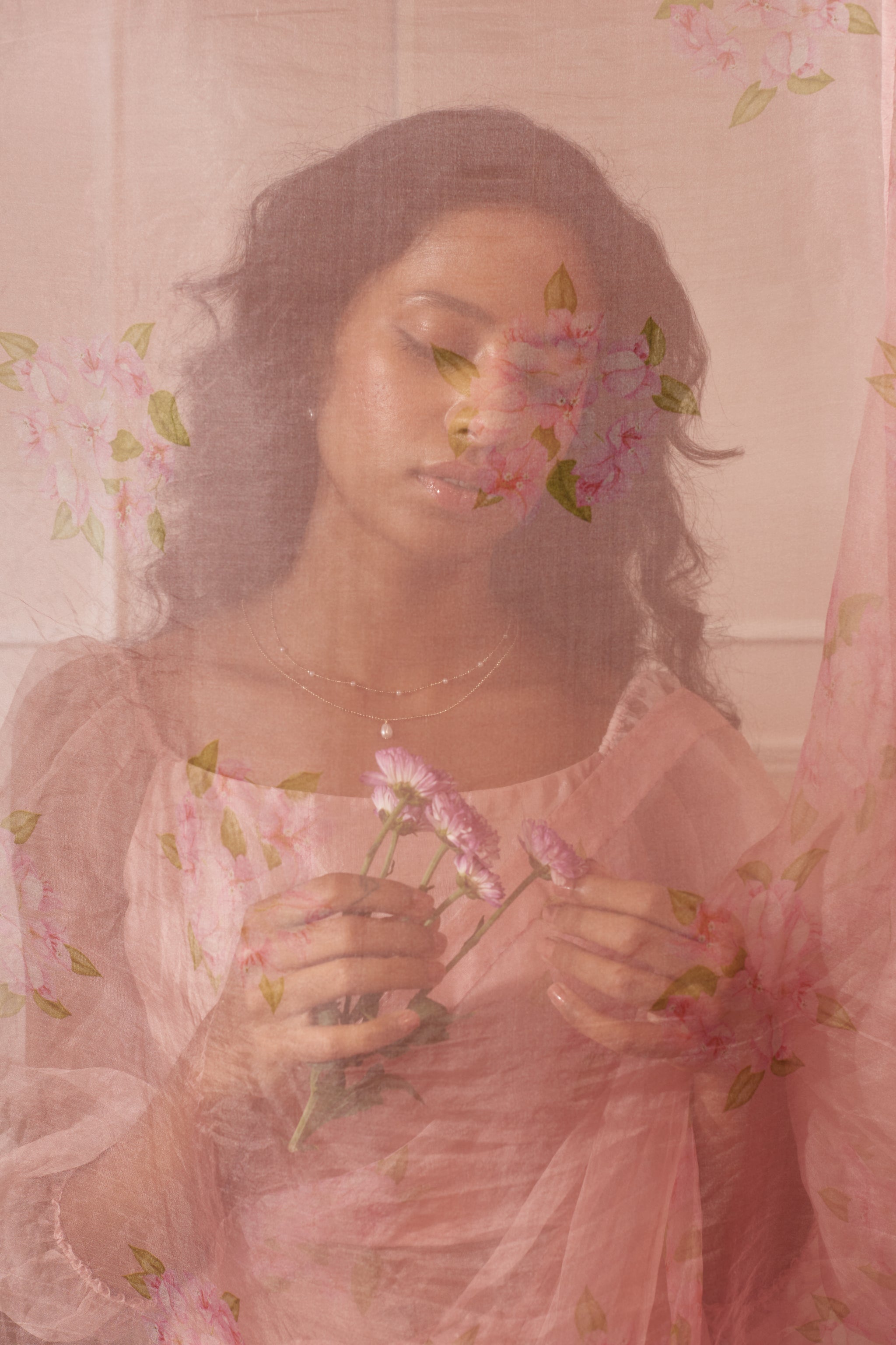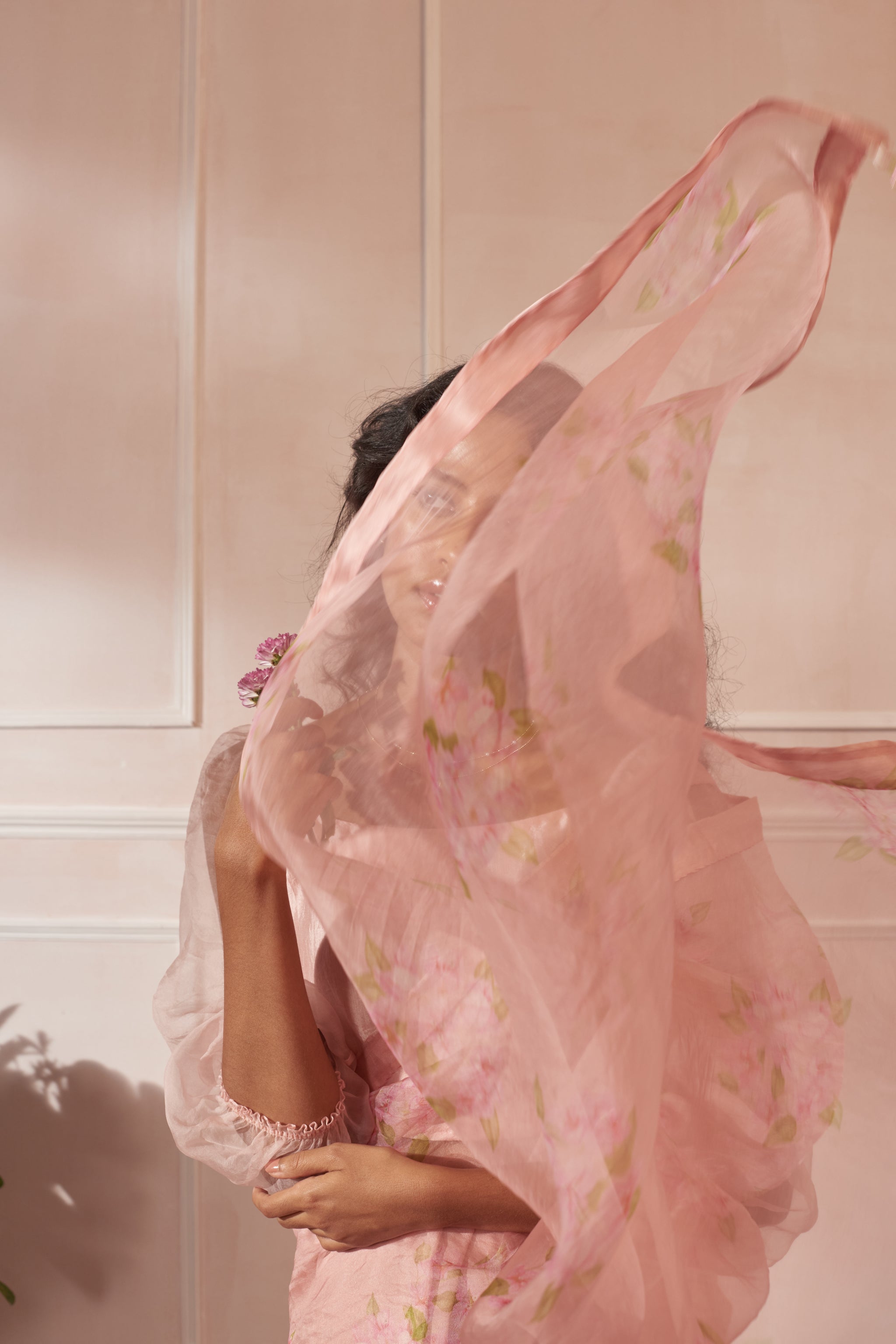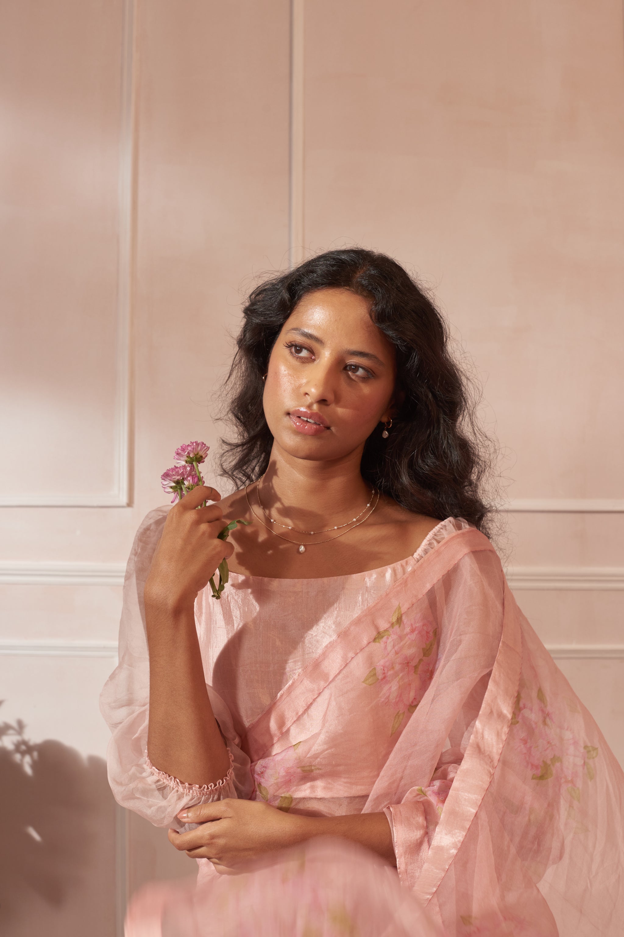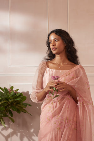 • Fabric: Handwoven Mulberry Silk and half Silk Organza Sari with same print Silk blouse pcs.