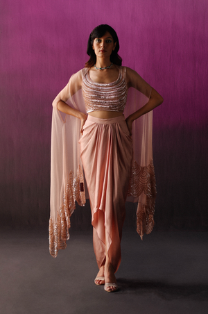 Peachy Dhoti Cape Set