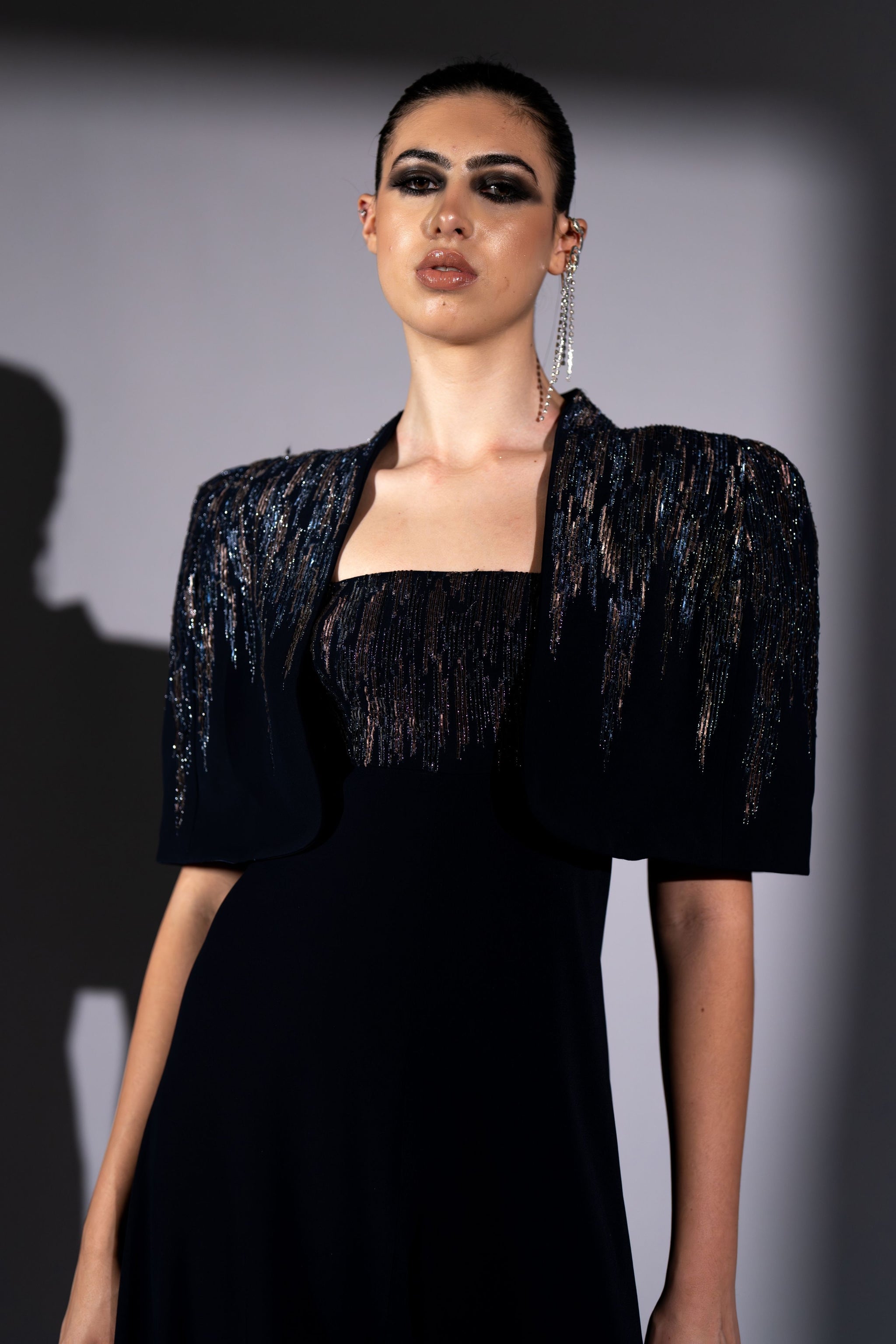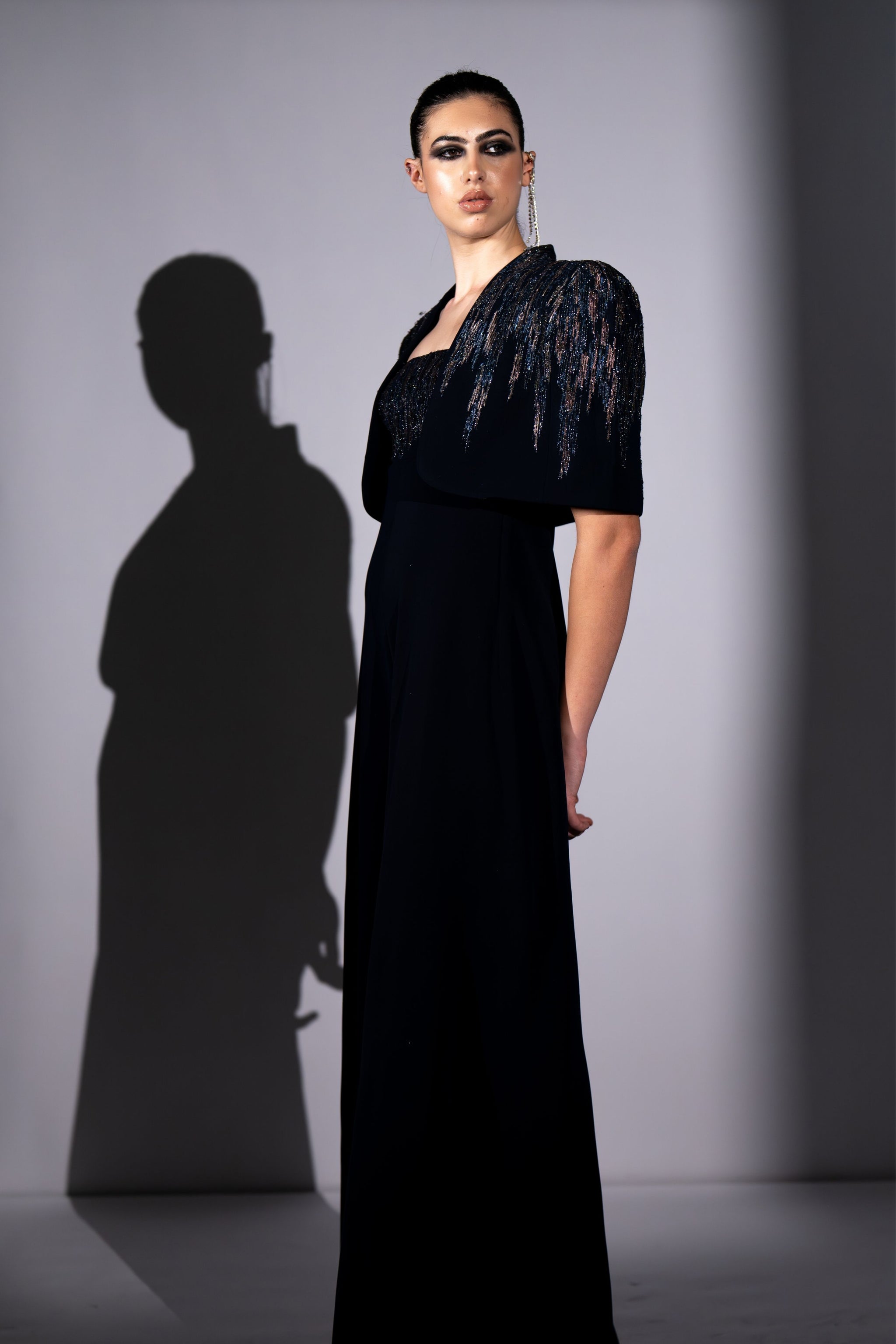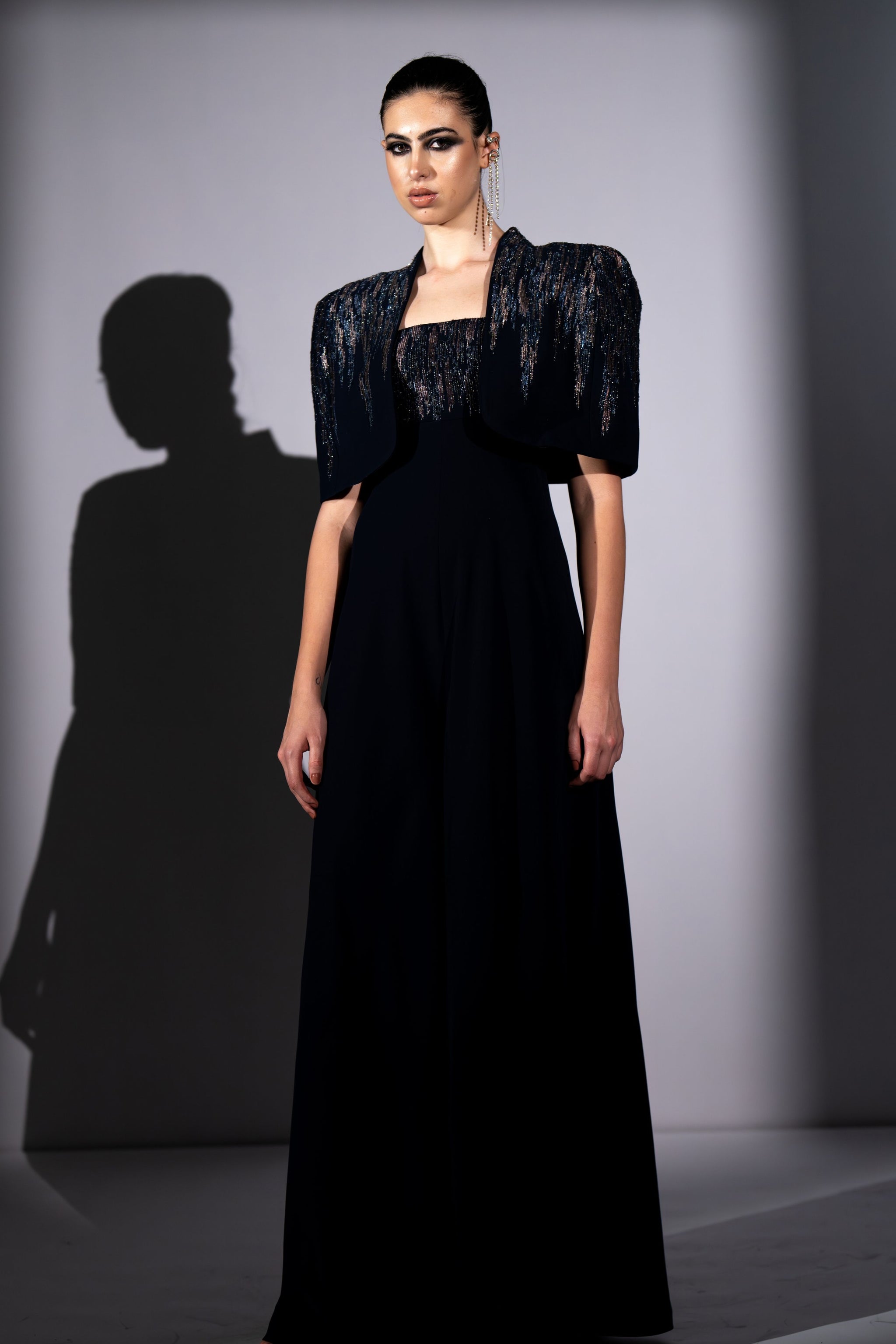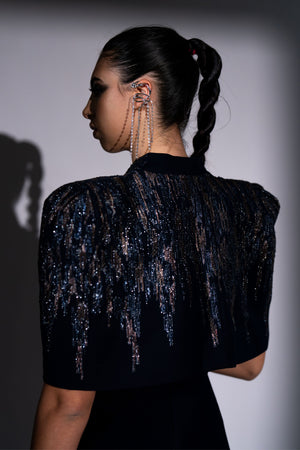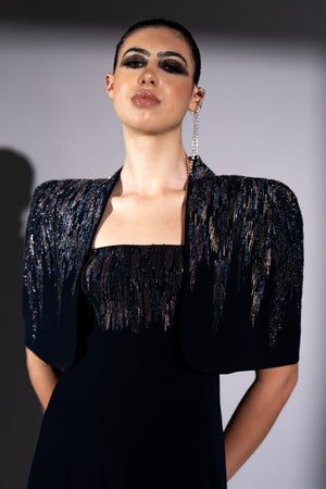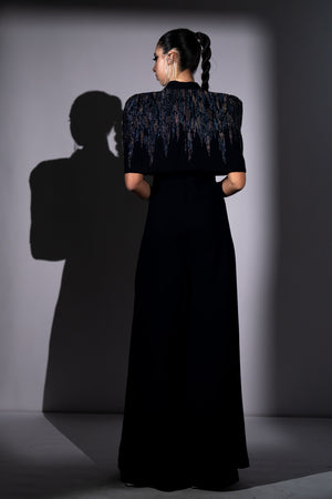 • Navy blue meteor embroidered jumpsuit and cape