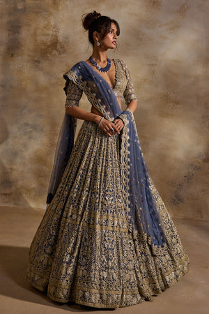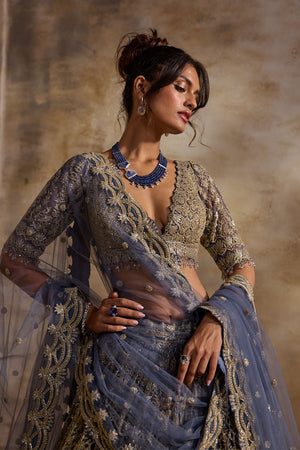 Blue Grey Lehenga Set