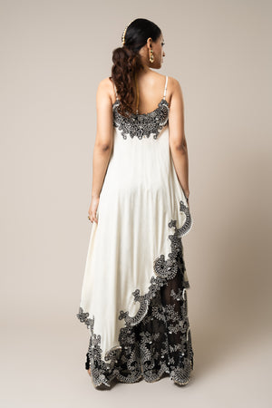 Off-white & Black Heavy Embroidered Co-ord Set