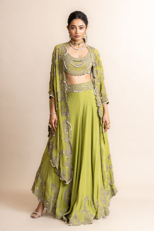 • Fabric: Dupatta - Georgette, Blouse - Crepe & Satin Lycra, Lehenga - Crepe & Can-Can