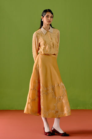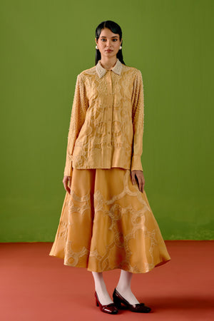 • A poetic expression of glamour and heritage, this silk shirt from begum’s rhapsody embodies the opulence of the grand gatsby age through a contemporary, global lens. Crafted in tissue and buttery silk, the piece blends historic textile artistry with art deco–inspired western tailoring. Please note, all pieces are made by hand, celebrating handwoven fabrics and hand made, hence there might be some irregularities from piece to piece.