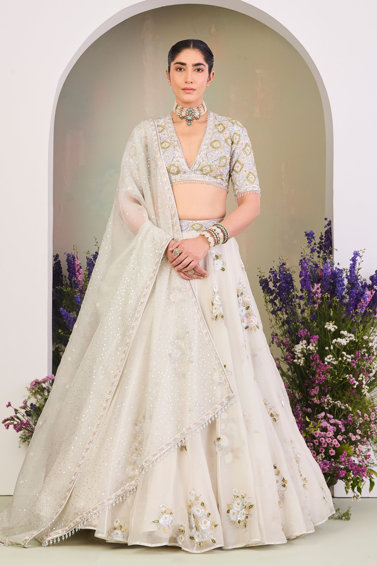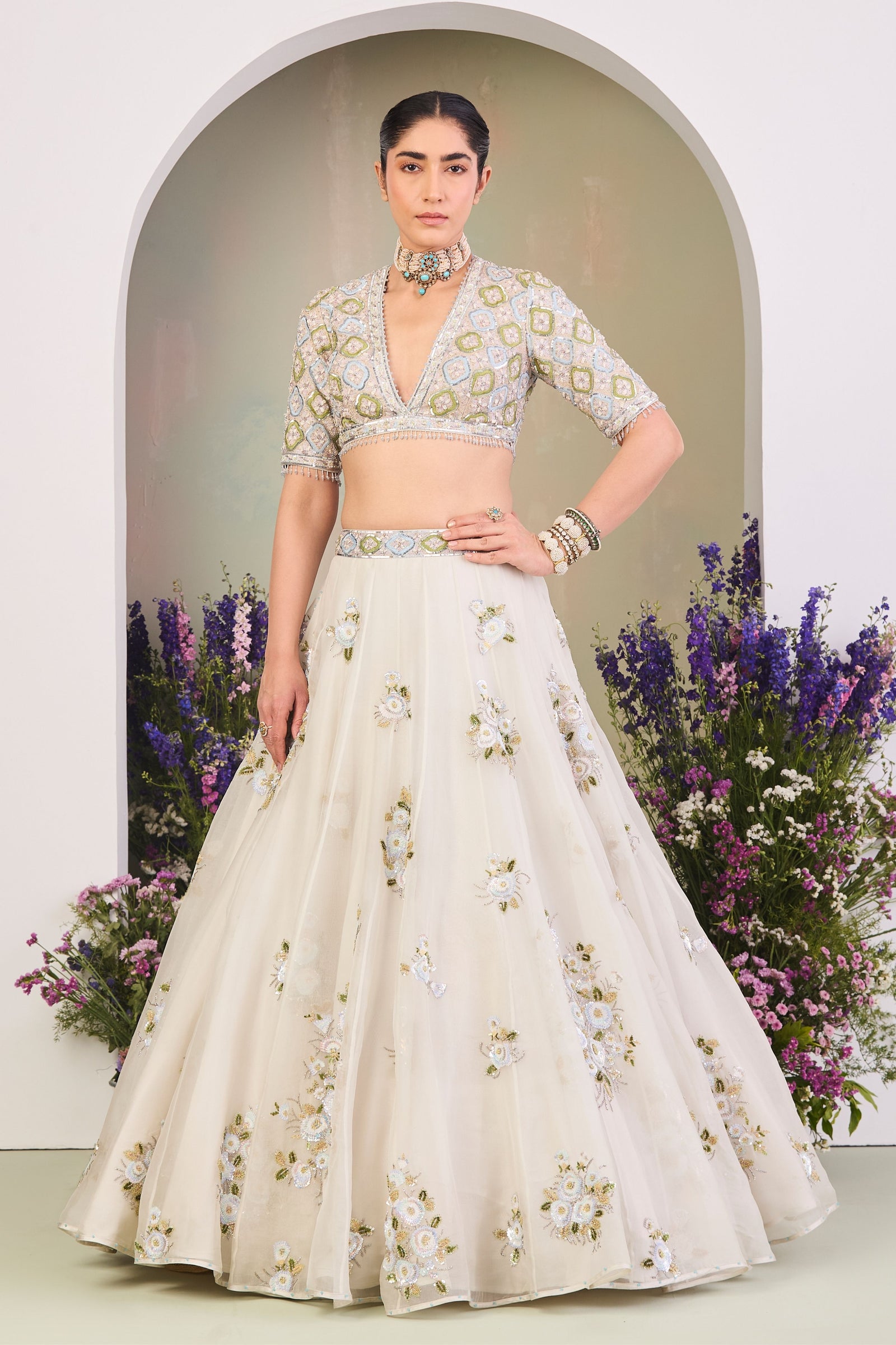 • This vibrant orange pure linen co-ordinate set boasts a beautiful digital print of white lilies. The shirt has a classic collar, front placket, full sleeves with modified cuffs, and delicate beading. Paired with loose pants.