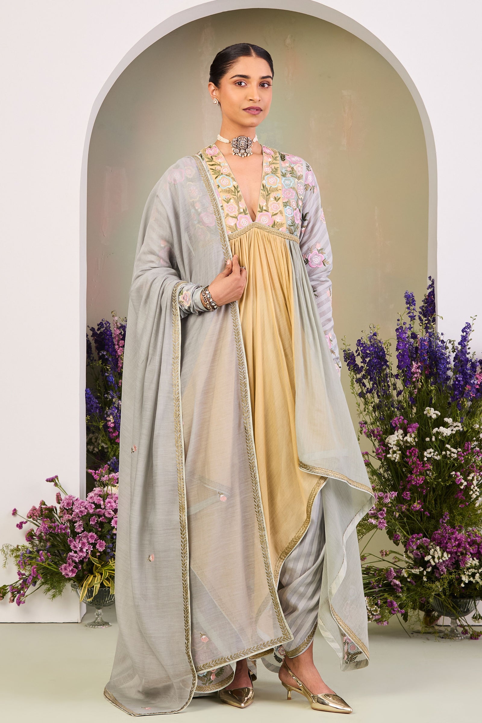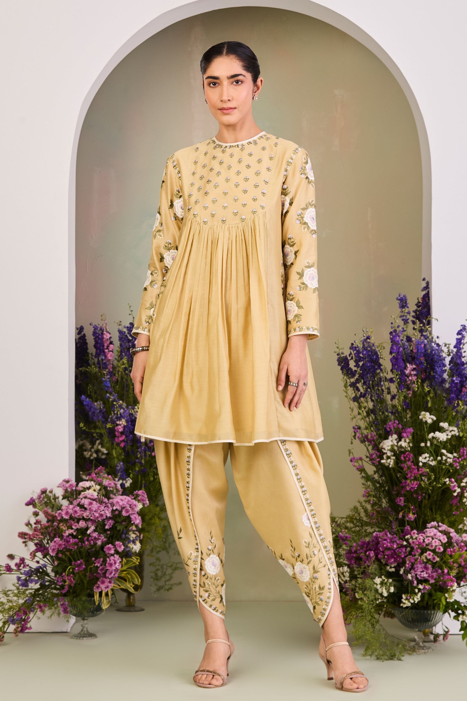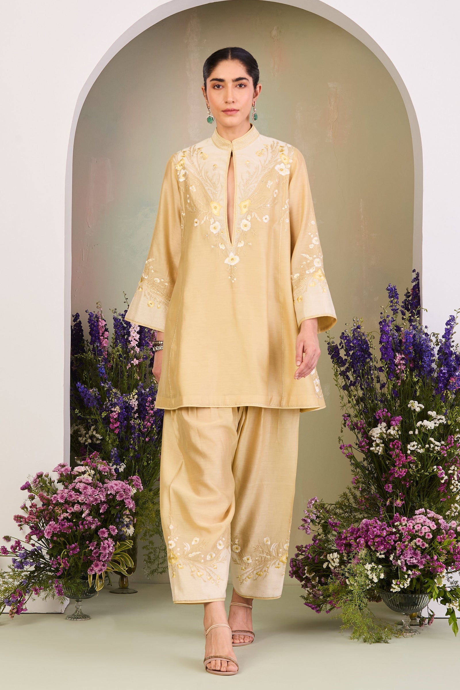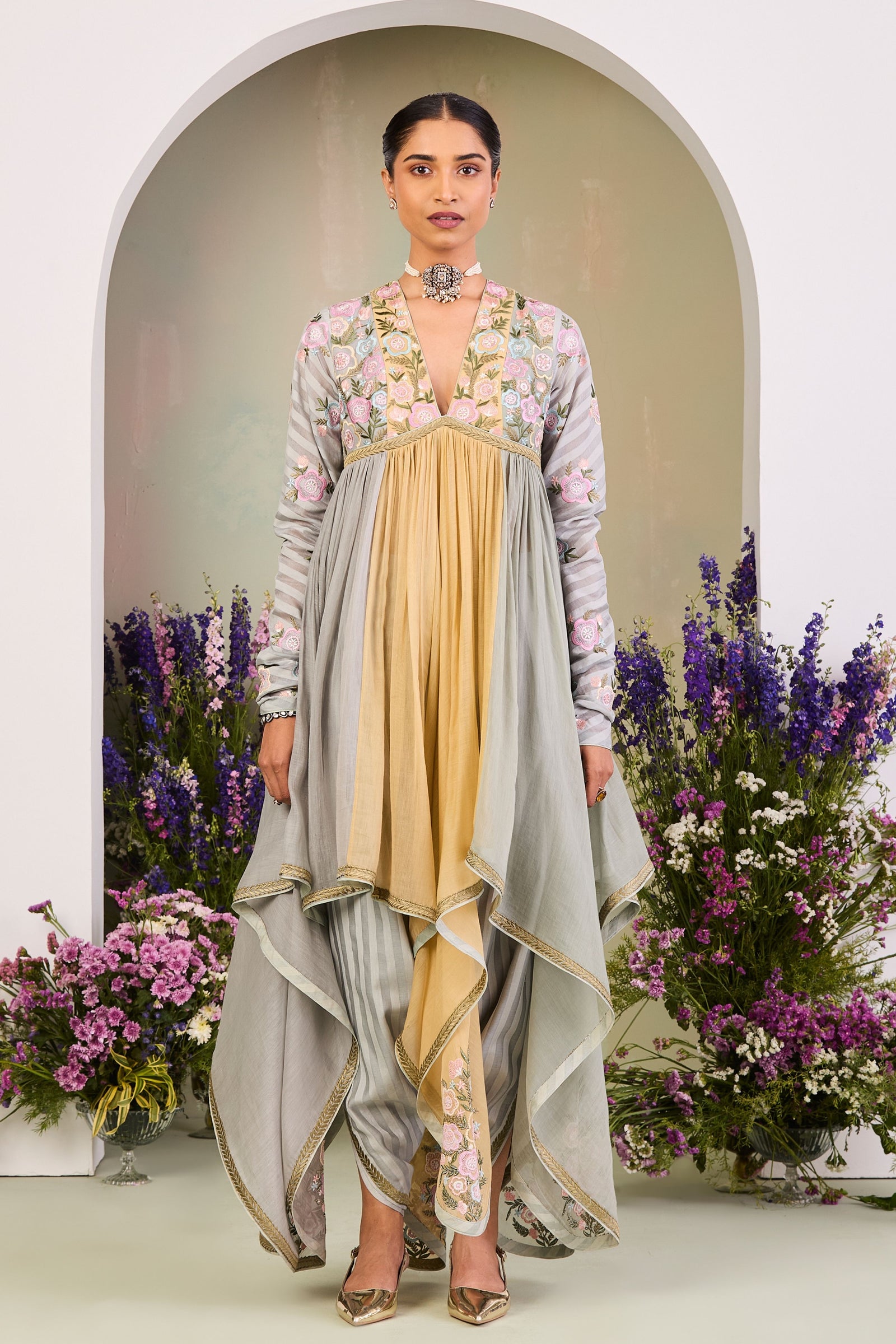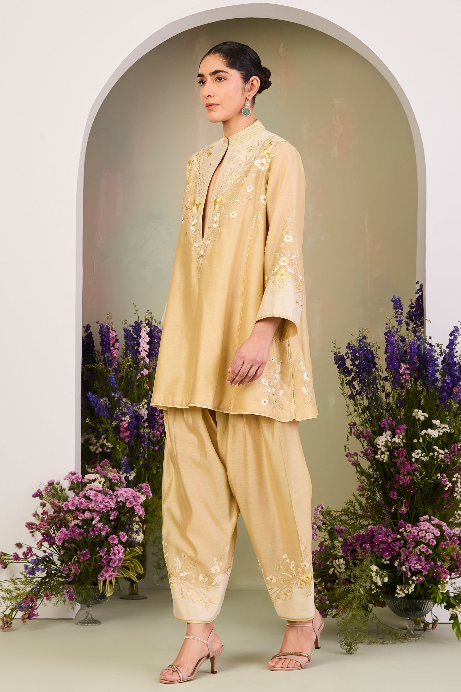 Care: Dry Clean Only. As garments are handmade and handwoven, natural variations in colours and weaves are a characteristic of the textile, and may be found in the finished garments as well.