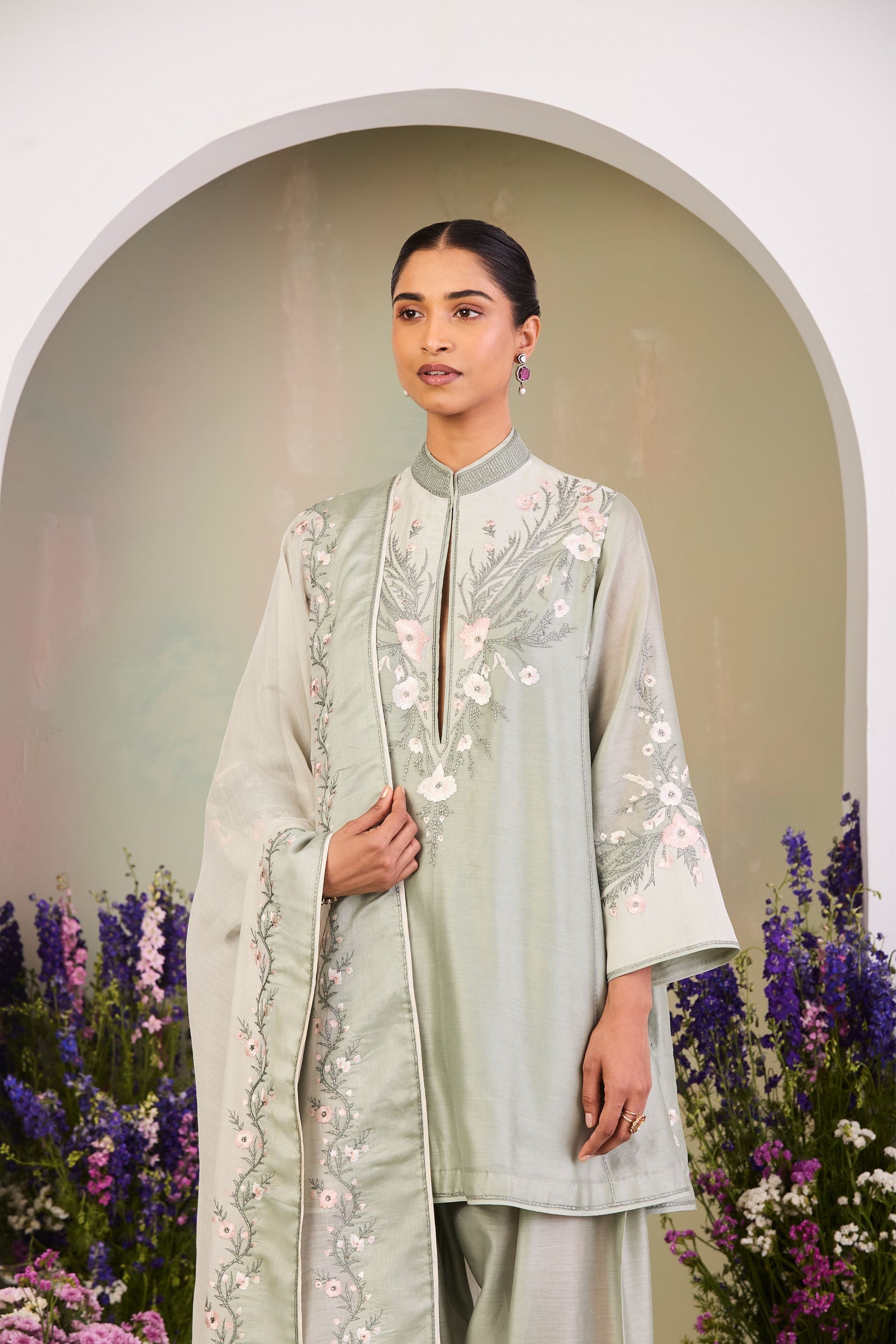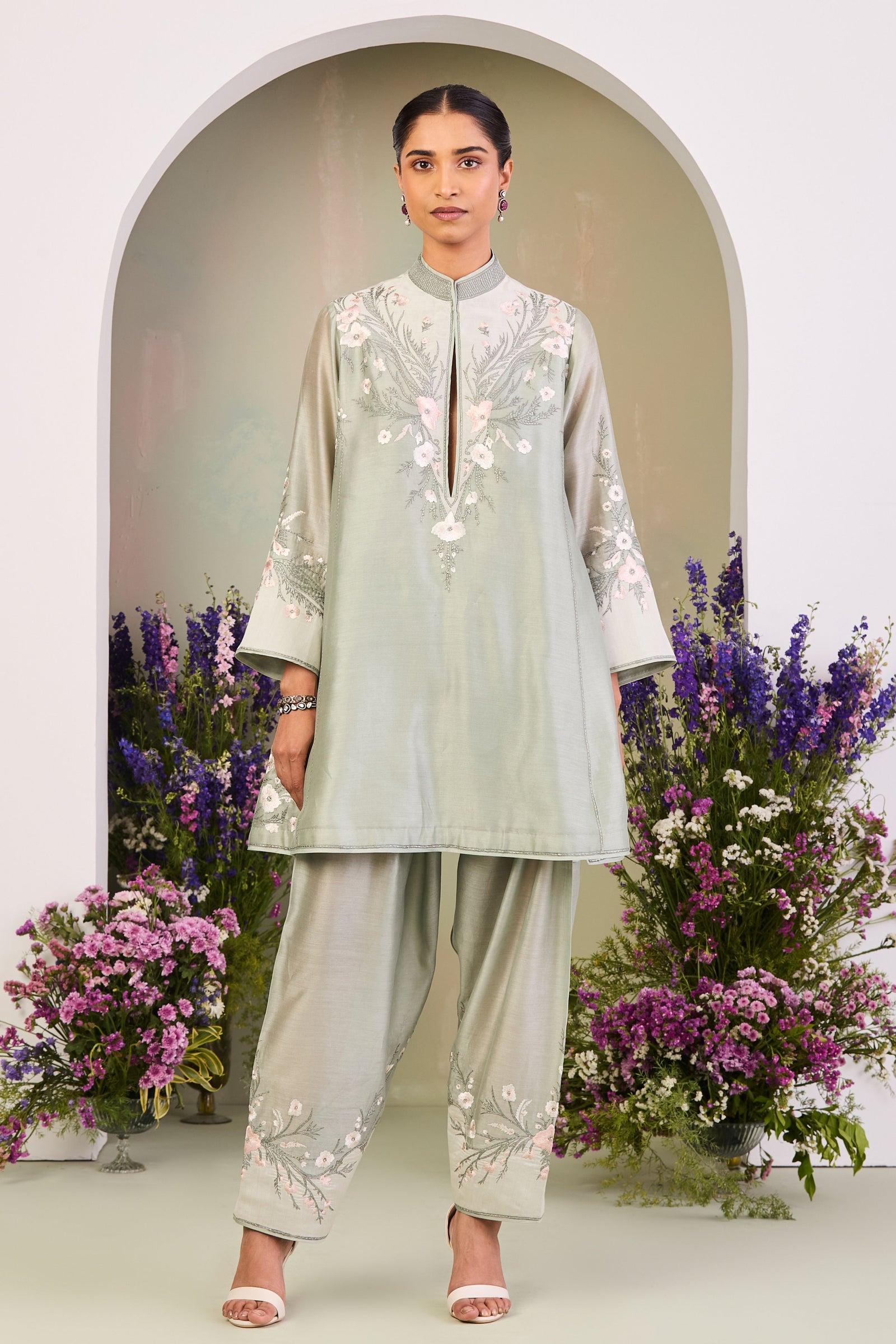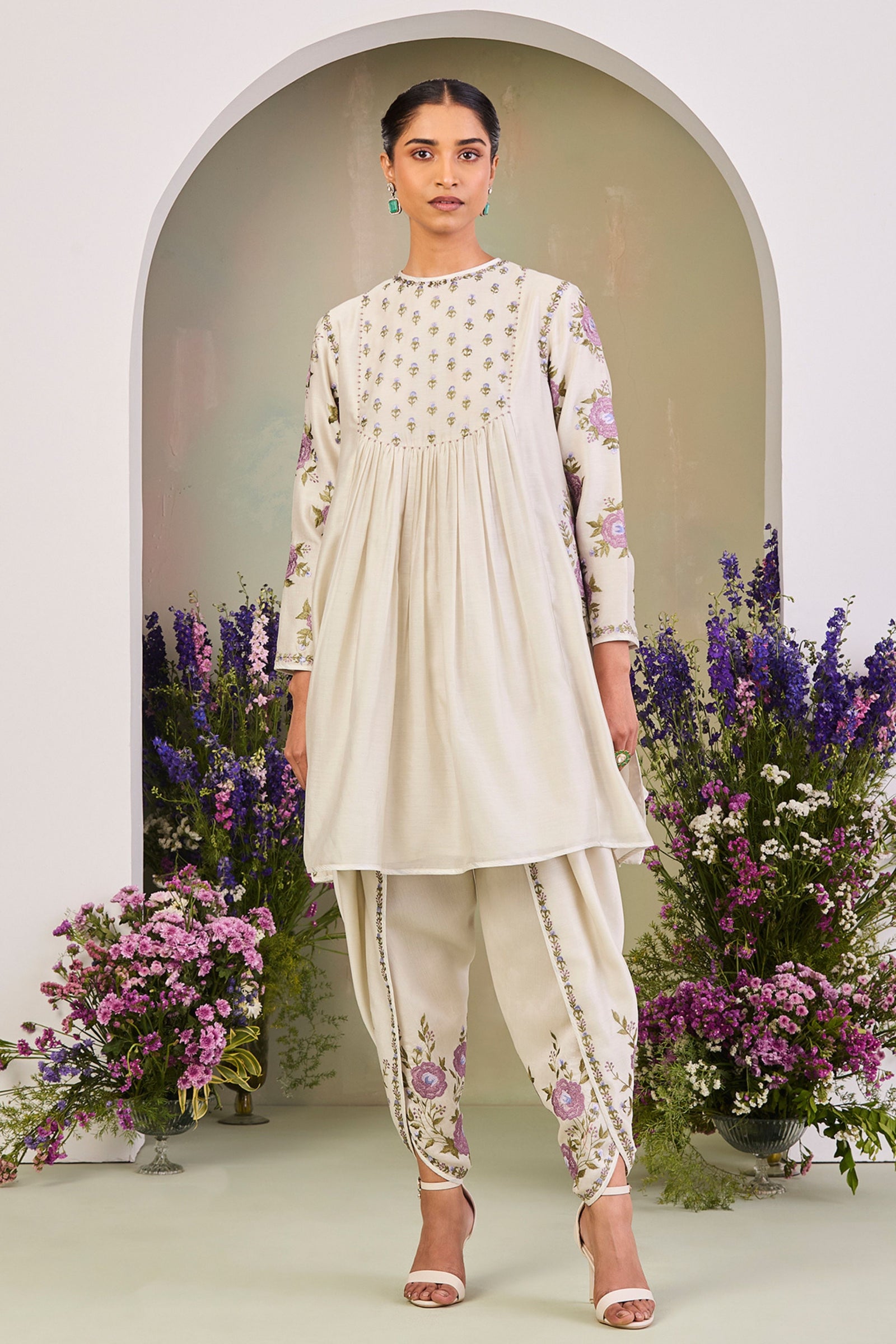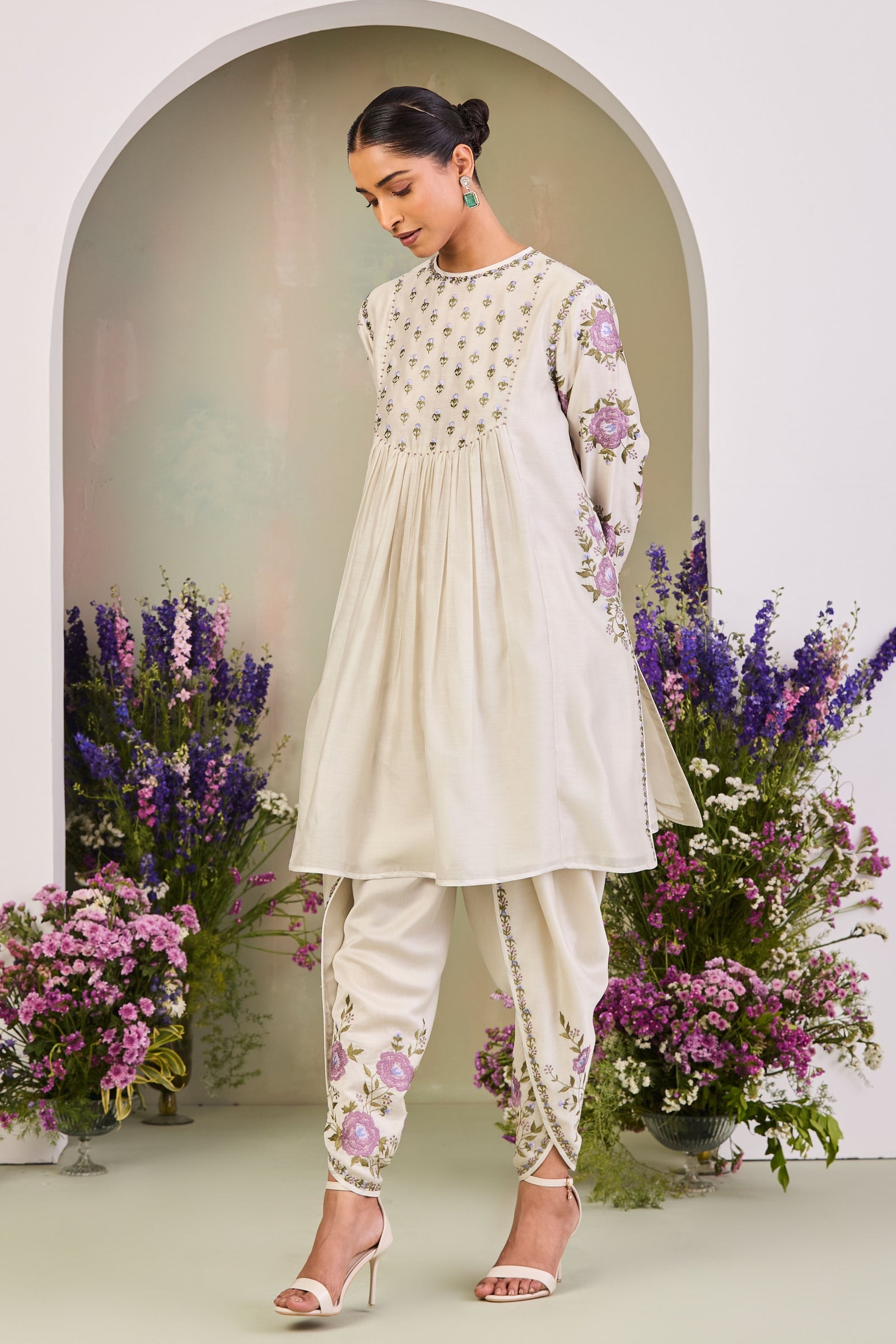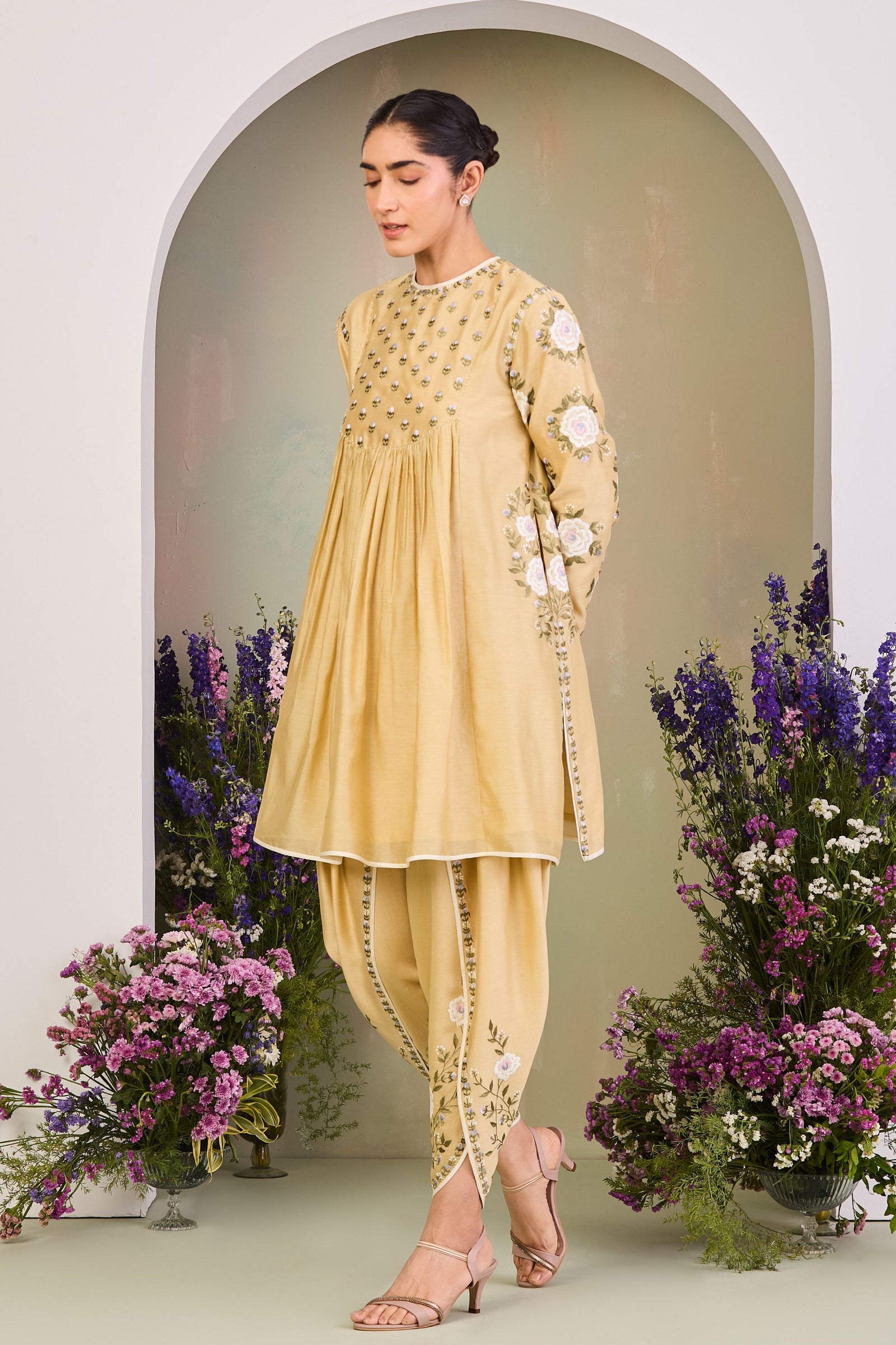 Care: Dry Clean Only. As garments are handmade and handwoven, natural variations in colours and weaves are a characteristic of the textile, and may be found in the finished garments as well.