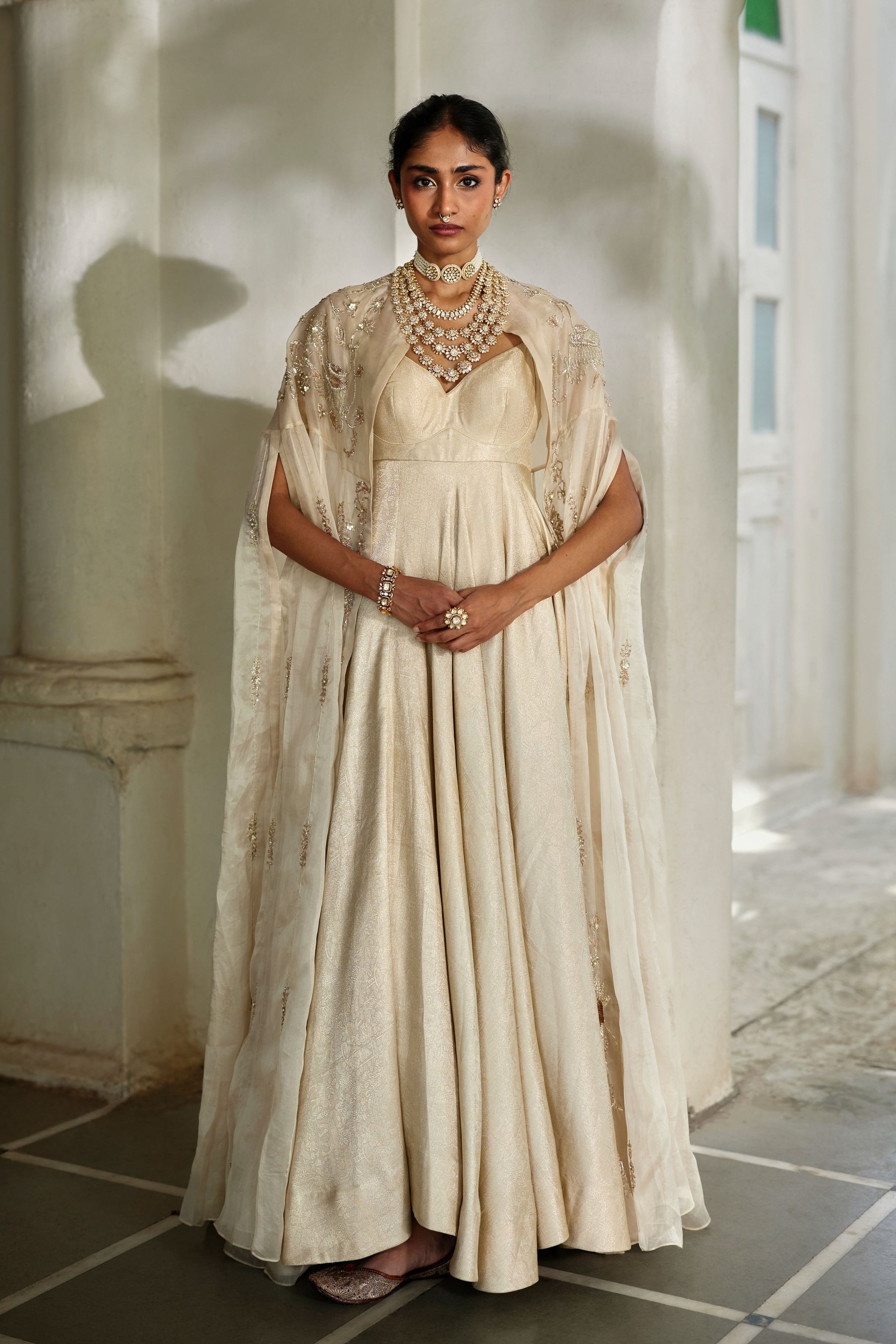 • Fabric: Anarkali- Jamawar Jacquard, Cape- Pure Organza, Satin