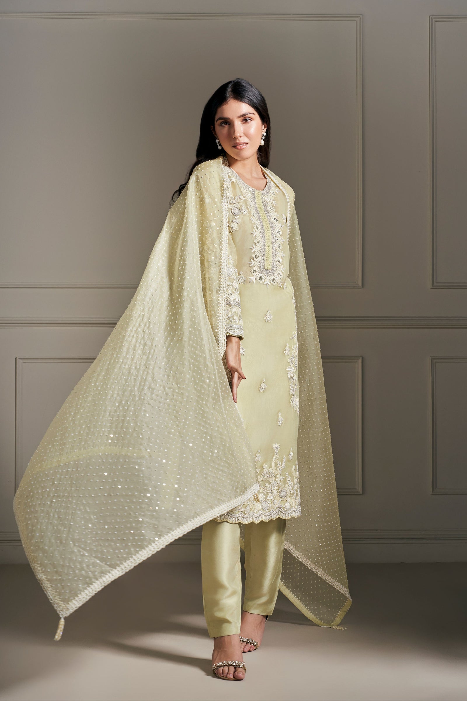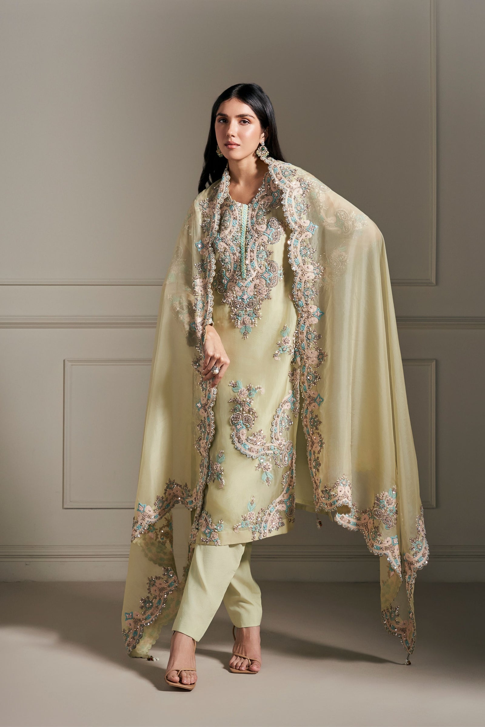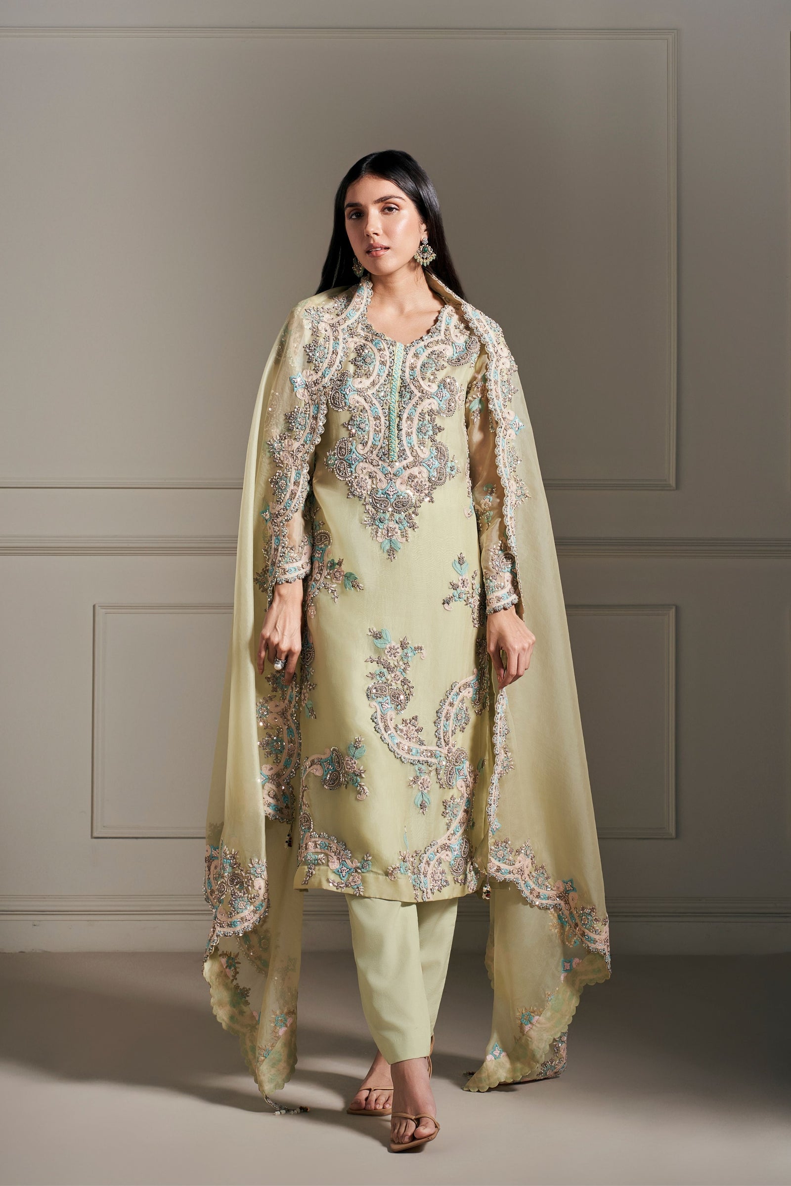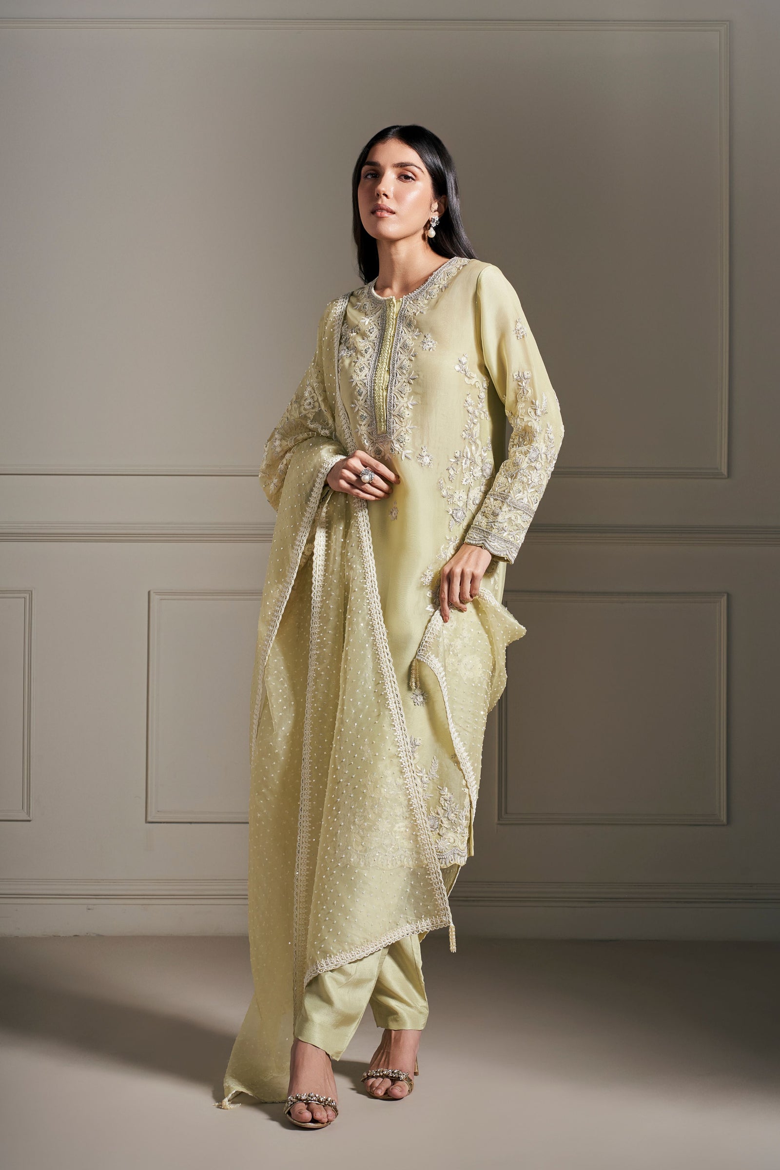 Care: Dry Clean Only. As garments are handmade and handwoven, natural variations in colours and weaves are a characteristic of the textile, and may be found in the finished garments as well.