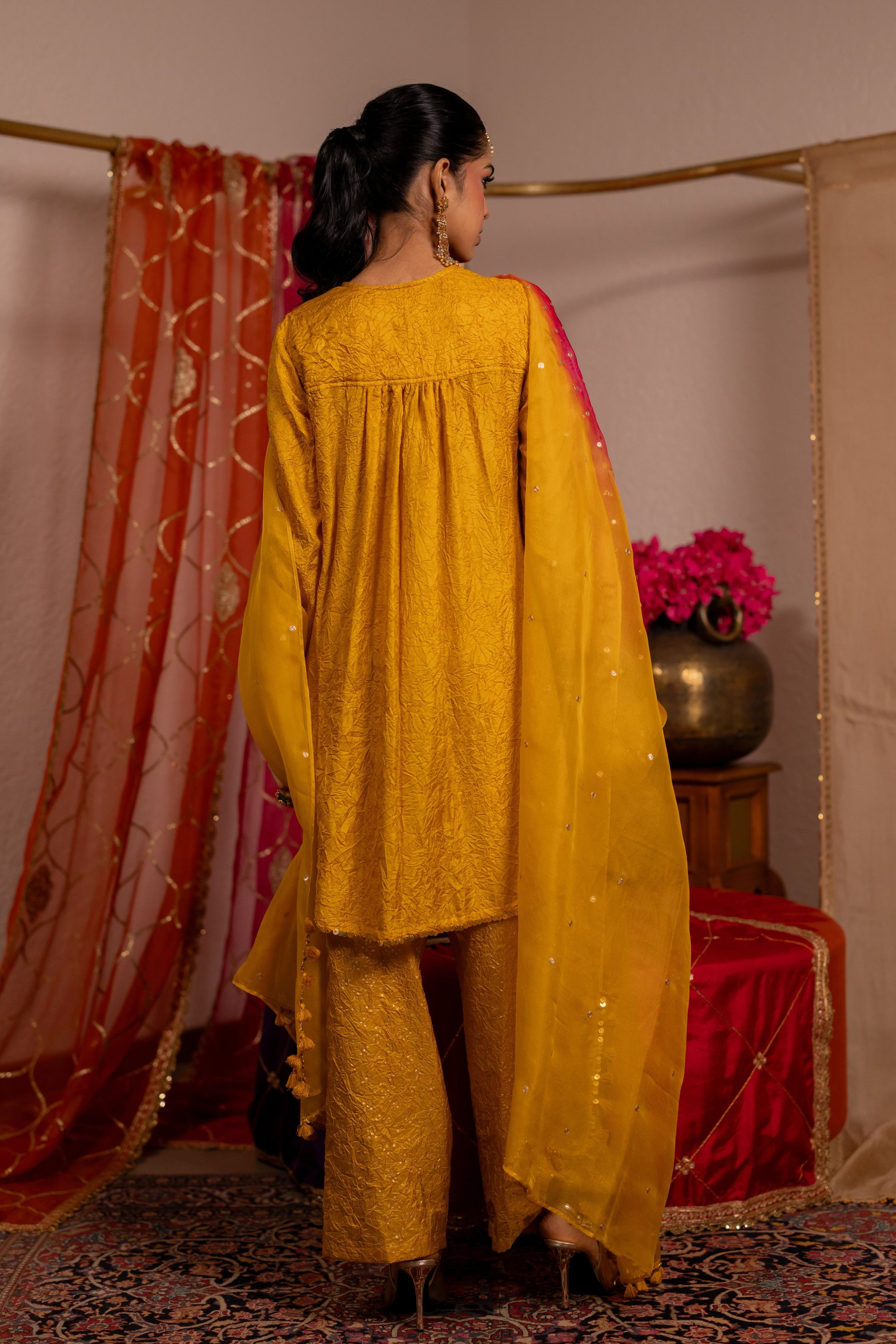 • The dupatta is purchased separately. Check out Mustard Organza Gul Dupatta