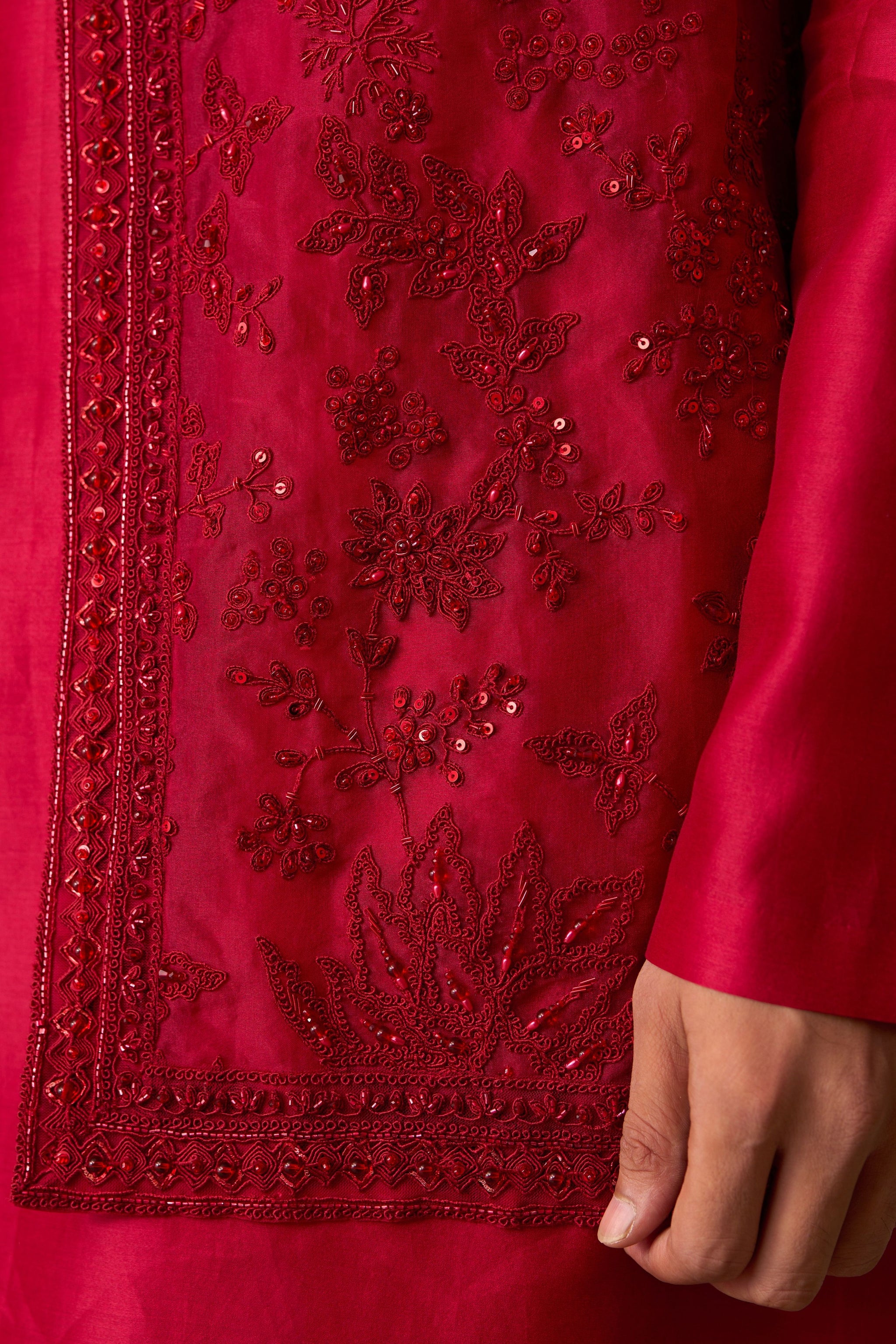 Care: Dry Clean Only. As garments are handmade and handwoven, natural variations in colours and weaves are a characteristic of the textile, and may be found in the finished garments as well.