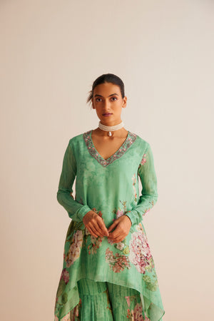 • Featuring A Tunic Set Embellished At The Neckline And Printed In A Way That It Glistens With Elegance And Glamour. tunic Front Length - 30 tunic Back Length - 43 pant Length - 42