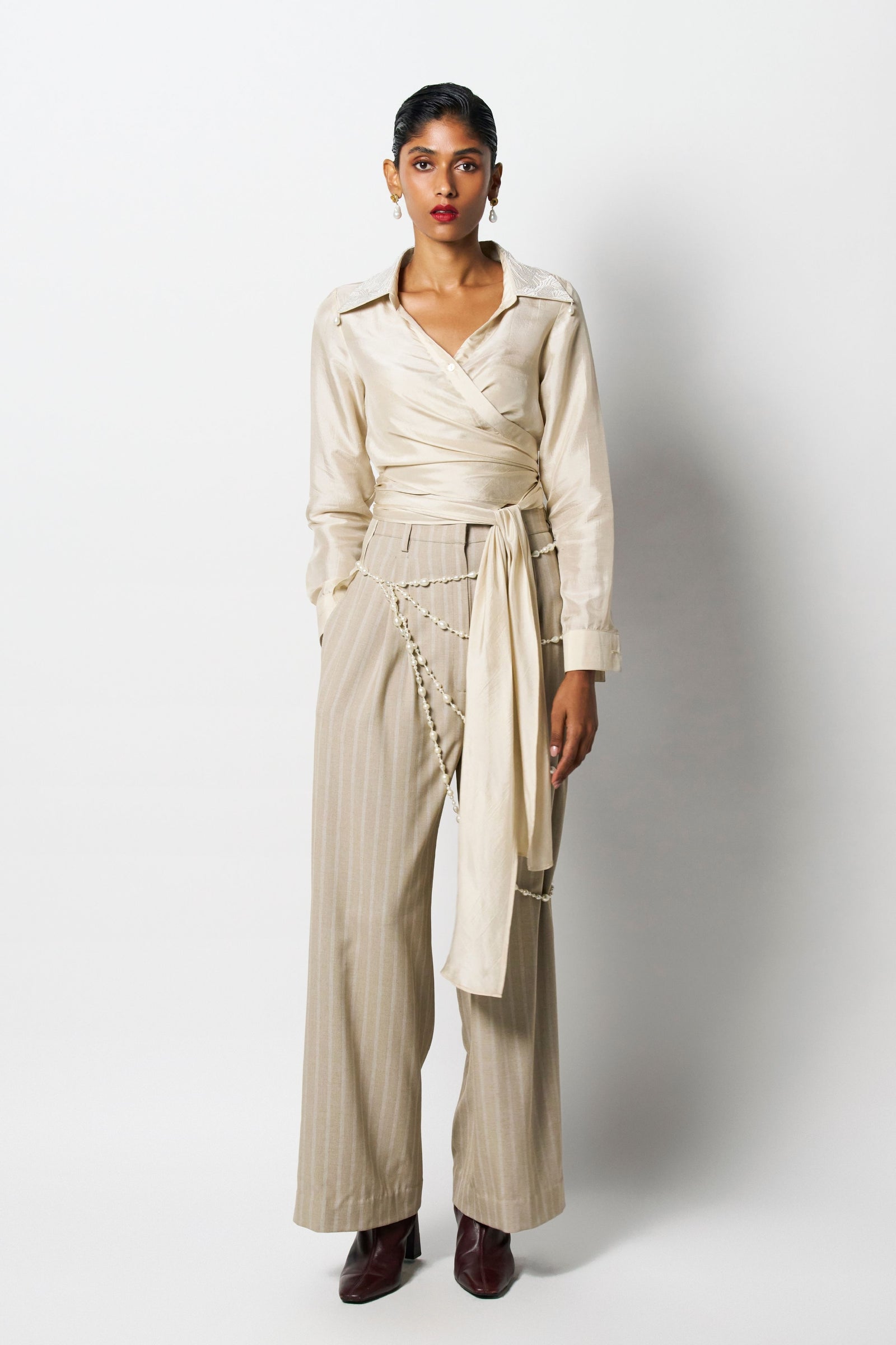 Care: Dry Clean Only. As garments are handmade and handwoven, natural variations in colours and weaves are a characteristic of the textile, and may be found in the finished garments as well.