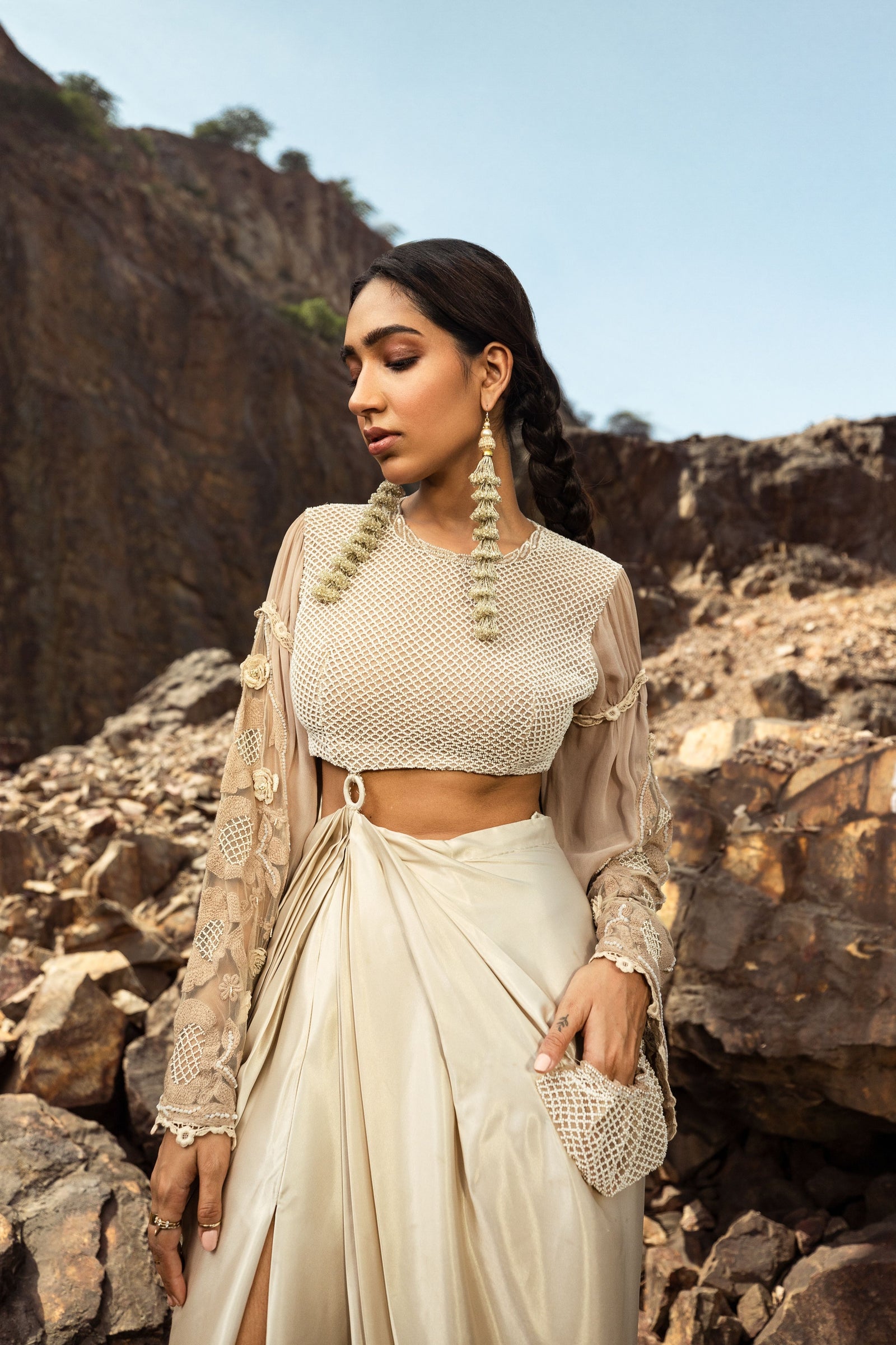 Care: Dry Clean Only. As garments are handmade and handwoven, natural variations in colours and weaves are a characteristic of the textile, and may be found in the finished garments as well.