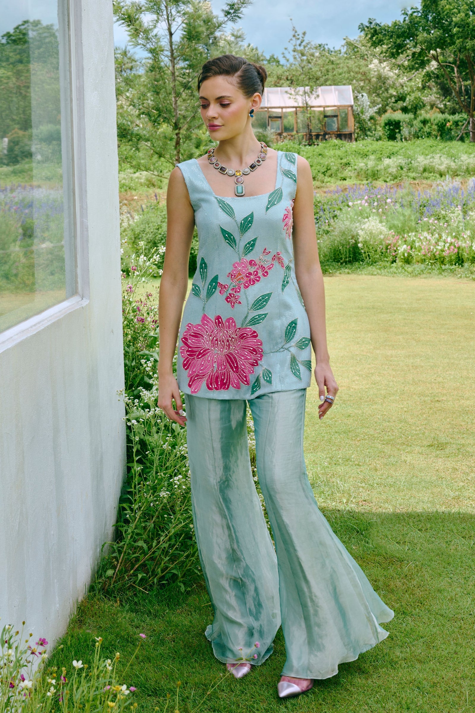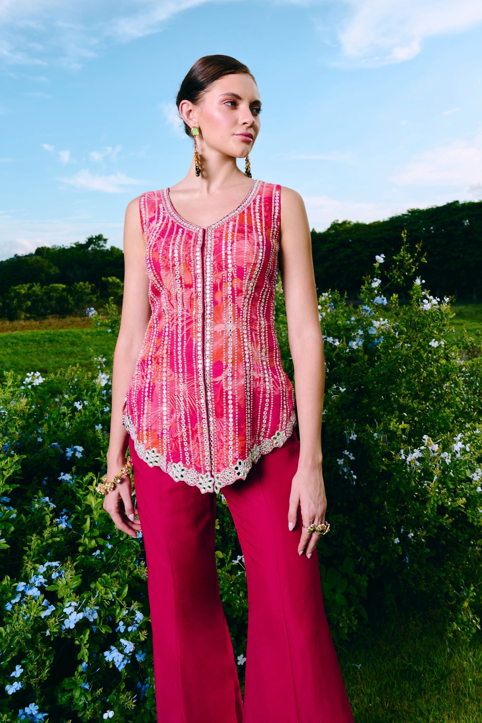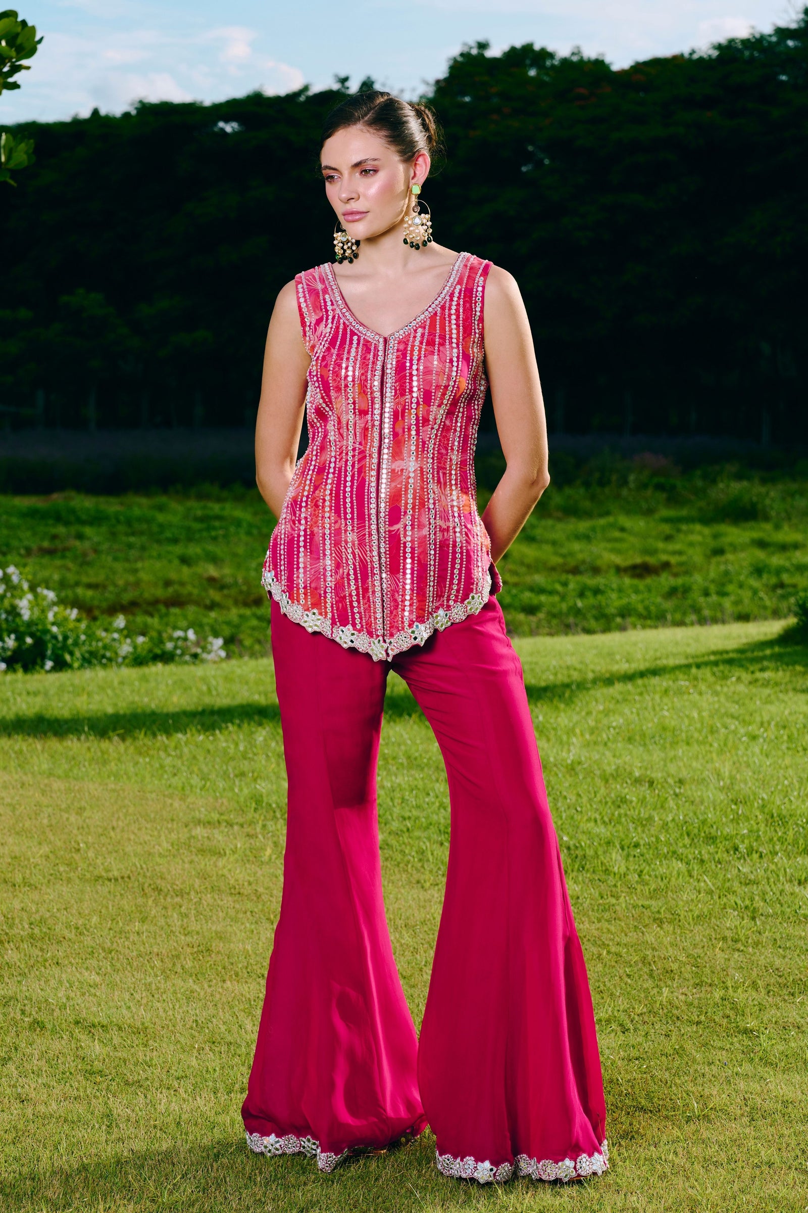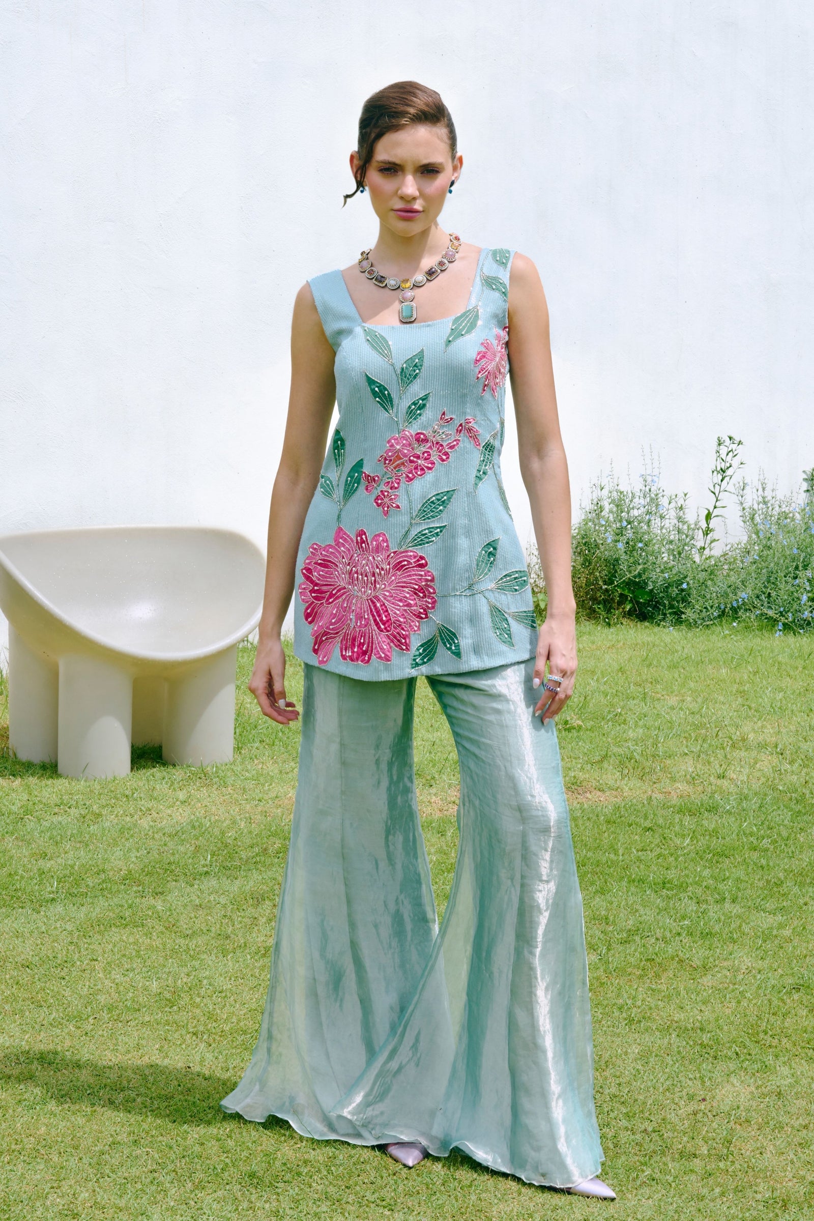 • Fabric: Organza (Saree and Cape), Silk (Blouse)