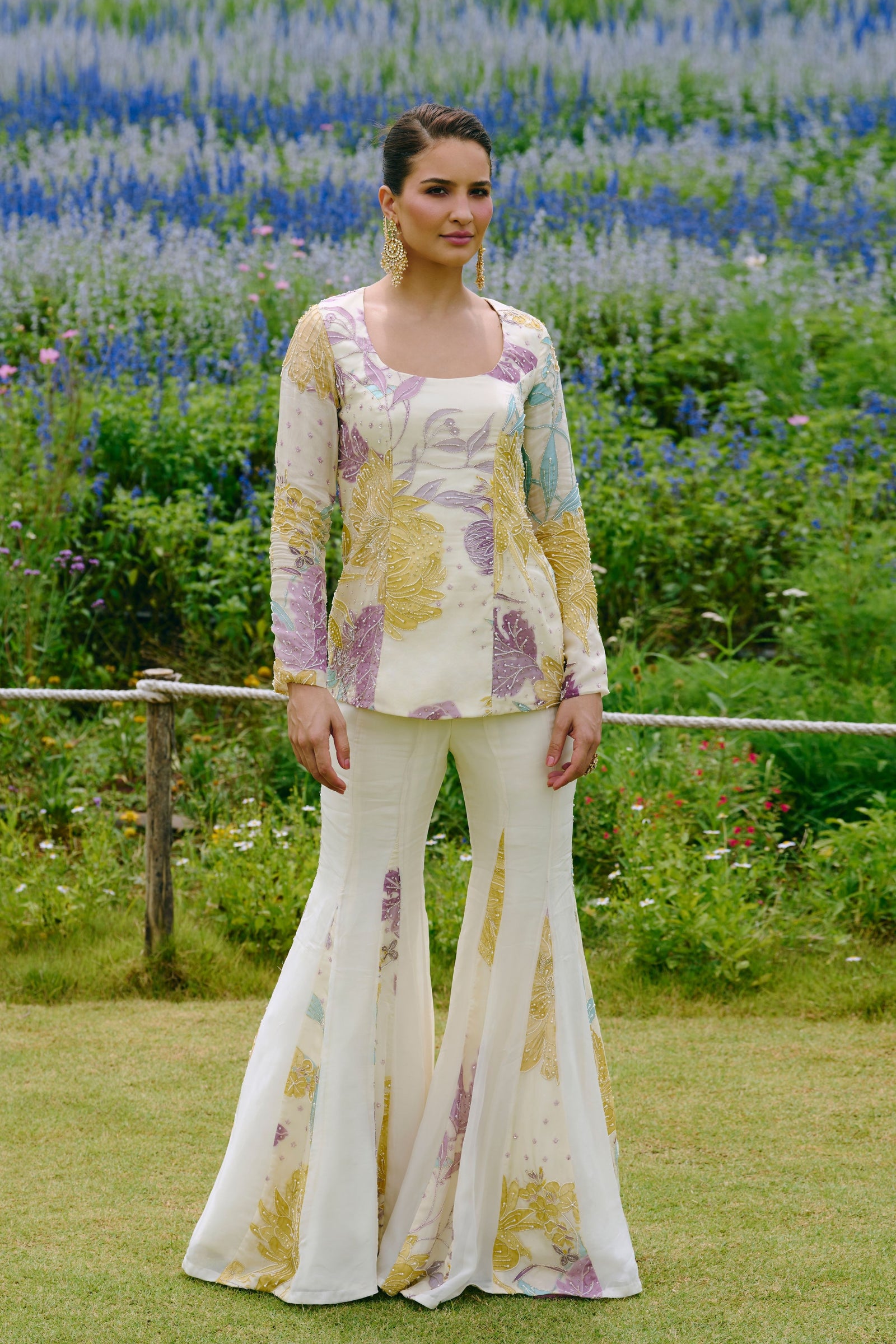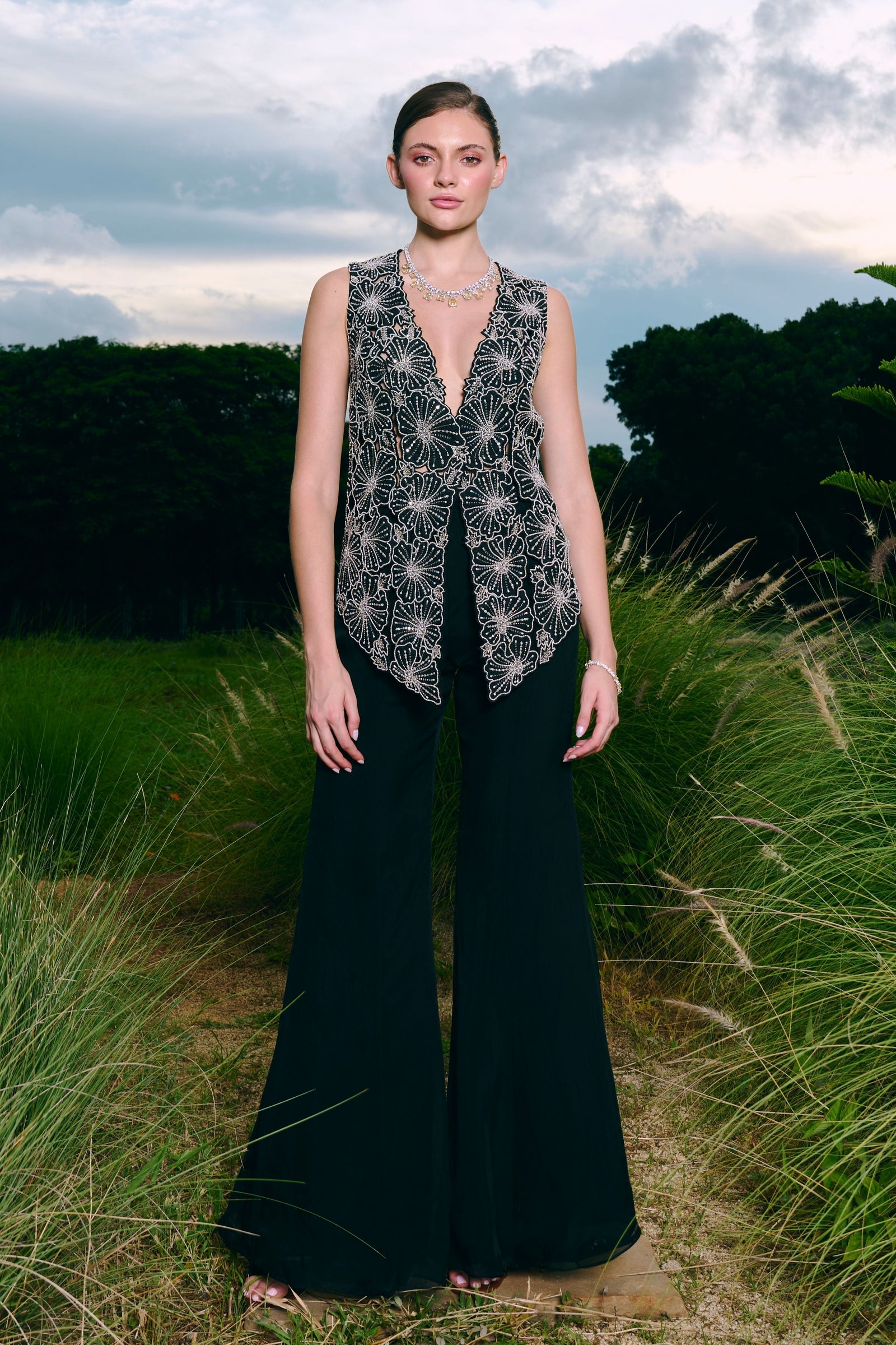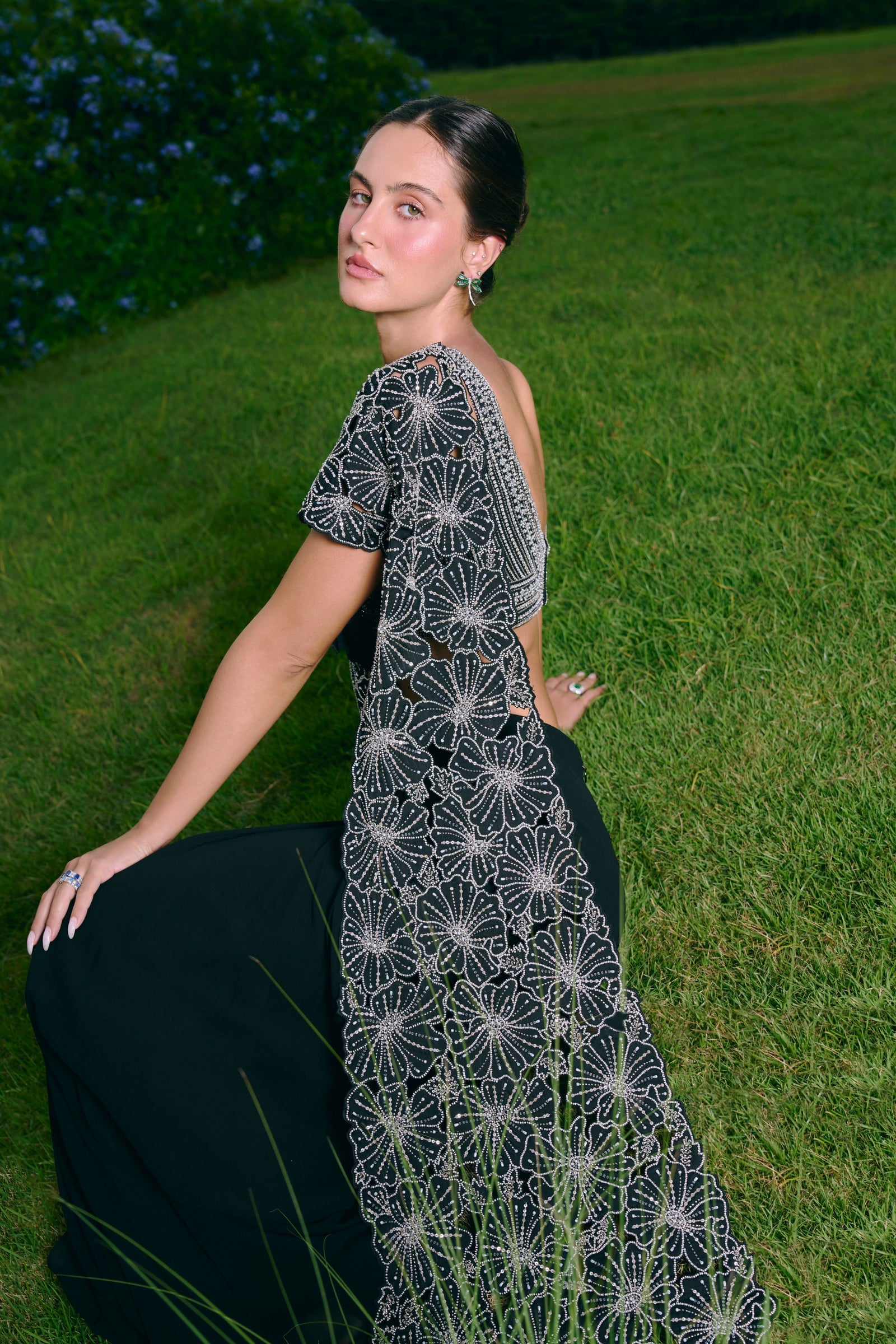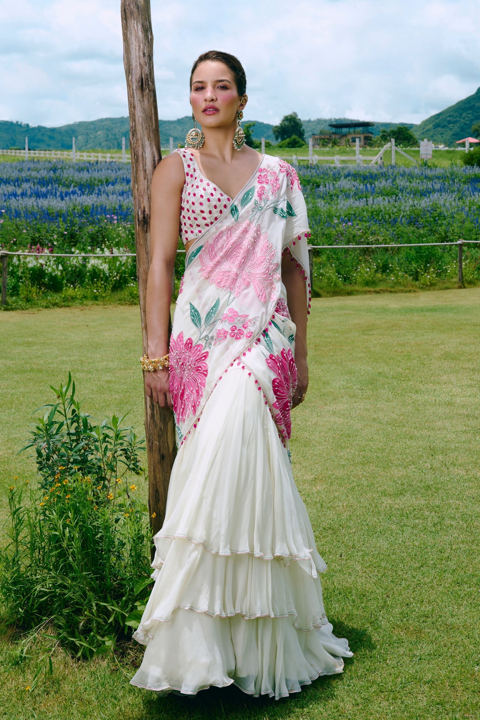 • Gap Circle Embroidered Flap Saree And Blouse Paired With Gap Circle Embroidered Cape