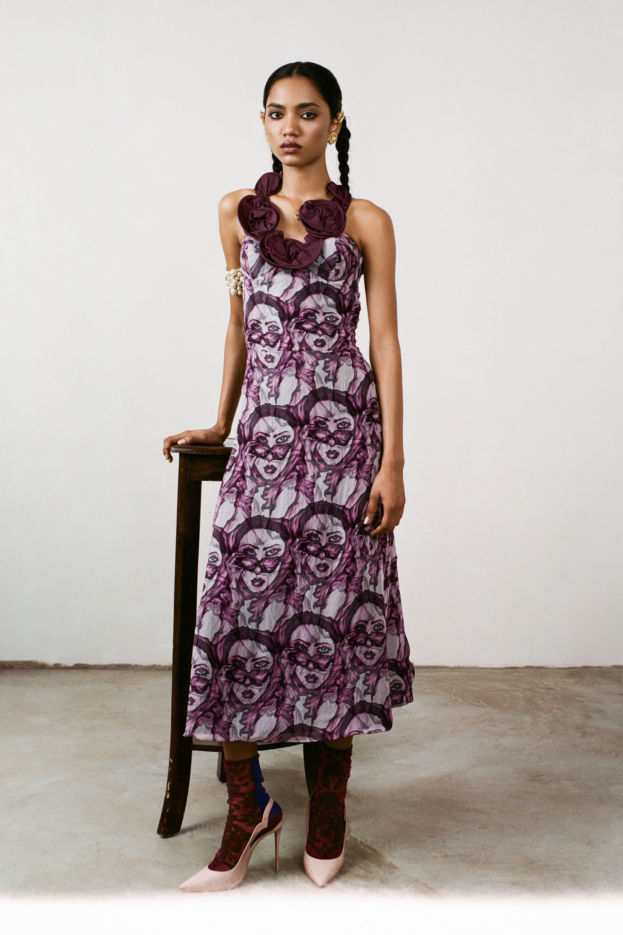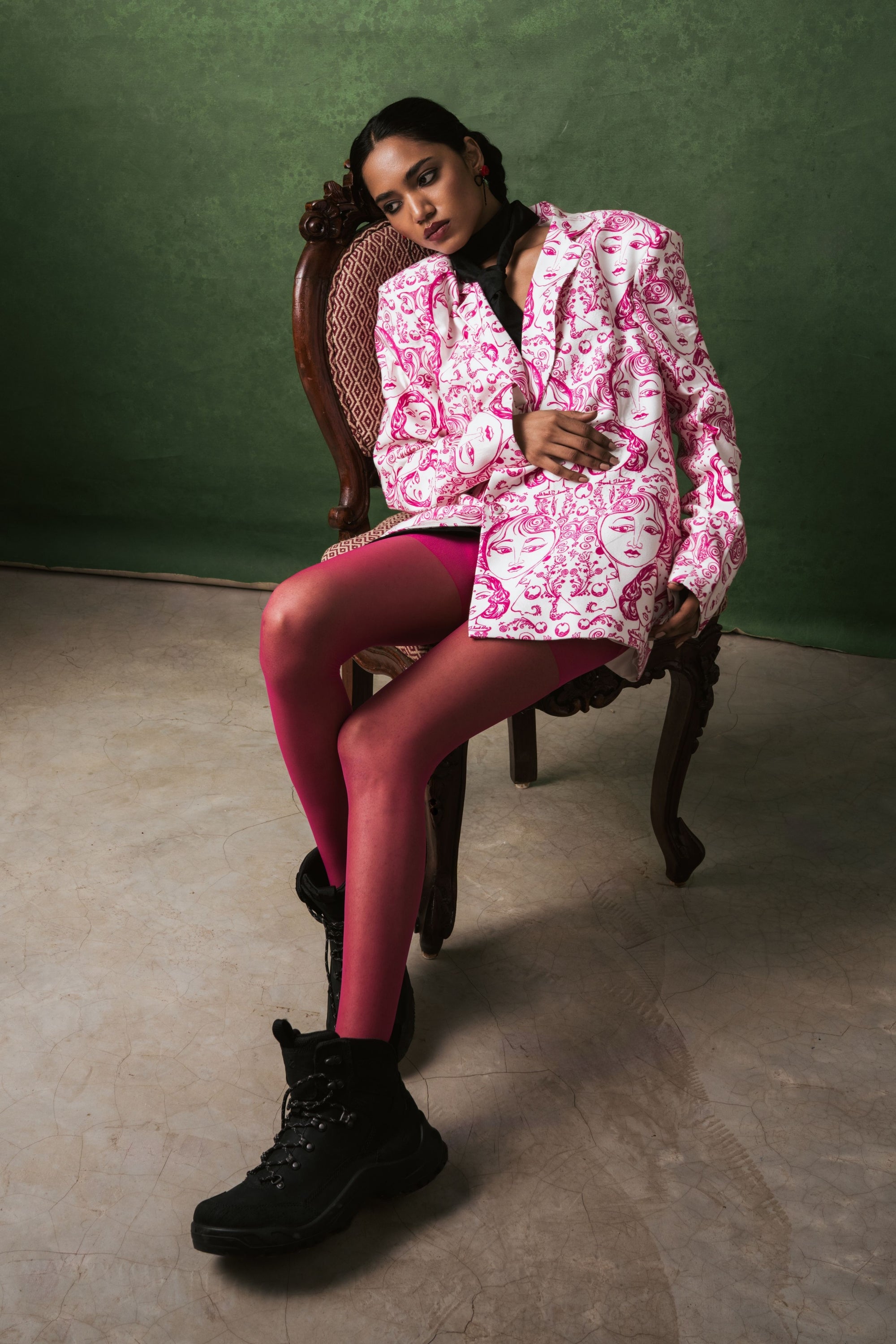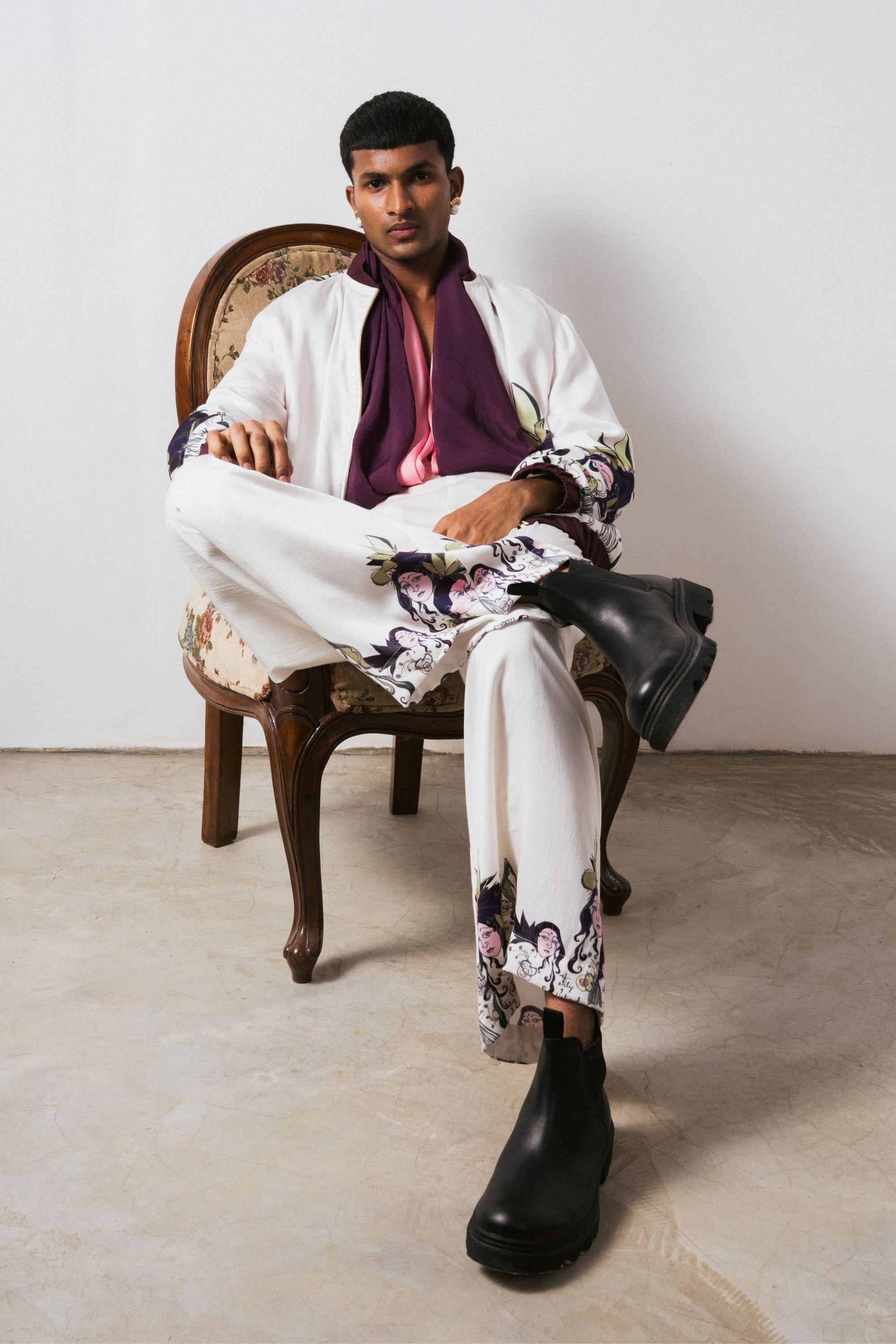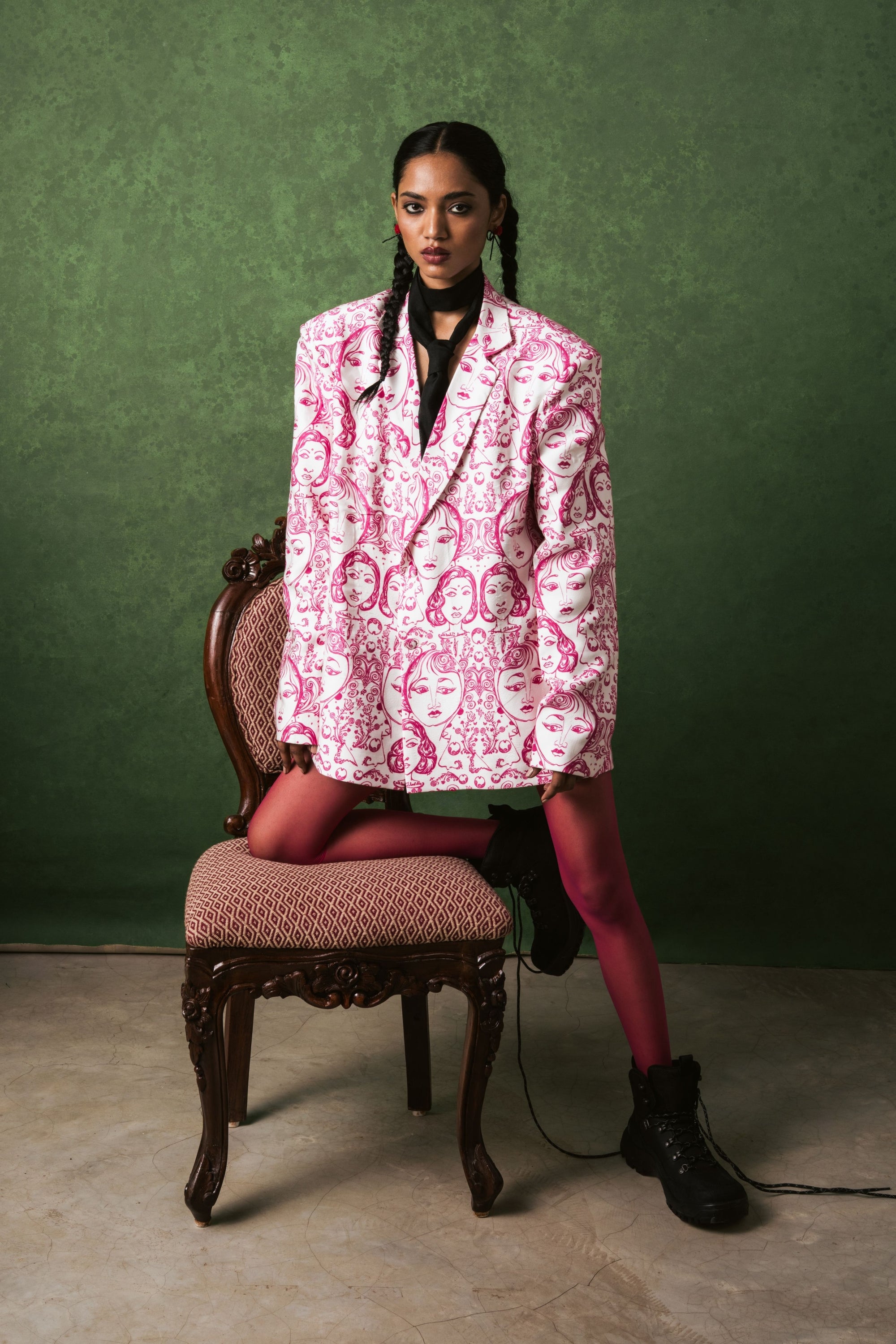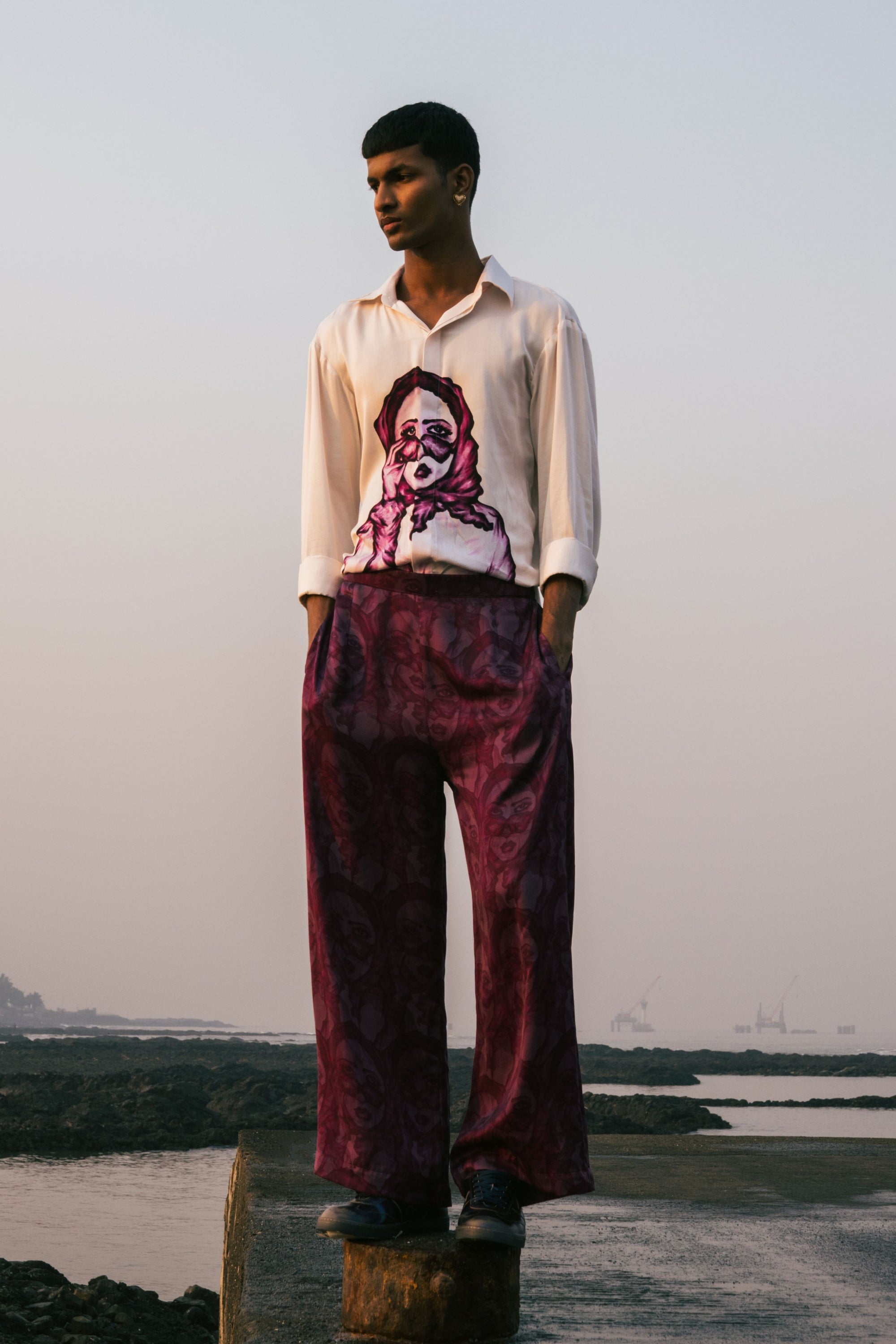 • The 'Kinni Sonni Sharara' is a printed sharara from the WG wearable art line. Originally created as a wall mural titled "Rekha hits Refresh" which includes specialized typography by artist Whencut Goddamn, printed on Linen Satin Fabric.