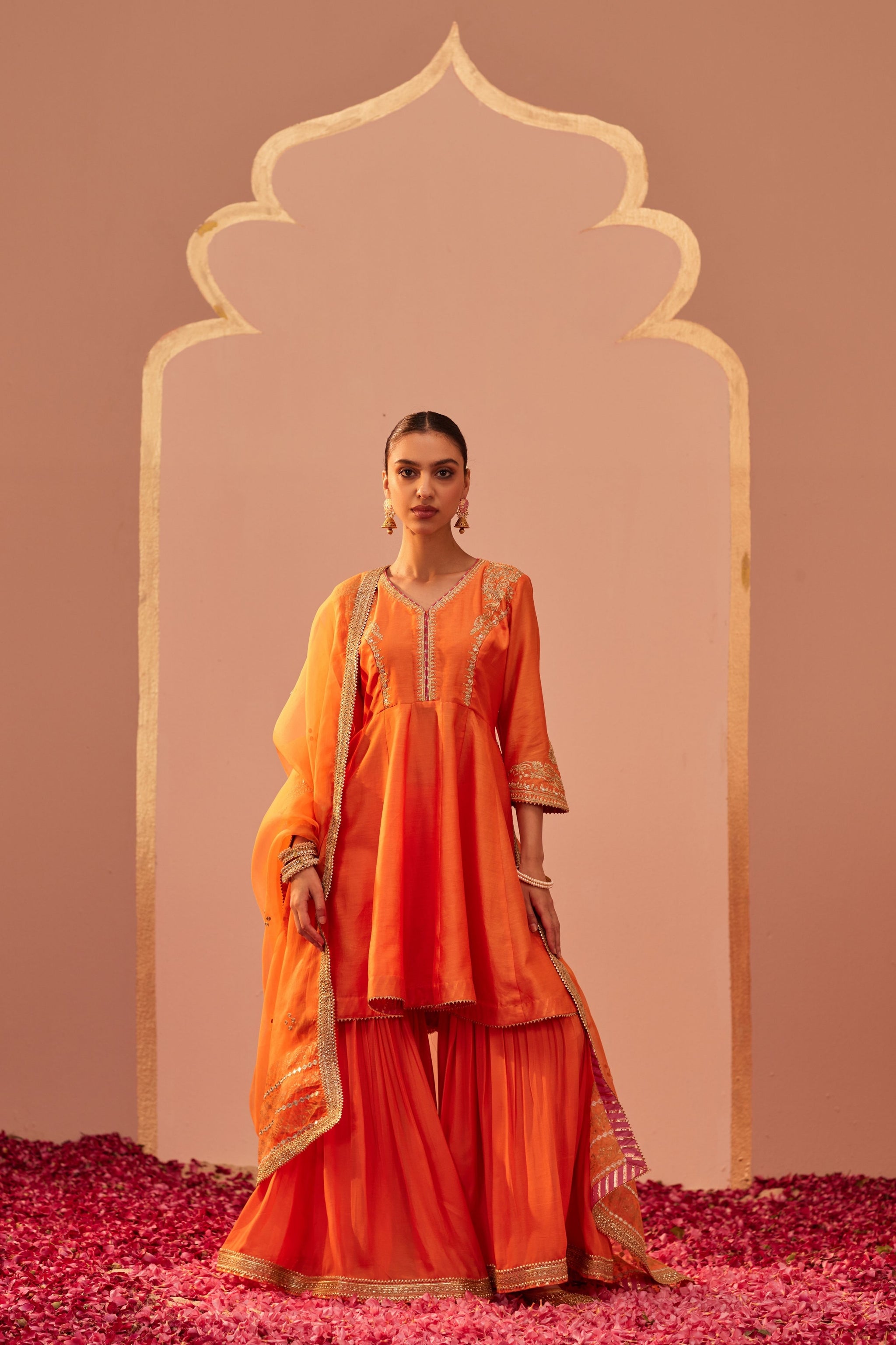 • Fabric: Kurta - Silk Chanderi, Sarara - Georgette, Dupatta - Silk Organza