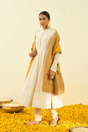 • The odhni is a masterpiece enchanced with Kashmiri tilla embroidery.