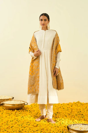 • The odhni is a masterpiece enchanced with Kashmiri tilla embroidery.