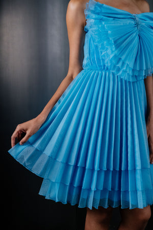 • A stunning pre-pleated cabbage dress crafted in an organza base, elevated with a fan structure on the bodice and 3d gitch hand embroidery.
