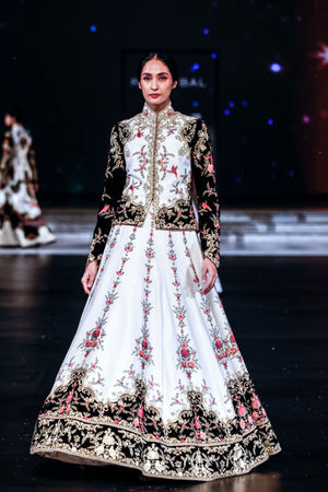 • Elegantly crafted by renowned designer rohit bal, this chanderi lehenga showcases a beautiful blend of machine and hand embroidery. The intricate detailing adds a touch of traditional charm to this contemporary piece, making it perfect for special occasions. The soft chanderi fabric ensures comfort, while the exquisite craftsmanship reflects rohit bal's signature style. A must-have addition to your festive wardrobe!