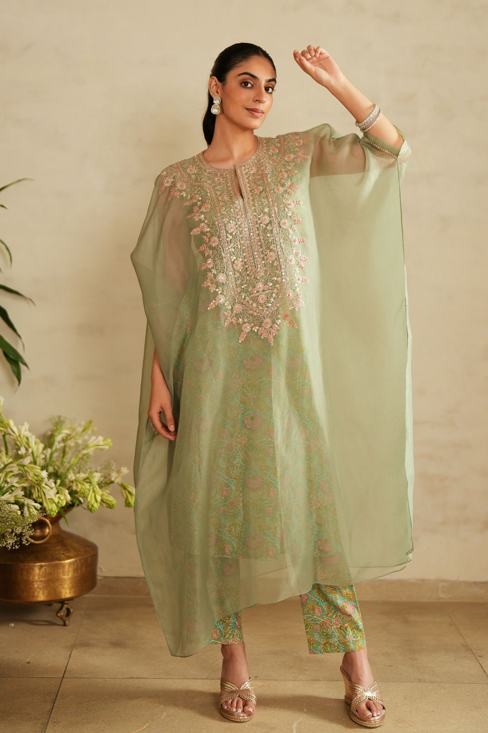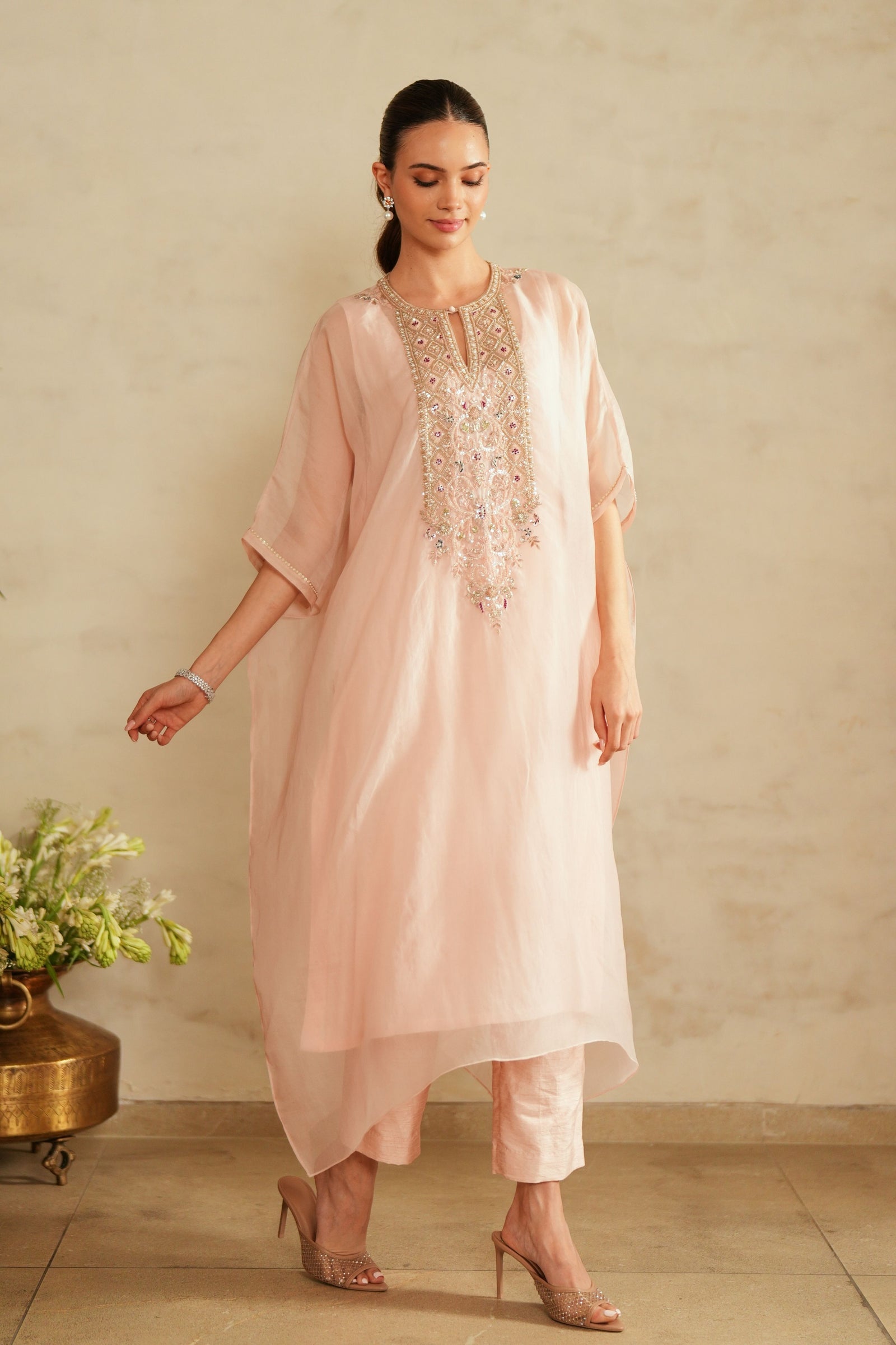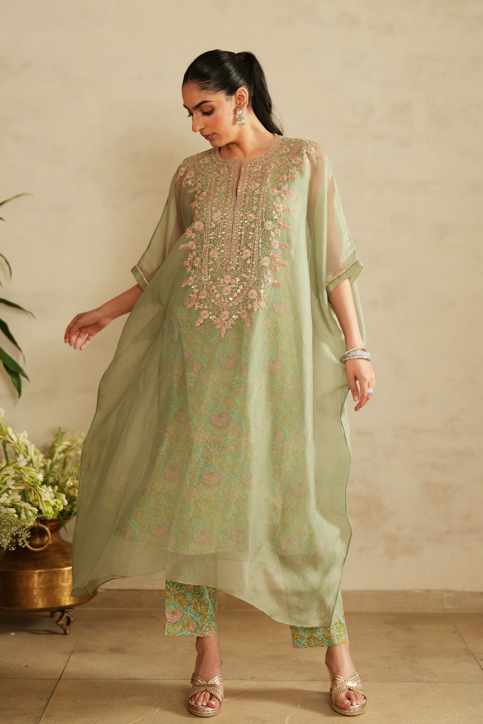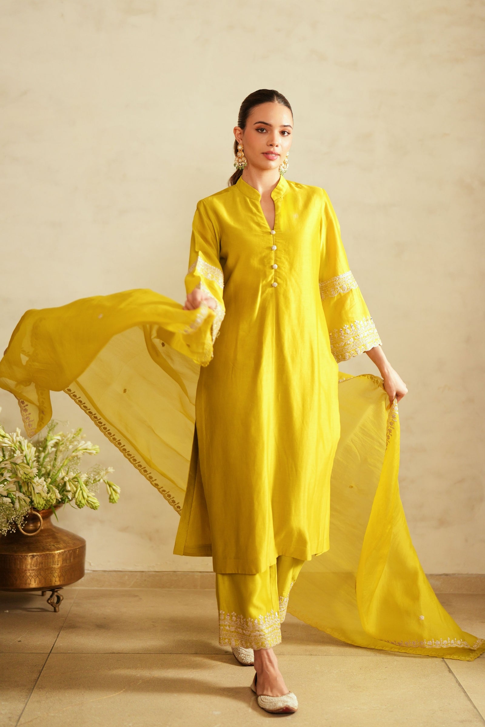 • A fully embroidered shirt is paired with salwar,featuring subtle tone-on-tone embroidery. The ensemble is completed with a dupatta adorned with intricate embroidered border detailing.