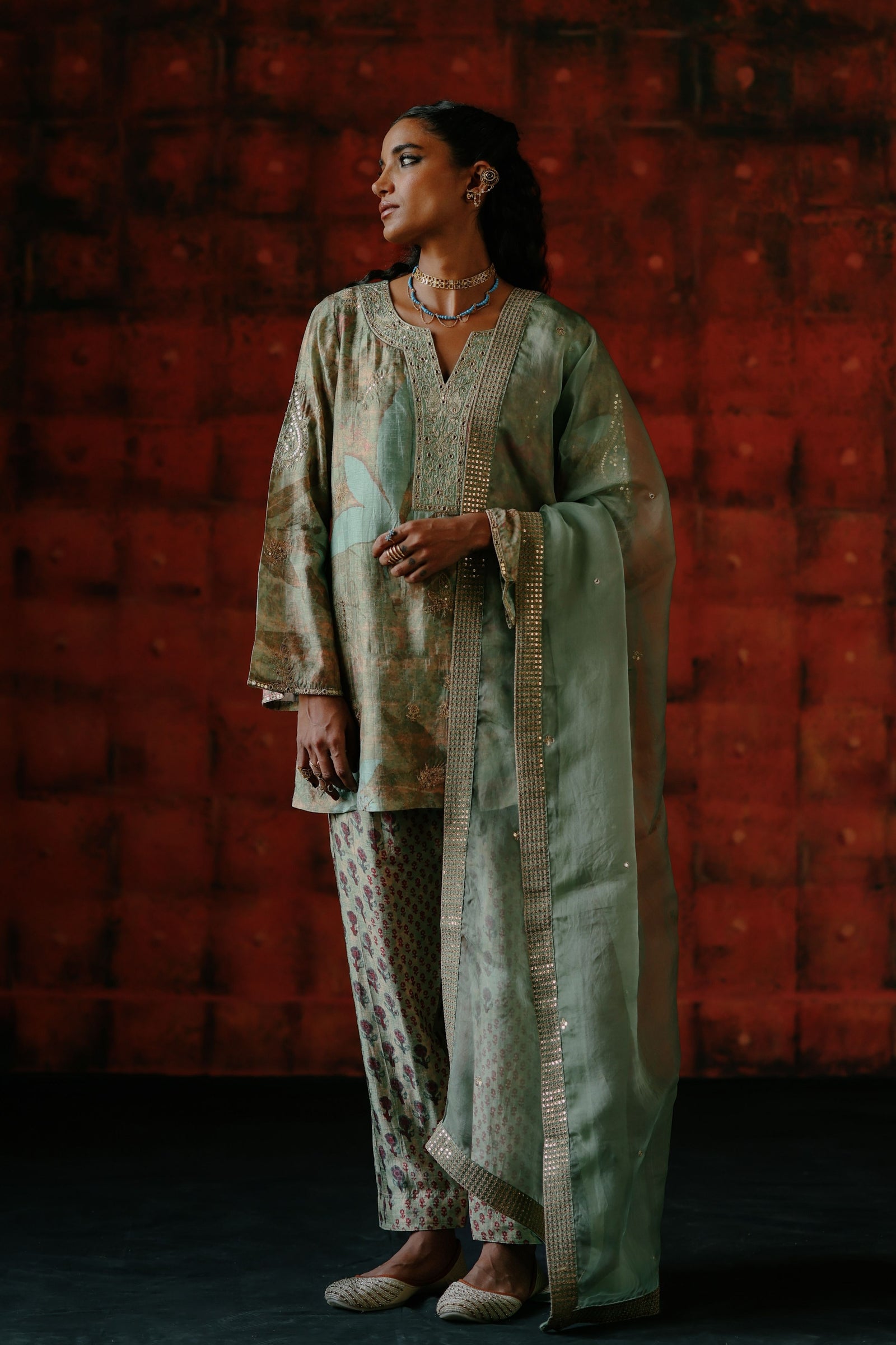 • Components: Top, Bell Bottoms, Dupatta (3)