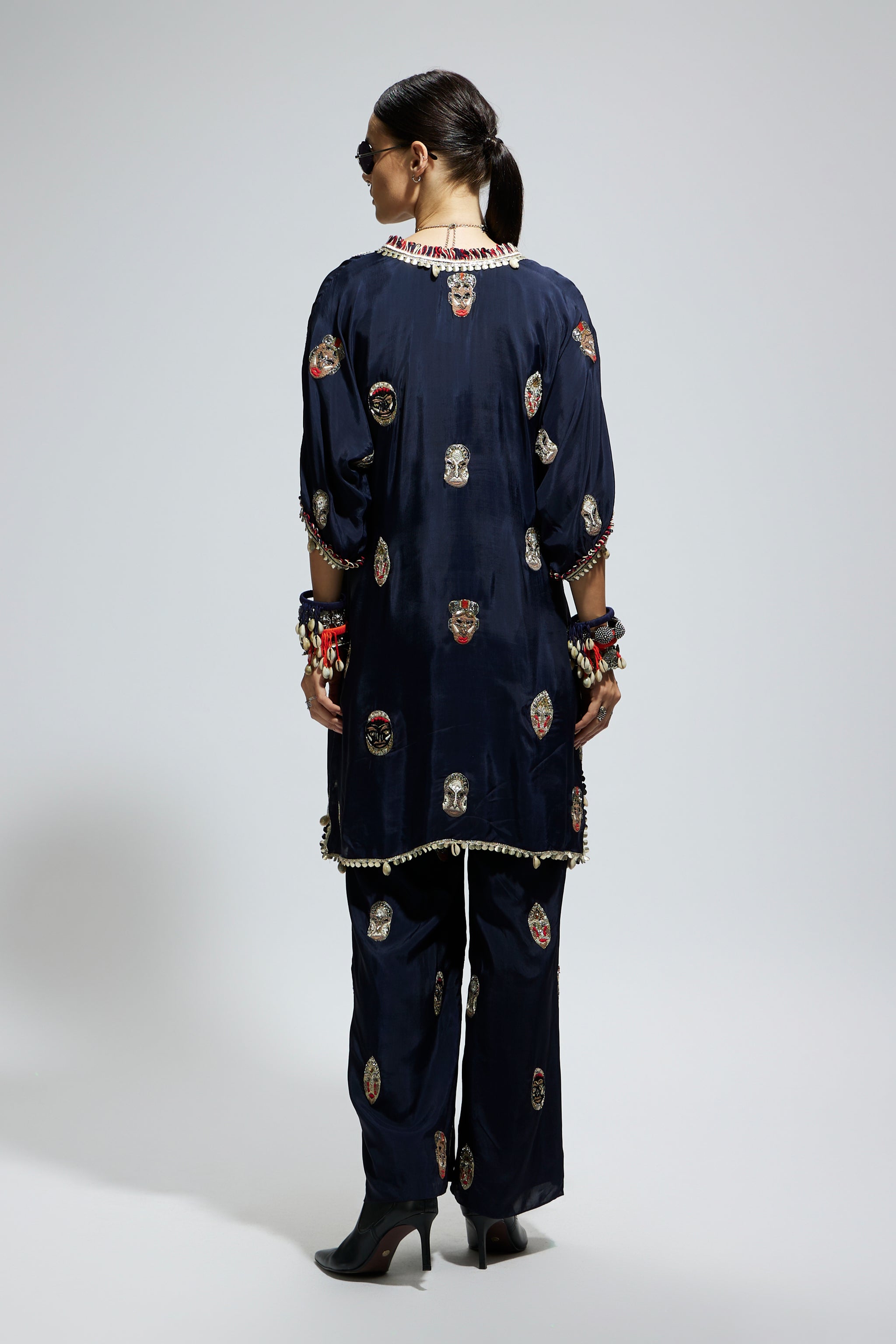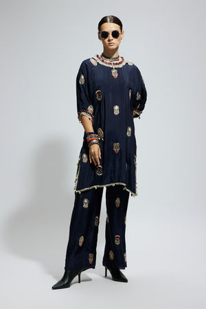 Blue Mask Embroidered Tunic Set