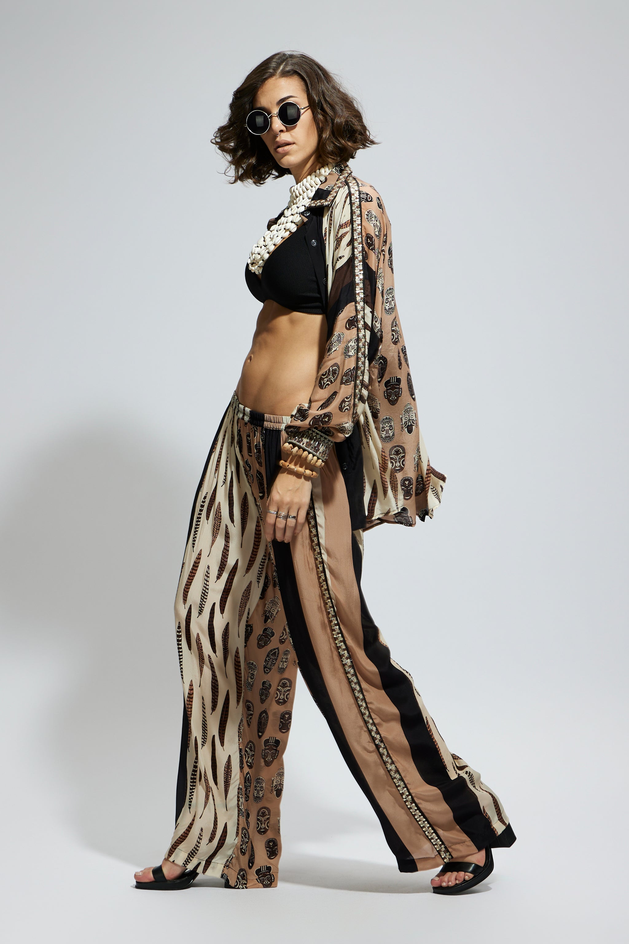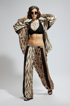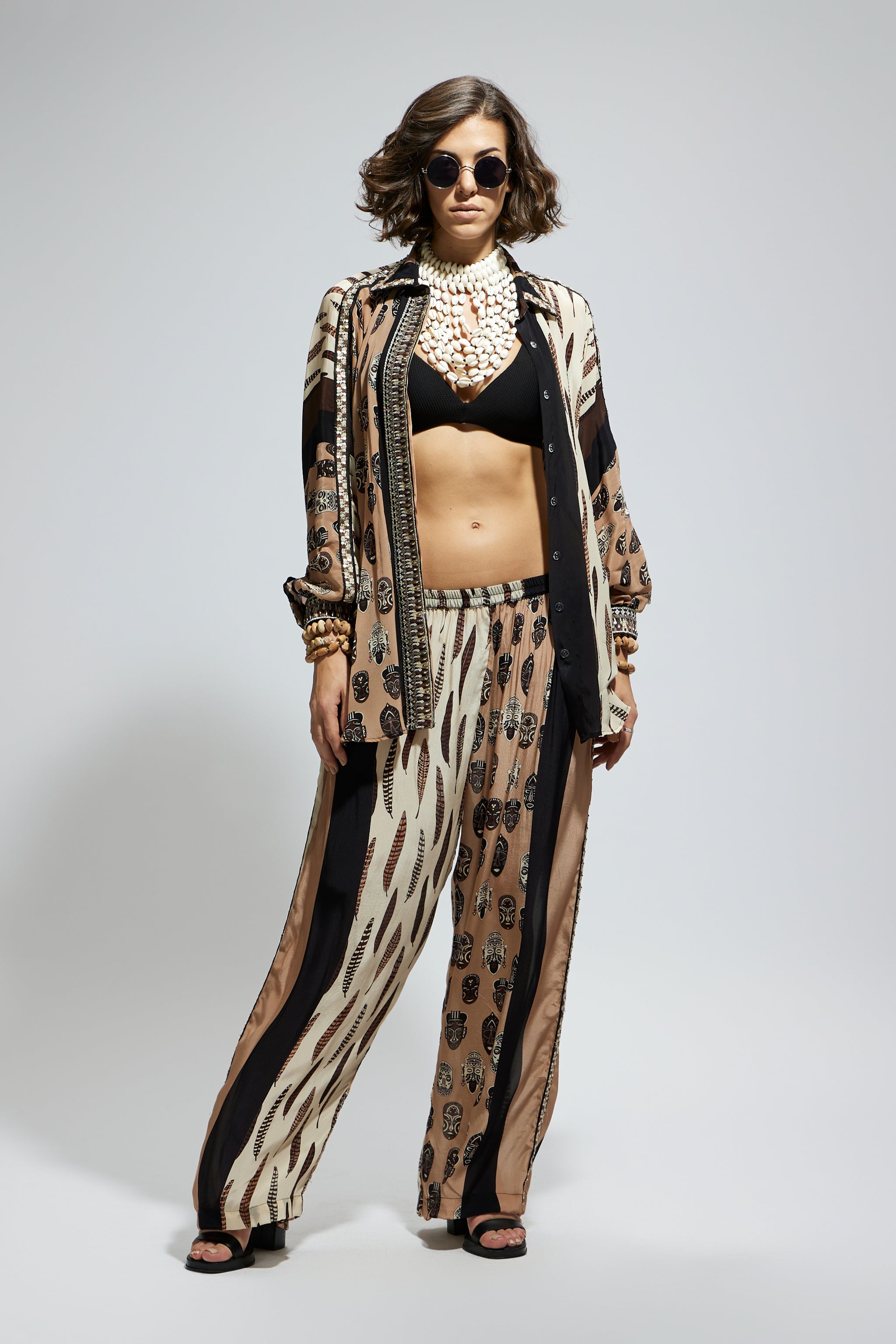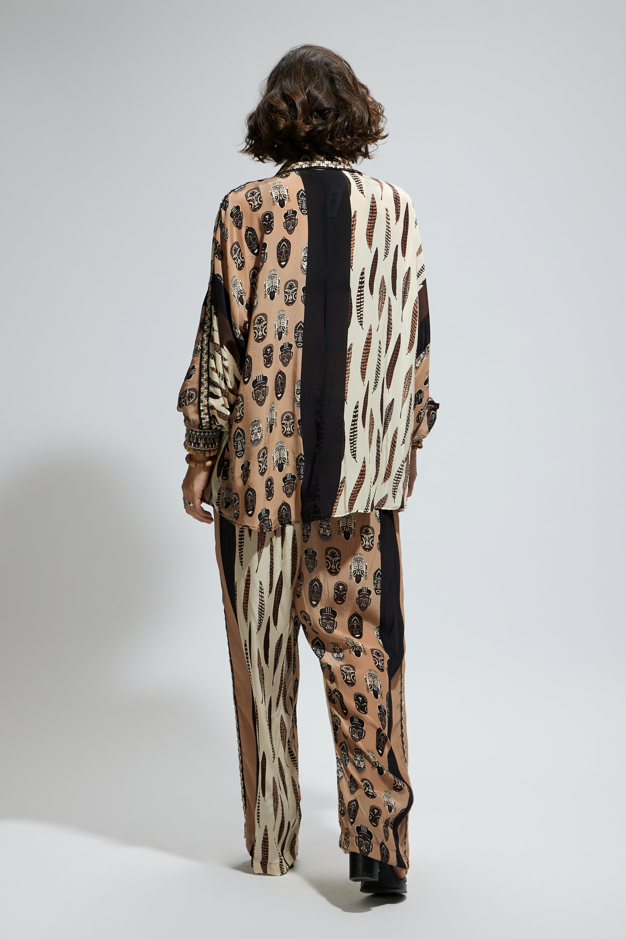 • Mask and feather print oversized coord set