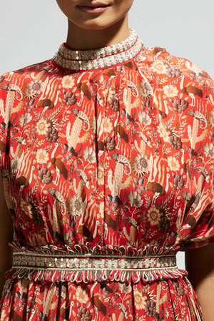 Orange Jaal Dress With Belt