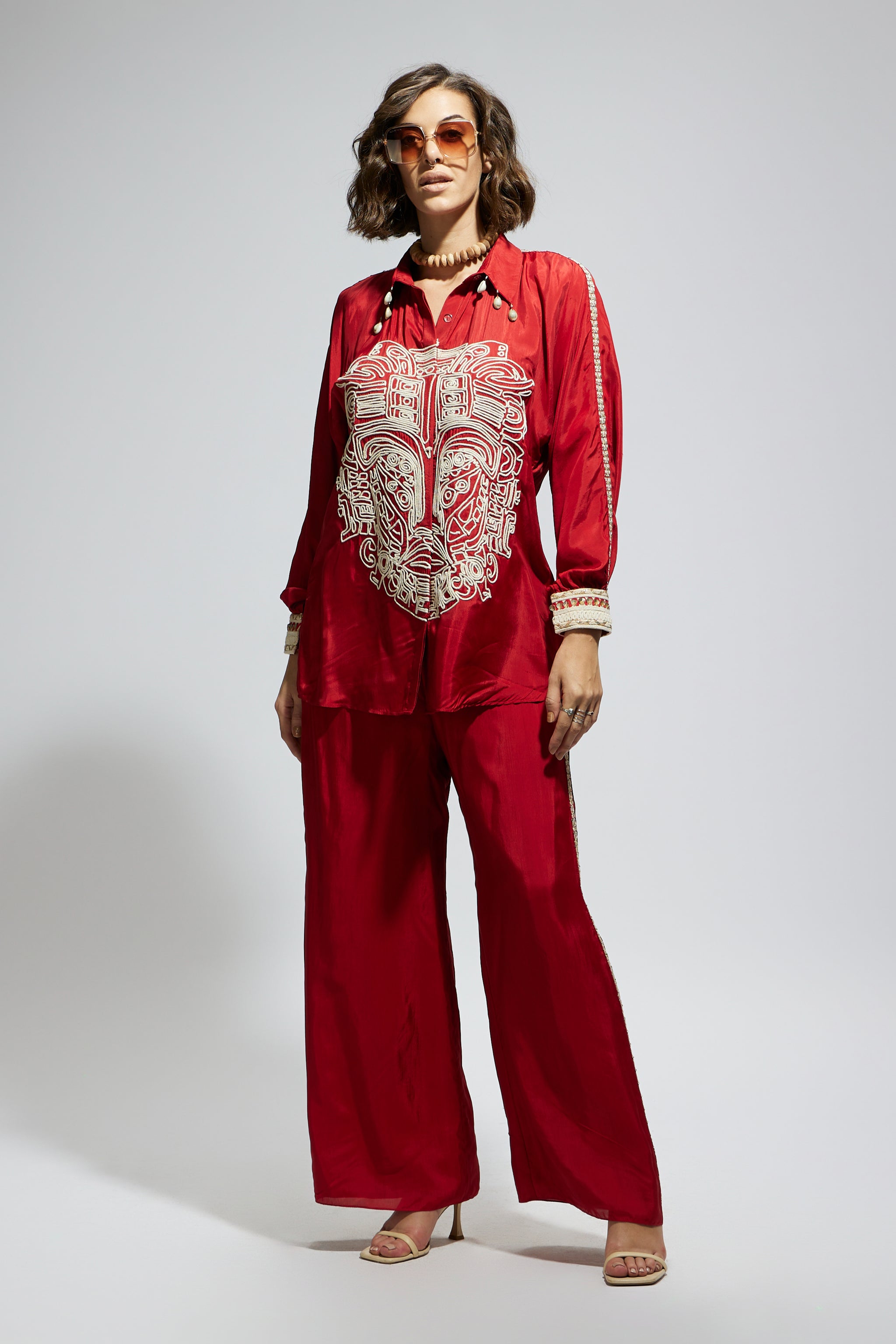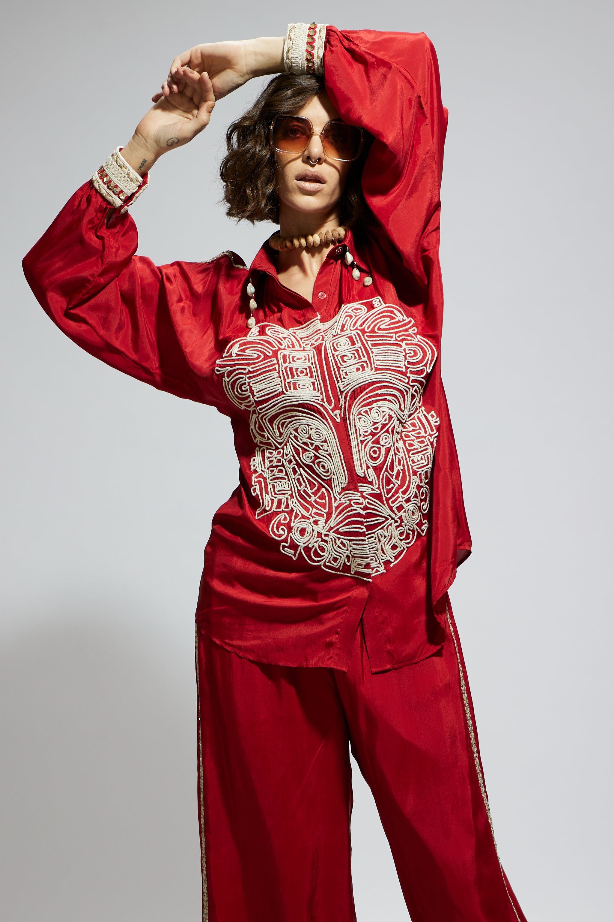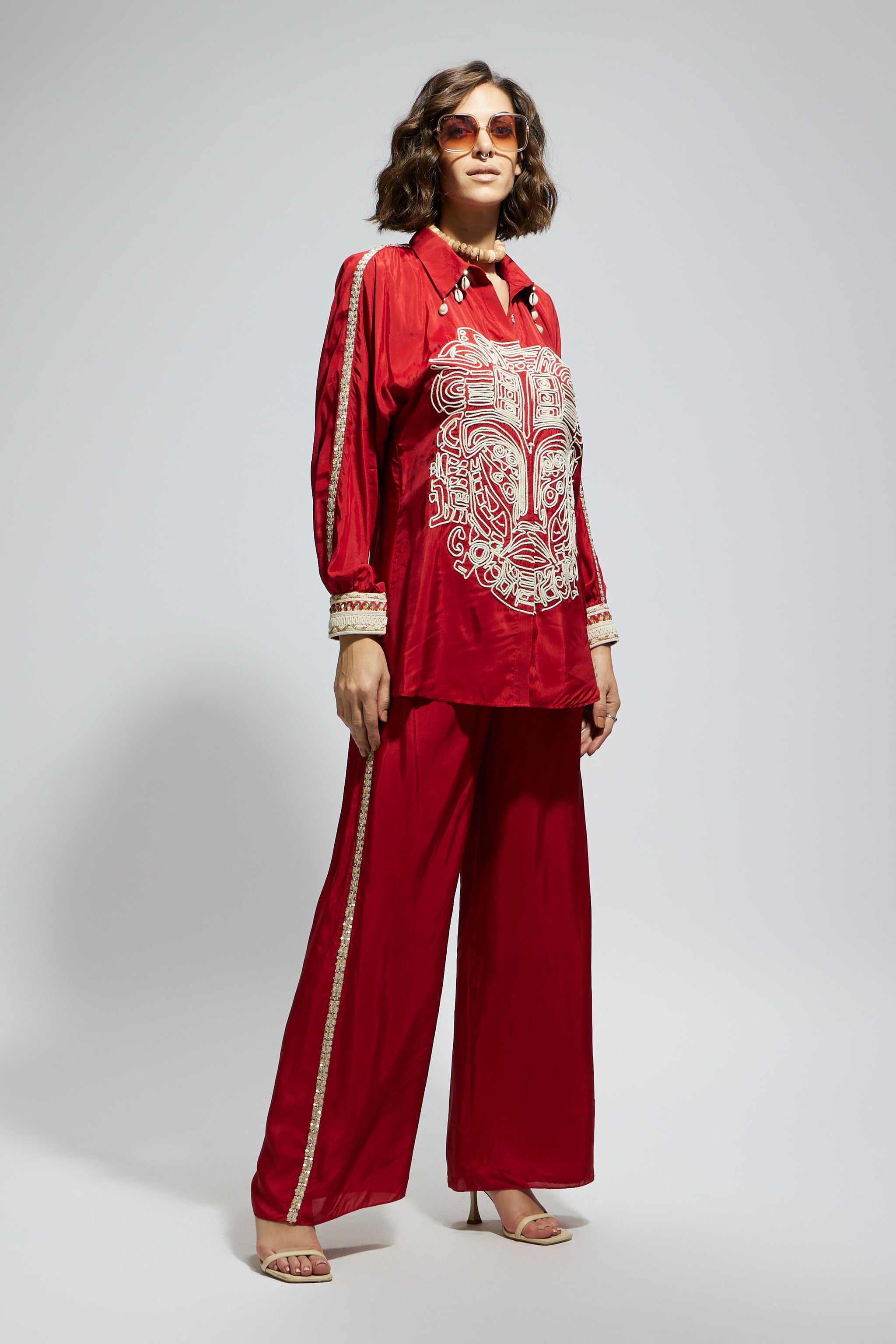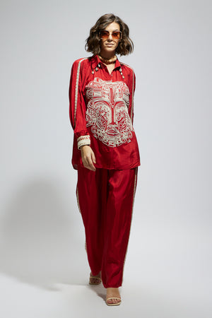 • Terracotta embellished mask oversized coord set