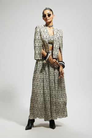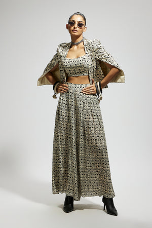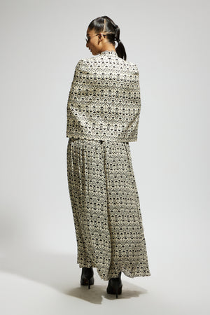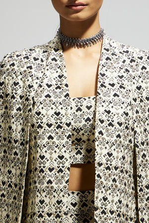 White Geo Print Cape Jacket Set