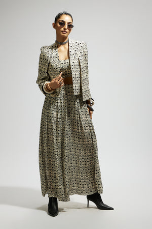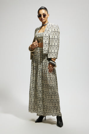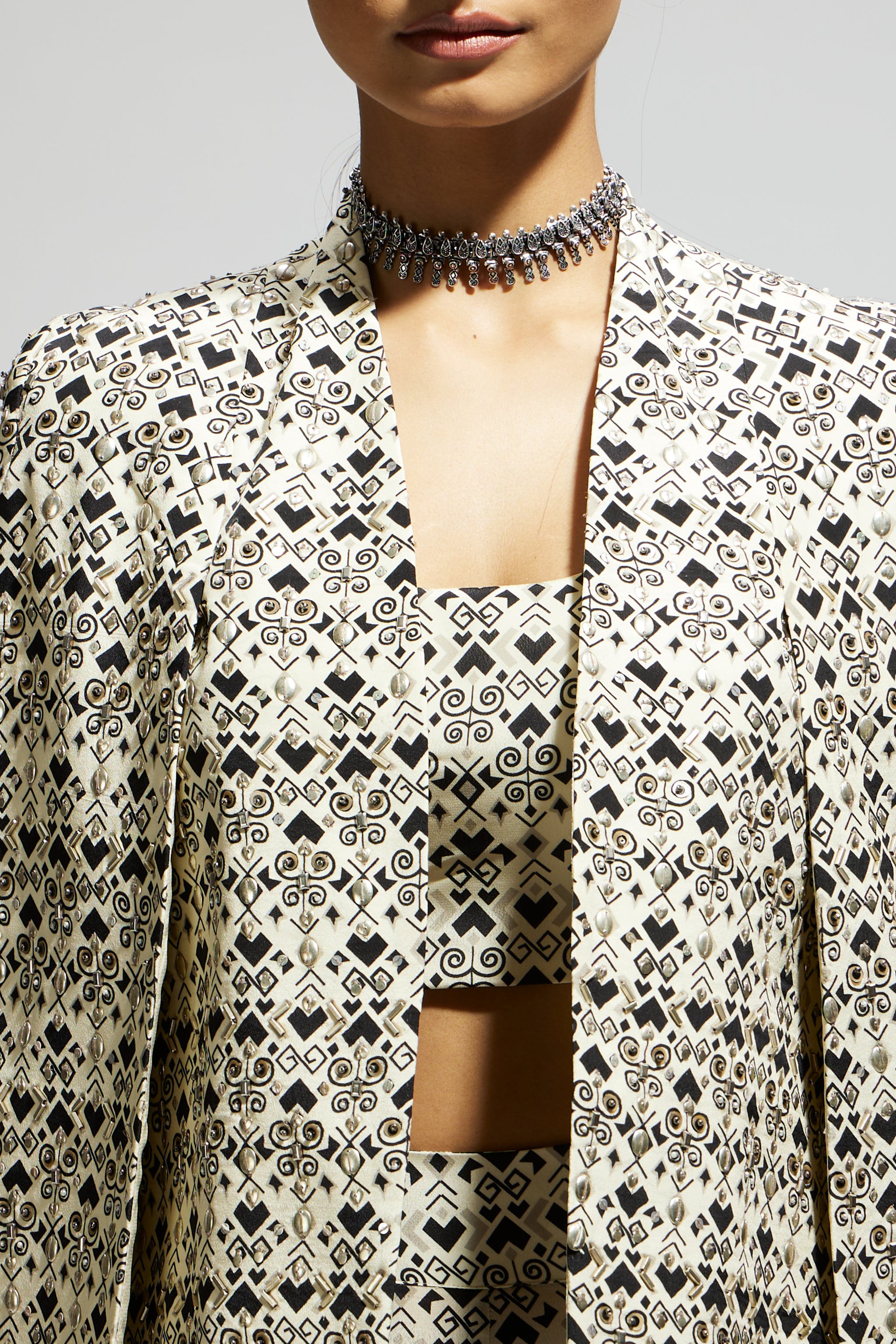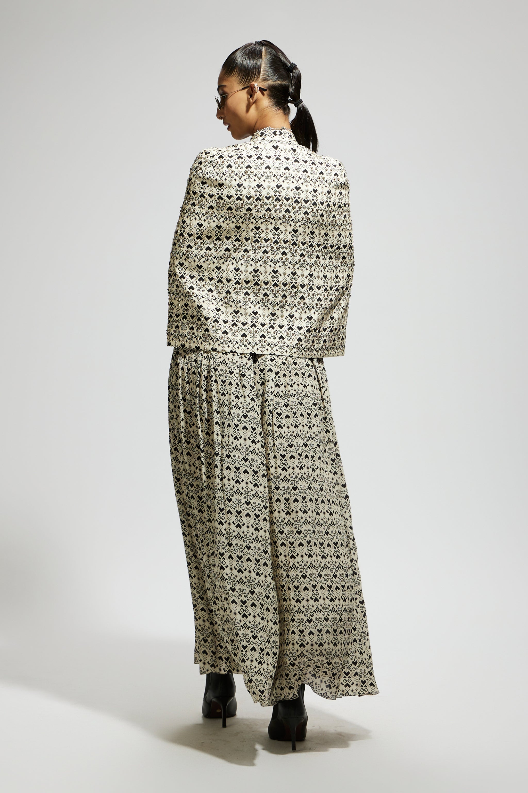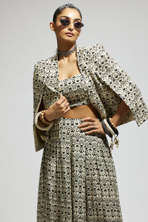 • White geo print cape jacket set
