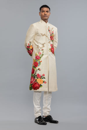 Care: Dry Clean Only. As garments are handmade and handwoven, natural variations in colours and weaves are a characteristic of the textile, and may be found in the finished garments as well.