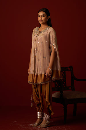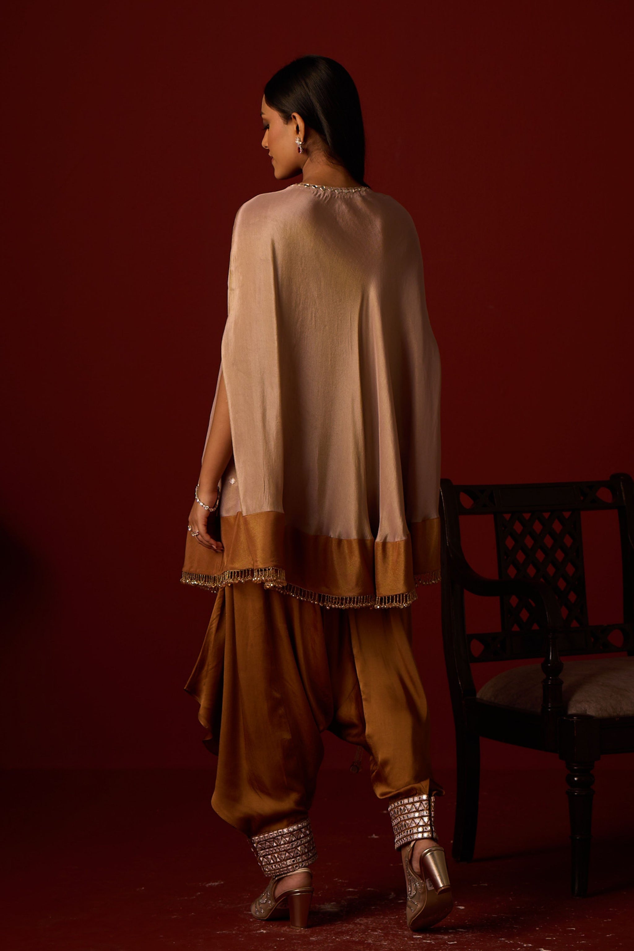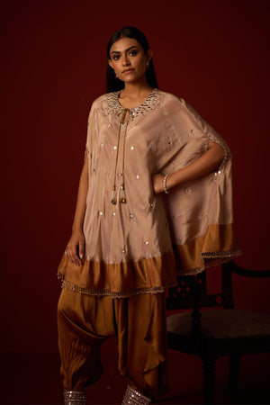 • Satin low crotch afghani dhoti pants with aari mirror work and long tassels