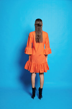Bell Sleeves Knee Length Embroidered Dress