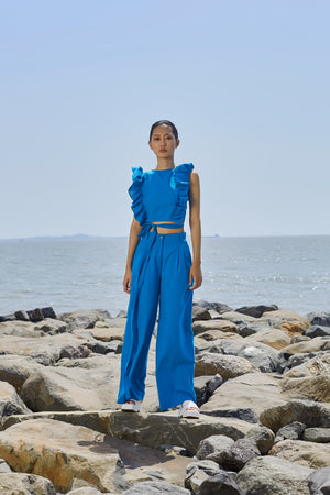 MT H-WAIST TROUSER-NA SLUB BLUE