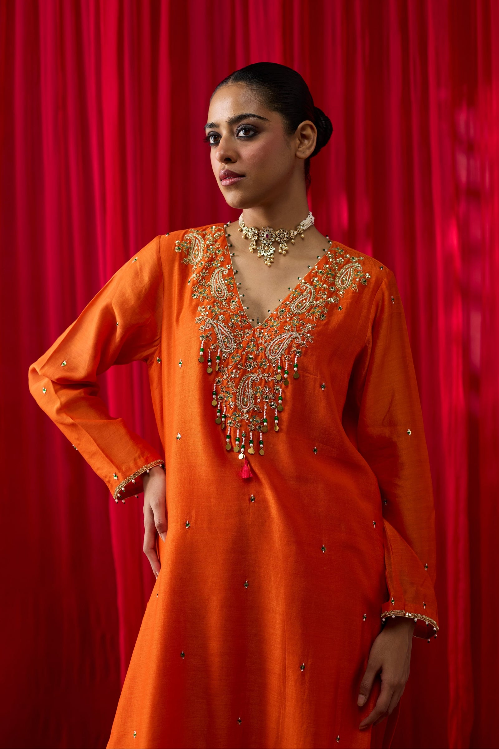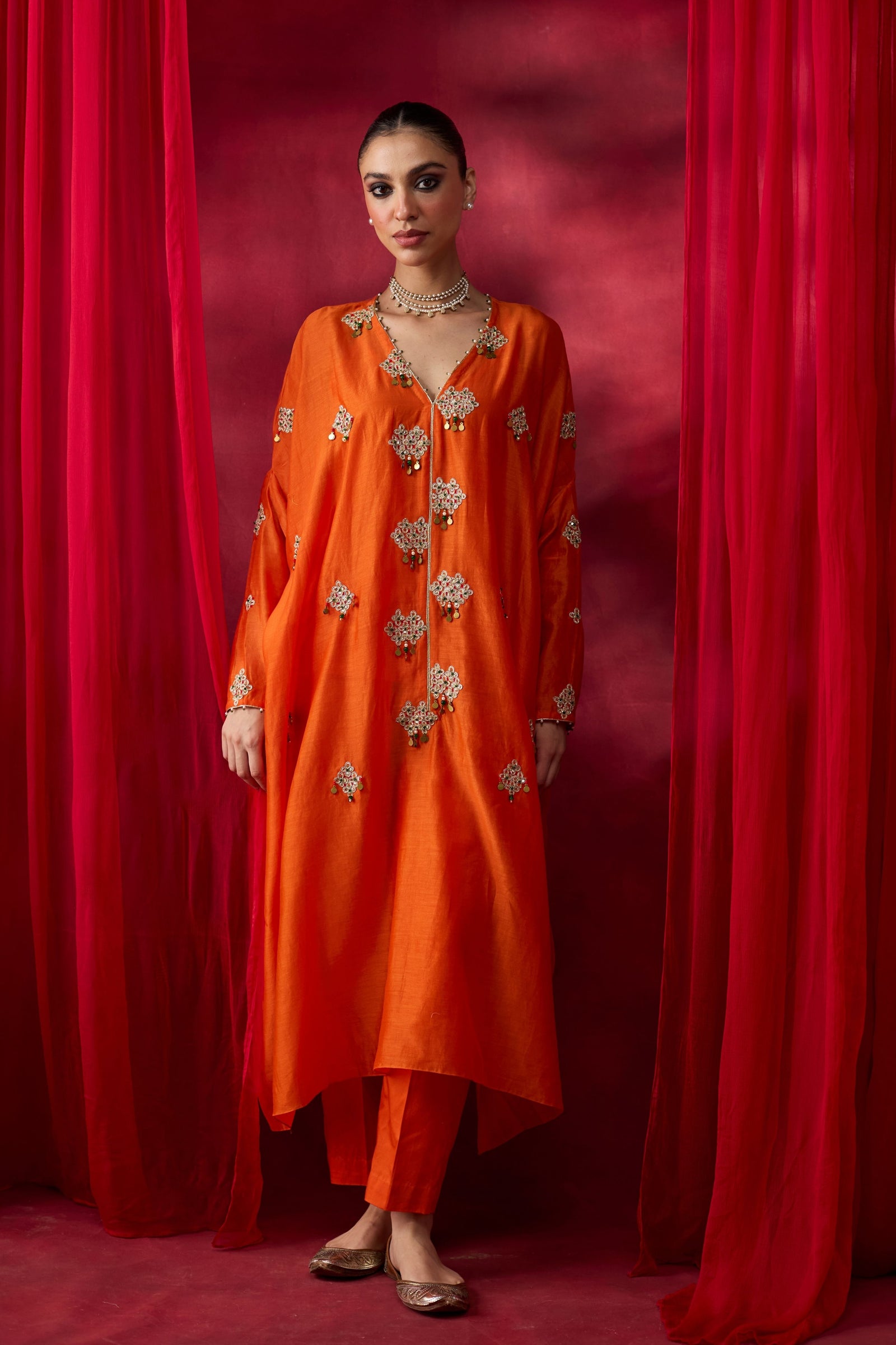 • Fabric: Tunic- Silk Chanderi, Pants- Silk Satin