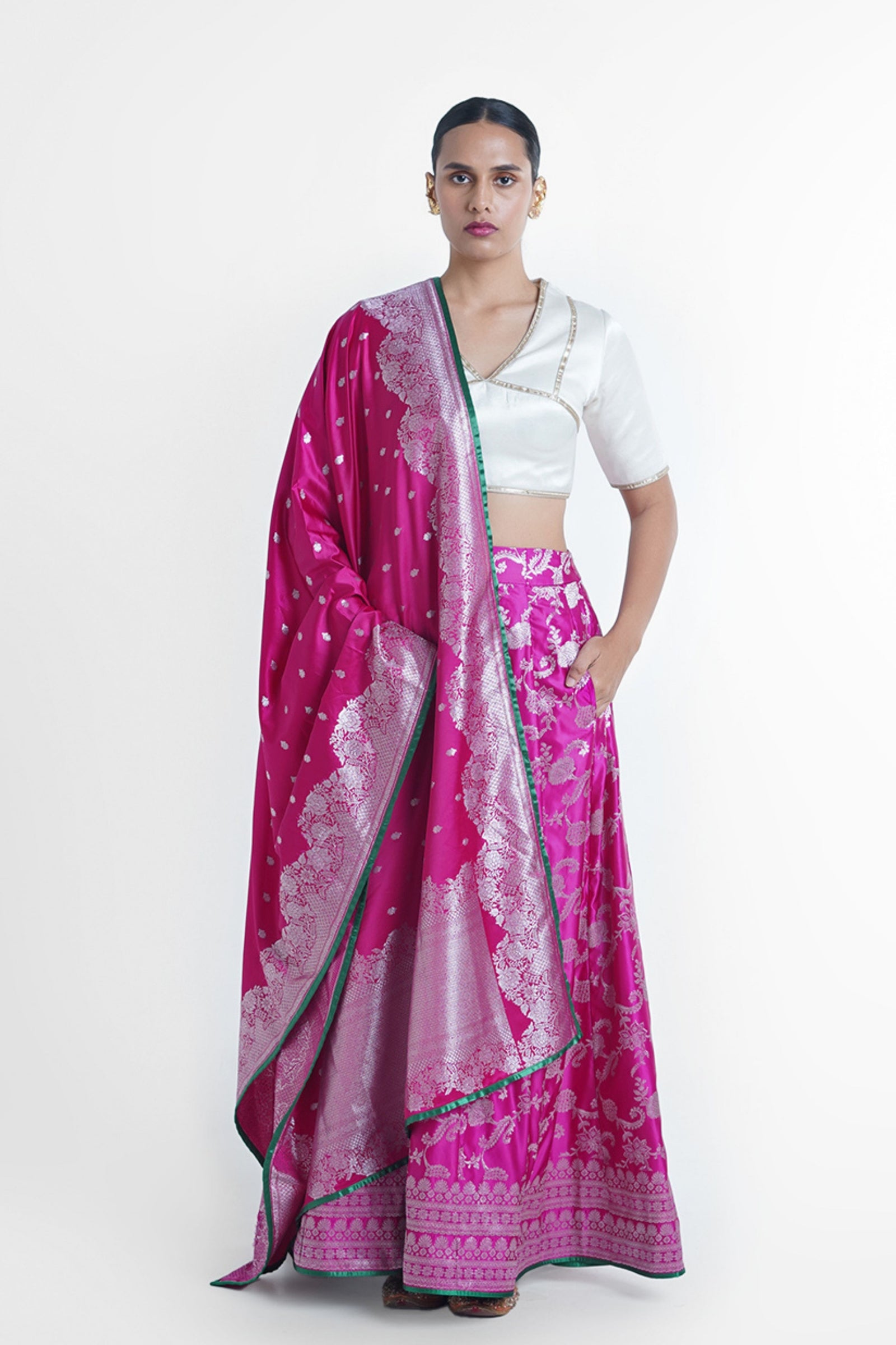 Care: Dry Clean Only. As garments are handmade and handwoven, natural variations in colours and weaves are a characteristic of the textile, and may be found in the finished garments as well.