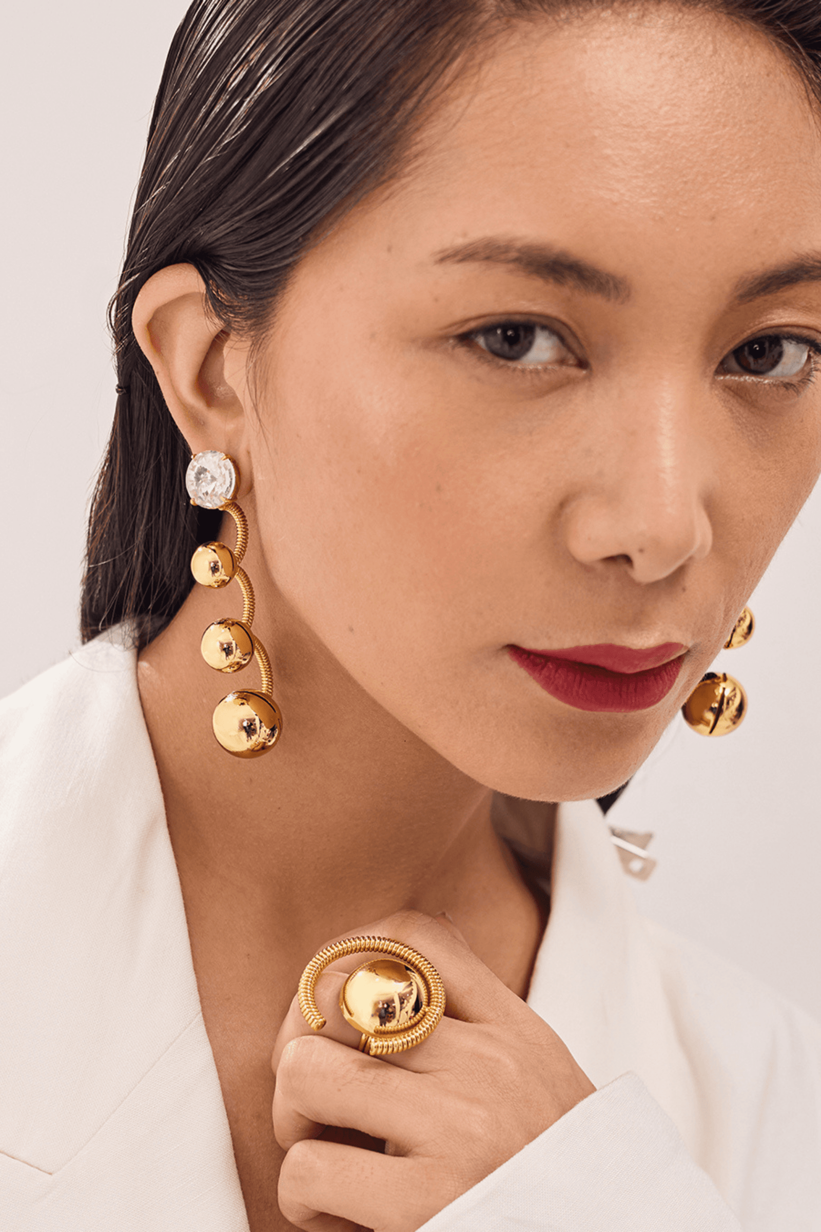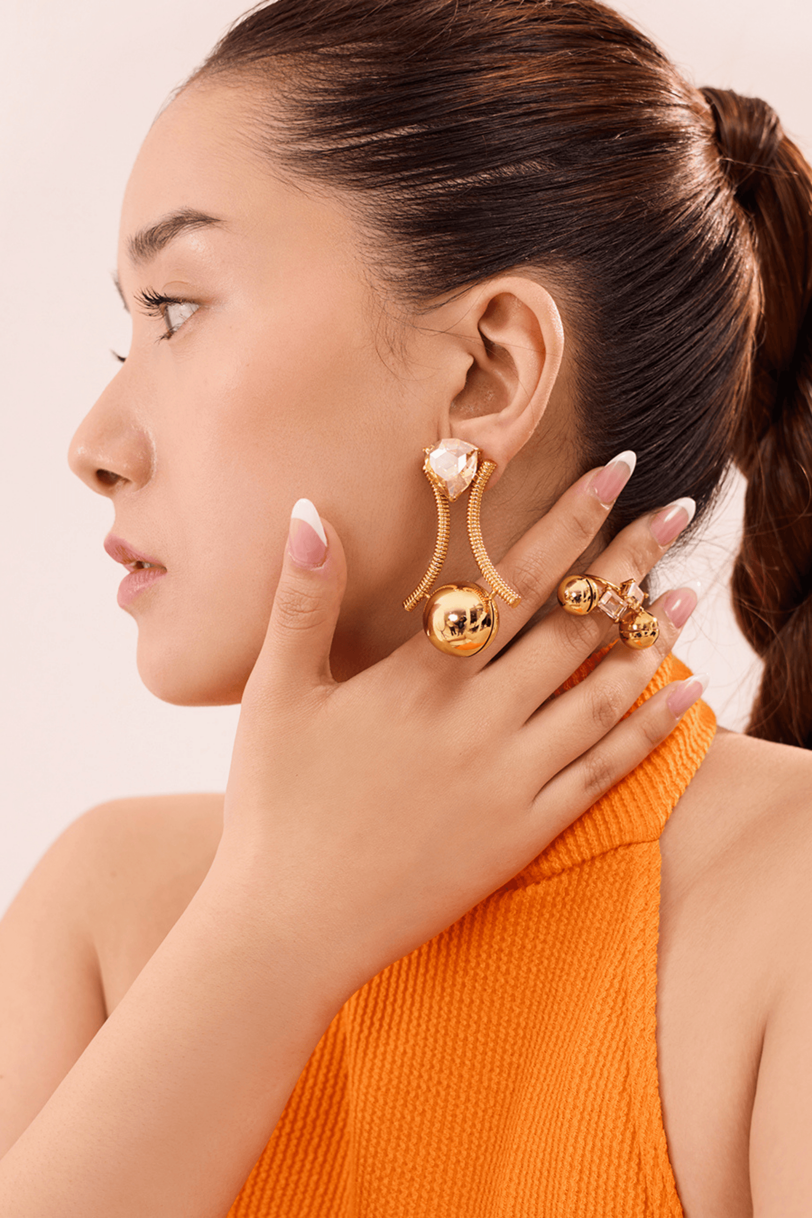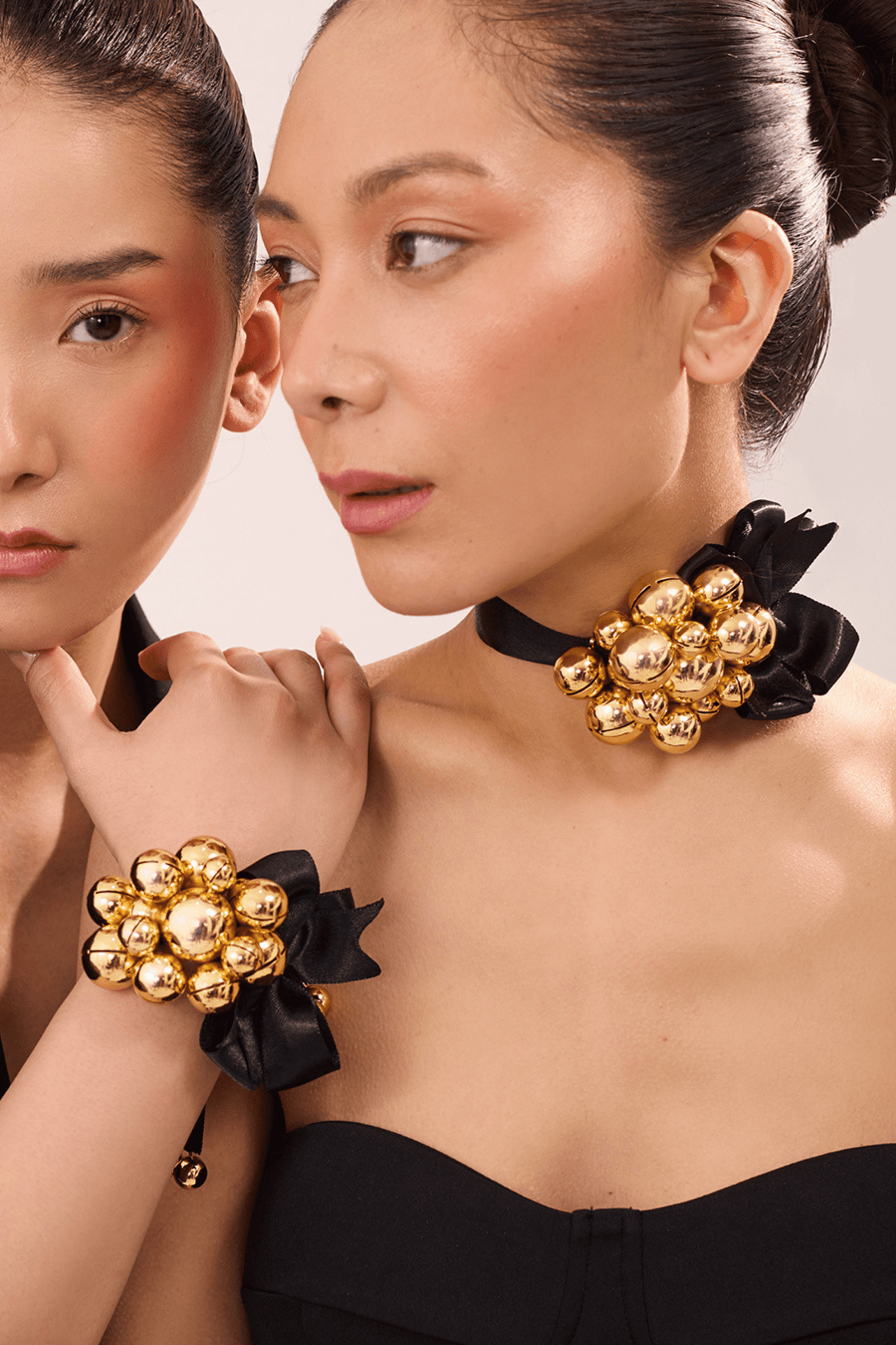 • Solidified strings of gold drawn into perfect curves against the neck, the Eleanor necklace is an aristocratic statement in itself. Flowers and Bees adorned onto the rippling matte gold, this necklace is effortlessly tasteful and yet, holds a classic stature. We invite you to accessorise with Ruhhette, where adorning a fascinating piece of jewellery can make you stand a class-apart.