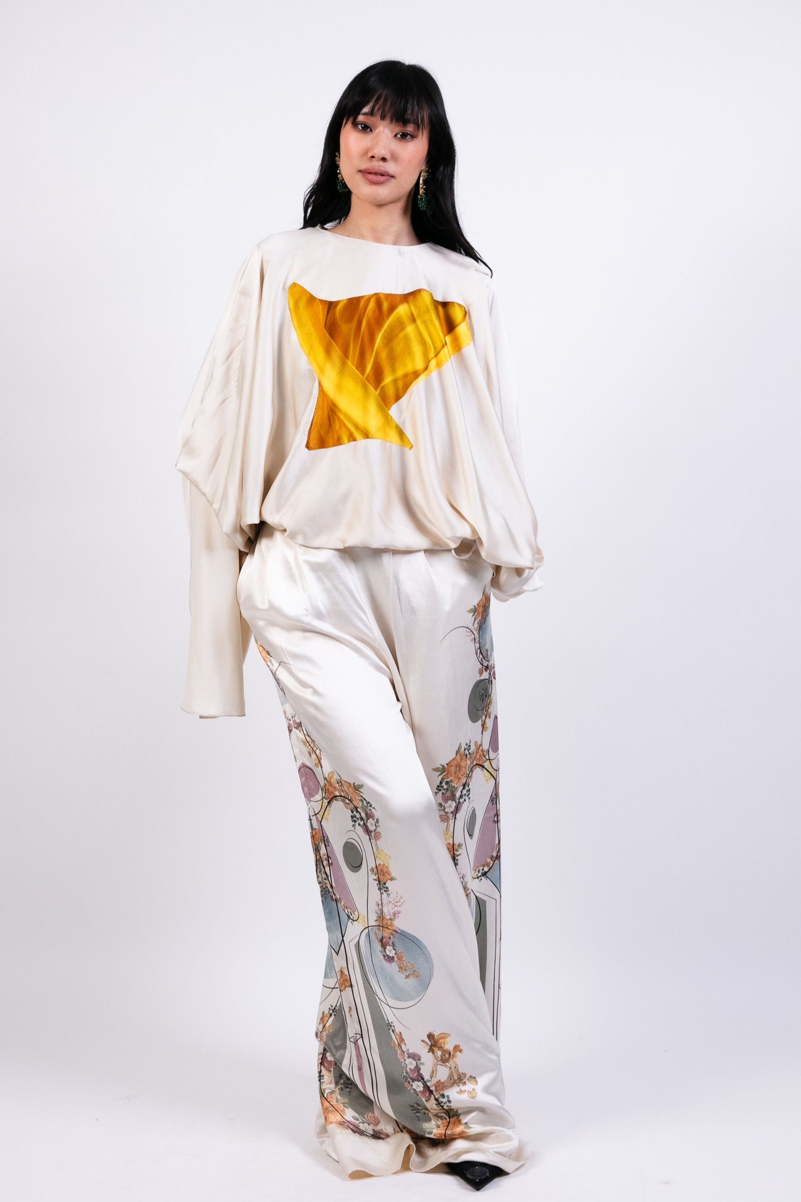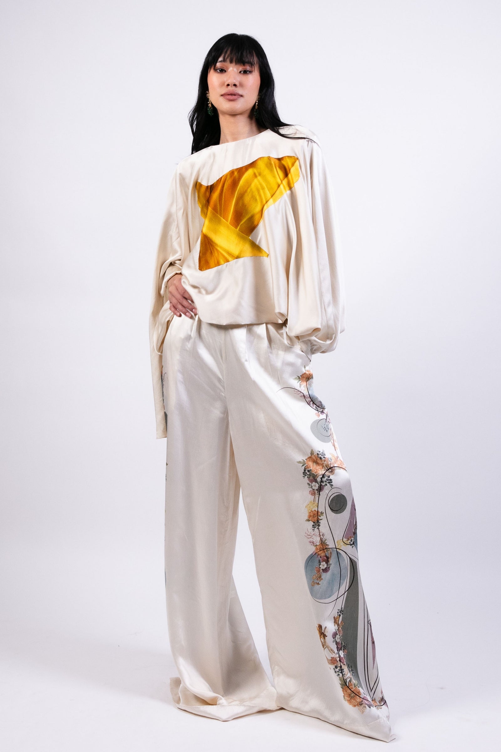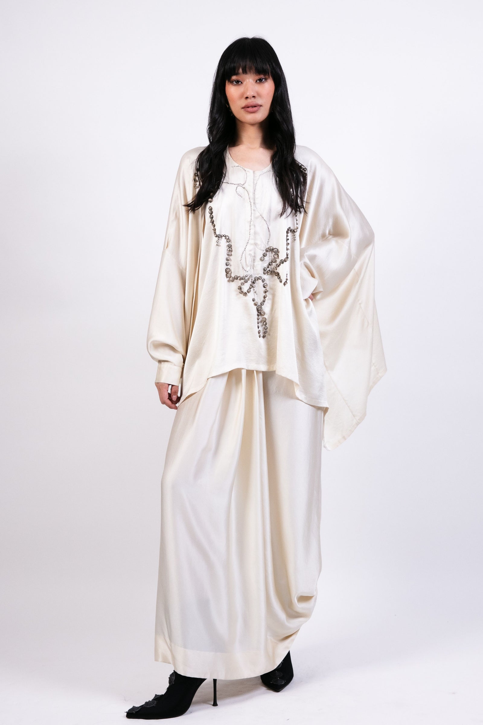 Care: Dry Clean Only. As garments are handmade and handwoven, natural variations in colours and weaves are a characteristic of the textile, and may be found in the finished garments as well.